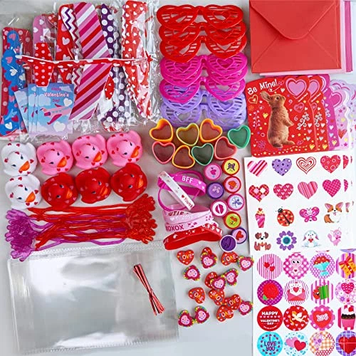 30 Days Return Policy Fast Delivery Trusted seller 152 Pcs Valentine's Day Stationery Toy Assortment Set Valentine Goodie Bag Stuffers Valentine Prizes Rewards Bulk for Kids Students Valentine Party Favors Treats School Classroom Gift Exchange Product Description Valentine's Day Stationery Toy Assortment Set: 8 pcs Valentine gliders, 8 pcs gift exchange cards, 8 pcs Valentine stampers, 8 pcs Valentine rubber ducks, 8 pcs Valentine rubber bracelets, 8 pcs Valentine shutter glasses, 8 pcs heart-shaped magic springs, 16 pcs heart erasers, 16 pcs Valentine sticky hands, 24 pcs scratch & sniff Valentine cards, 24 pcs self-seal envelopes, 8 Valentine temporary tattoo sheets (128 pcs), 8 Valentine sticker sheets (192 pcs), 24 clear plastic bags, 24 twist ties. Color & Designs: In bright Valentines colors of red, pink, purple, blue, white, yellow, and green, these Valentine toys for kids feature vibrant print and cute Valentine's Day sayings, including assorted heart patterns, dog, cat, rabbit, bear, frog, ladybird, butterfly, ice cream, flower, cupid, rose, lip prints, cupcake, gift box, heat balloon, love letter, plane, "I LOVE YOU", "You're My Sweet", "YOU ROCK", "love", "HAPPY VALENTINE'S DAY", "CUTIE PIE", "B.F.F", "XOXOXO", "Be Mine", "Kiss Me". Size: Valentine gliders: 7.2" long. Valentine stampers: 1" in diameter. Valentine rubber ducks: 2.3" wide. Valentine bracelets: 2.6" circ. Valentine shutter glasses: 5.2" long. Valentine magic springs: 1.3" in diameter. Valentine erasers: 1". Valentine sticky hands: 7.8" long. Gift exchange cards: 3" x 2.1". Scratch & sniff Valentine cards: 4" x 5.1". Valentine envelopes: 4.3" x 5.1". Valentine tattoos & Valentine stickers: 1.5" in diameter. Cellophane bags: 9.8" x 6". Twist ties: 3.1" long. Material: These assorted Valentine party favors for kids are made from foam, plastic, rubber, paper, vinyl, and cardstock. They are safe and non-toxic toys which have tons of fun, perfect to hand out as an alternative to candy Valentine's gifts for kids or give them out as Valentine's Day party favors. Fun and safe to use, this Valentine party favors set with great variety is perfect for many gifting occasions. Hand these cute toys out as an alternative to candy Valentines gifts for kids. Perfect for kids valentine crafts, kids Valentine's Day exchange, class Valentine's Day prizes, valentines goody bag stuffers, kids Valentine's Day party favors, valentines party pack, Valentine's Day school treats, valentines giveaway, birthday party favors and more. Shipping Returns Payment Shipping Shipping is FREE to all addresses other than APO/PO boxes in the lower 48 states. All our stock ships from US-based warehouses. Shipped via USPS or UPS (depending on location and package weight) Unless stated otherwise, all orders will ship within 24-72 hours of your payment being processed. Check our feedback to see the great reviews of FAST shipping we offer. Returns As our valued customer, we will do our best to make sure the product you receive arrives to you on time and as expected. If you are not satisfied with your purchase, please contact us within 30 days of receiving your order to process a return. Payment We currently accept payment via eBay managed payments only. Once payment is cleared, we will dispatch your shipment within 1-3 business days. Please refer to the "Shipping" tab for more information regarding shipping speed to your destination.