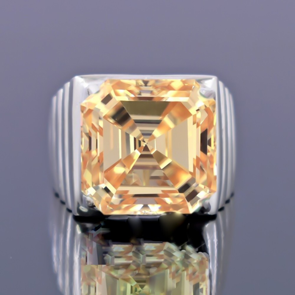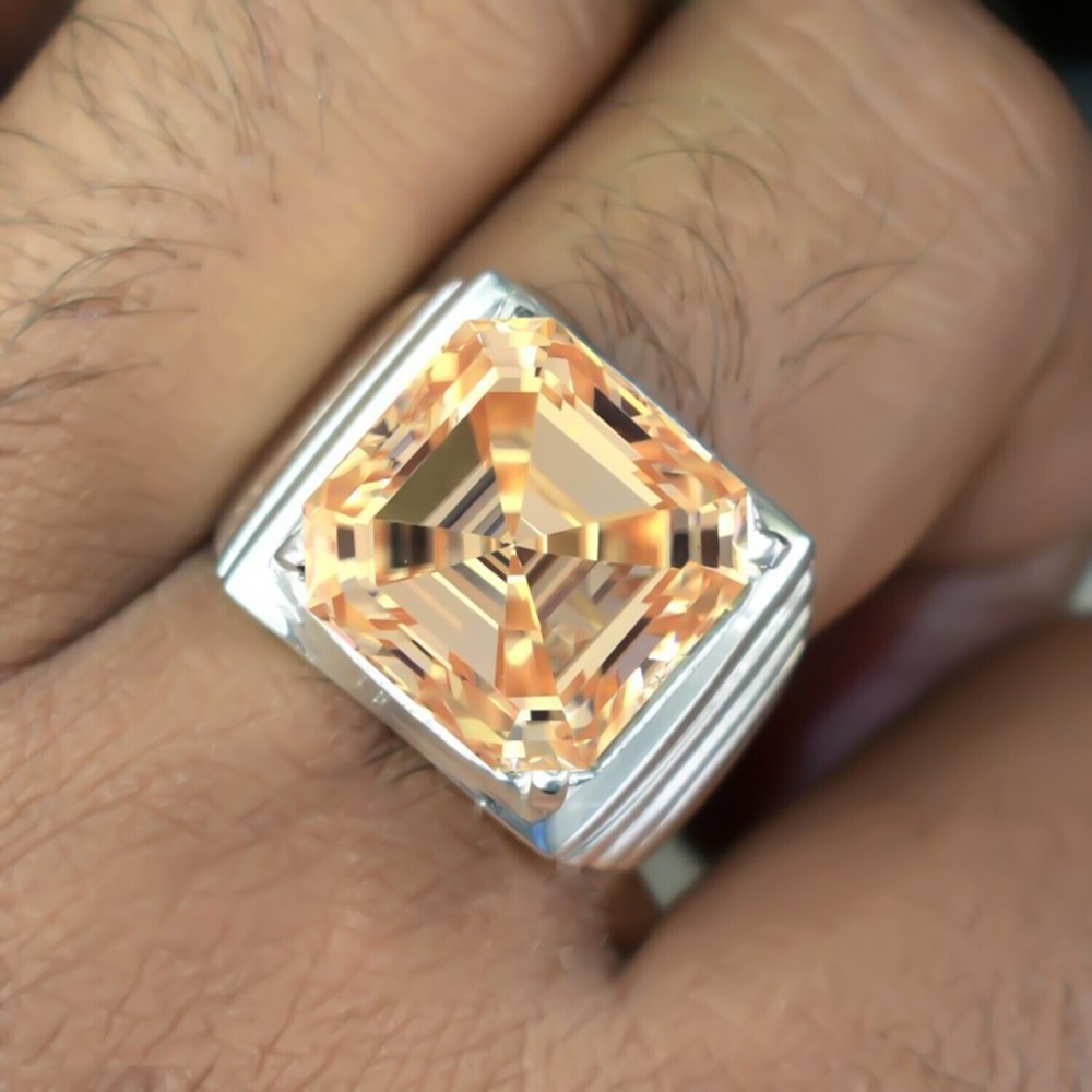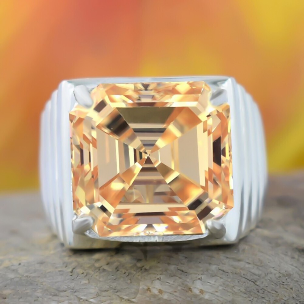 15.30 Ct Asscher Cut Champagne Diamond Ring 925 Silver Gift for Wedding