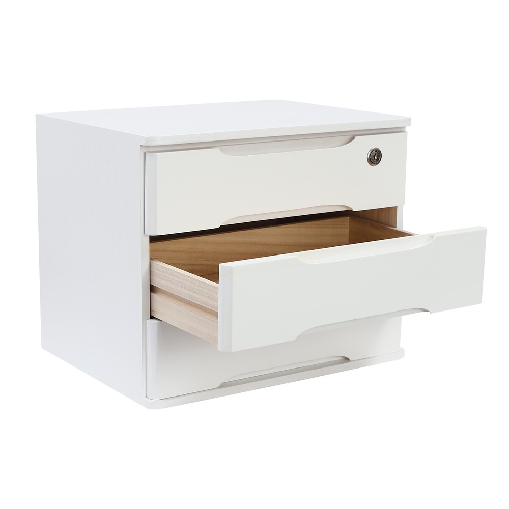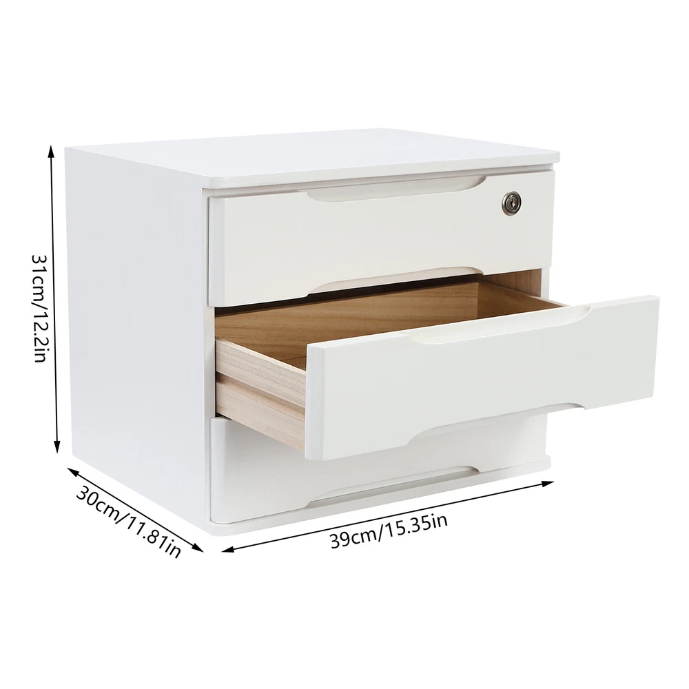 15.35 in White Desktop Organizer Storage Box Desk Drawers Locking Filing Cabinet