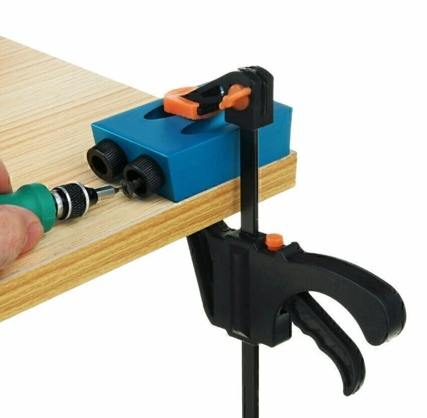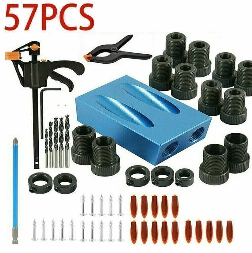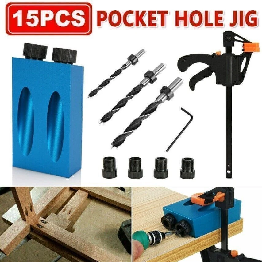 Product Description If you have any questions, please contact customer service first, do not open disputes easily, thank you! 15Pcs Pocket Hole Jig Kit Specification: Drill Material: Carbon Steel Ring Material: Carbon Steel Positioner Material: Aluminum Main color: Blue + Black Positioner Size: Approx. 67 * 38 * 18 cm Drill diameter: 6 mm, 8 mm, 10 mm Stopper Size: 6mm, 8mm, 10mm Sleeve Size: 6 mm, 8 mm, 10 mm Angle: 15 degrees Quantity: 15 Pcs/Set 57PCS Pocket Hole Jig Kit Feature: HARD TOOLS: The pocket hole drill guide set is an amazing woodworking jig and an exceptionally handy tool collection. ALUMINUM ALLOY: Drill guide is made of high quality aluminum alloy for durability and long service lifetime. EASY TO INSTALL: Come with simple structure, the inclined hole locator is easy to use and install, suitable for jointing wood boards. UNLIMITED APPLICATION: This jig has unlimited application, such as creating flush, fastening picture frames. Package: 1 x Drill guide 3 x Drills 3 x Stoppers 6 x Sleeves 1 x Allen key 1 x F-clip Features: - HARD TOOLS: The pocket hole drill guide set is an amazing woodworking jig and an exceptionally handy tool collection. - ALUMINUM ALLOY: Drill guide is made of high quality aluminum alloy for durability and long service lifetime. - EASY TO INSTALL: Come with simple structure, the inclined hole locator is easy to use and install, suitable for jointing wood boards. - UNLIMITED APPLICATION: This jig has unlimited application, such as creating flush, fastening picture frames. - Easy to use-slant holes are drilled easily and quickly to hide the screws in wooden furniture. DIY woodworking tools and 2-way oblique holes to achieve precise screw connection. Specification: - Product Type: Pocket Hole Jig - Material: Aluminum - Main colour: Blue + Black - Angle: 15 degrees - Quantity: 57Pcs/Set Package Included: - 1pc Pocket hole jig - 2pcs Woodworking Clamps - 1pc Blue Stick - 12pcs Large Screws - 5pcs Limit Rings - 5pcs Drill Bits - 1pc Inner Hexagon - 15pcs Screws - 15pcs Corks About Us We accept all payments authorized by eBay. About Us We accept all payments authorized by eBay. powered by