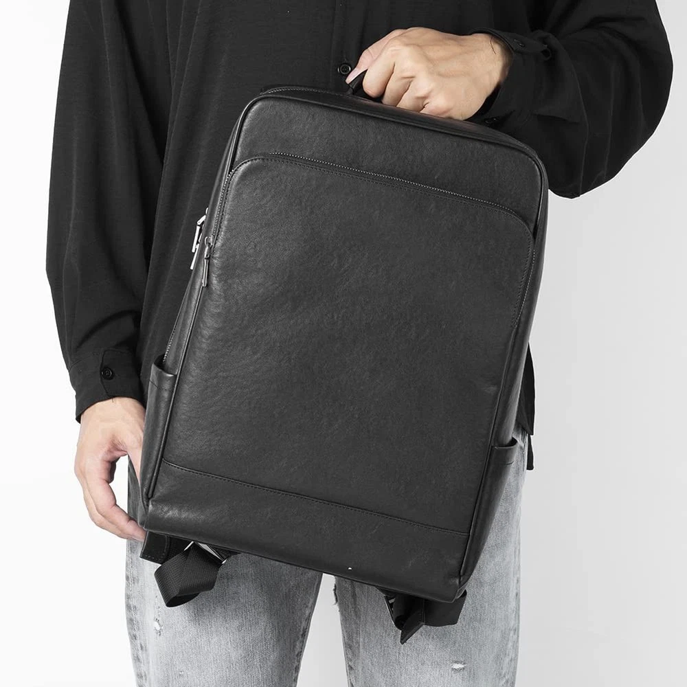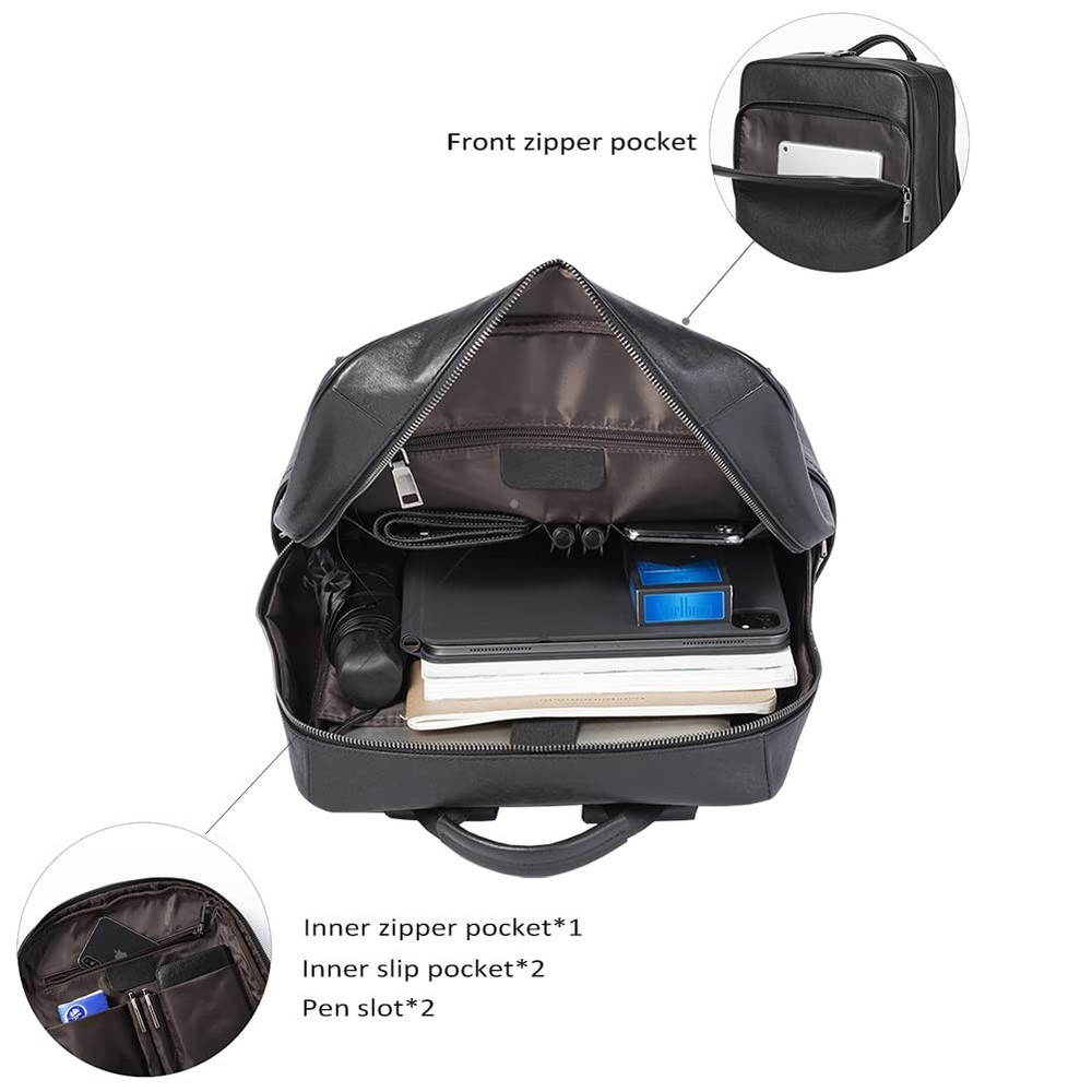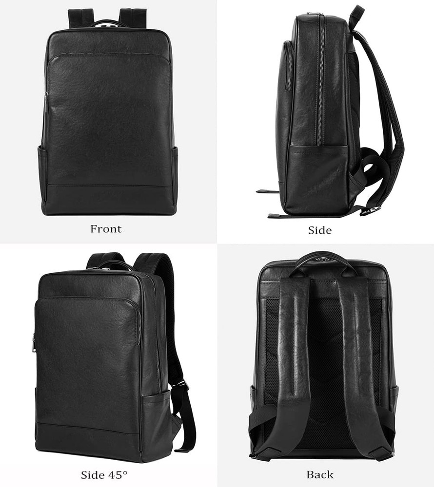 Feature for Genuine Leather Laptop Backpack Laptop Backpack: Sturdy Laptop Backpack has Large Main Laptop Compartment for iPad, Macbook, Laptop(Size Up to 15.6 inches) and Other Electronic Devices, Make Your Items Organized and Safe. Travel Backpack: Perfect for Occasional International Travel / Weekend Short Trip Getaways / Airplane Travel / Outdoor Hiking and Camping. College Backpack: The Large Backpack is Your Back to College Essentials. Perfect for College and Outdoor Activities. Best Choice for College Students and Teachers. Notes: All sizes are manually measured, with the difference in the measurement method, please allow 0.3-1.0 inches error in size margin provides outstanding products and a wonderful buying experience. If you are not satisfied with our product or service for any reason, please reach out and we will attempt to resolve any issues and ensure your contentment. TOP QUALITY: The leather backpack for men is made with full grain leather and extremely durable materials. Designed by artisans with more than 20 years of experience. LARGE CAPACITY - The genuine leather backpack holds most laptops less than 15.6 Inches. Large main compartment roomy for daily necessities, such as A4 folders, magazines, tablet, chargers, power bank and clothes. CONVENIENT POCKETS - Front zippered pocket of the backpack allows you to put your small items in an organized manner. Internal pockets to keep your phone or other valuable items. COMFORTABLE - Mesh padded shoulder straps relieves the pressure on shoulders to provide wear comfortability. MULTIPURPOSE - It’s simplistic, stylish look makes it as laptop backpack, work backpack, travel backpack and hiking backpack.