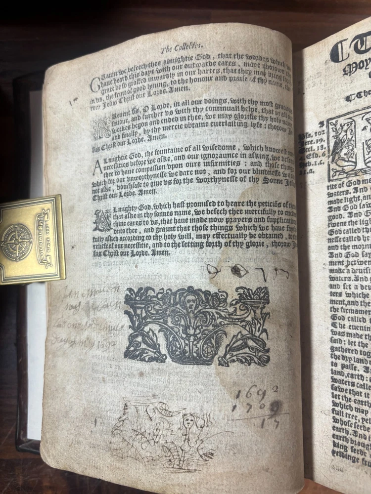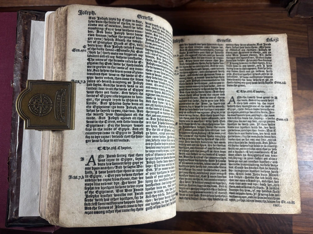 1569 Great Bible Bound W/Metal Working, Tudor Period, Quarto Printing, H-129