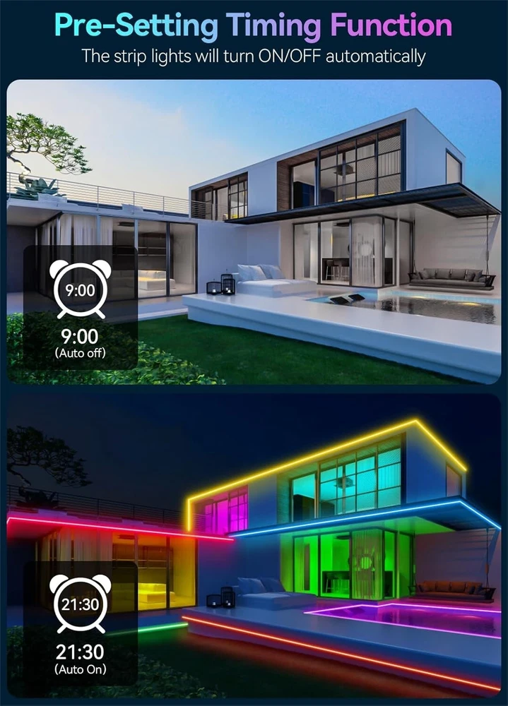 156FT IP67 RGB+IC Outdoor Led Strip Lights Waterproof Led Light Strips with RF Remote &Bluetooth Music Sync App Control RGB+IC, 156FT/48M RGB+IC, 156FT 【IP67 Continuous connection outdoor led strip lights waterproof 】 After collecting the customer's suggestions, we designed a 91FT continuous connection outdoor led lights, and a maximum of1 6 sets of 91FT continuous connection can form a 1456FT ultra-long outdoor led rope lights, the whole 1456FT light belt uniform brightness. Can play the same chase, magic color, colorful jumping frequency flicker and other patterns. 【See the instructions for connection methods】 【Regarding the waterproof design】the surface of the light strips and the inside of the control box are covered with silicone coating, all cables are waterproof, and the power adapter has UL certification, which is very safe to use. 【What is RGB+IC?】We use RGB+IC technology to create multi-color chasing effects. Unlike RGB LED strip lights, RGB+IC led strip lights by a chip independent control of a segment, a single segment can display a variety of colors at the same suitable for Christmas, Halloween decorations, outdoor roofs, gutters, pergolas. 【 remote control + smart APP control 】 remote control can penetrate obstacles to receive signals to control the light remote and "duoCo Strip"app allow for versatile control of the lights' color, speed, and rate of change from up to 656ft/200M away. 【After-sales Service】When you order 's products, you receive an 18- satisfaction and friendly customer service. If you have any issues, please contact me and we will quickly follow up until your problem solved. Continuous Outside Led Lights We collect customers' suggestions and update the product so that it can be connected end to end to form a 156FT waterproof led light strips, which is easier to install and has super high-adhesive adhesive on the back. Install it Outside with confidence.