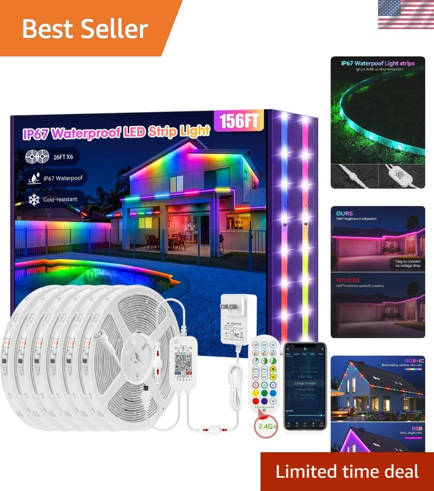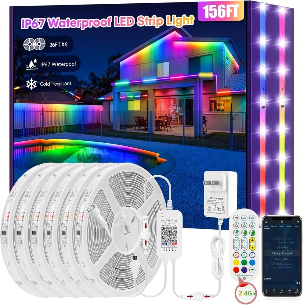 156FT IP67 RGB+IC Outdoor Led Strip Lights Waterproof Led Light Strips with R...