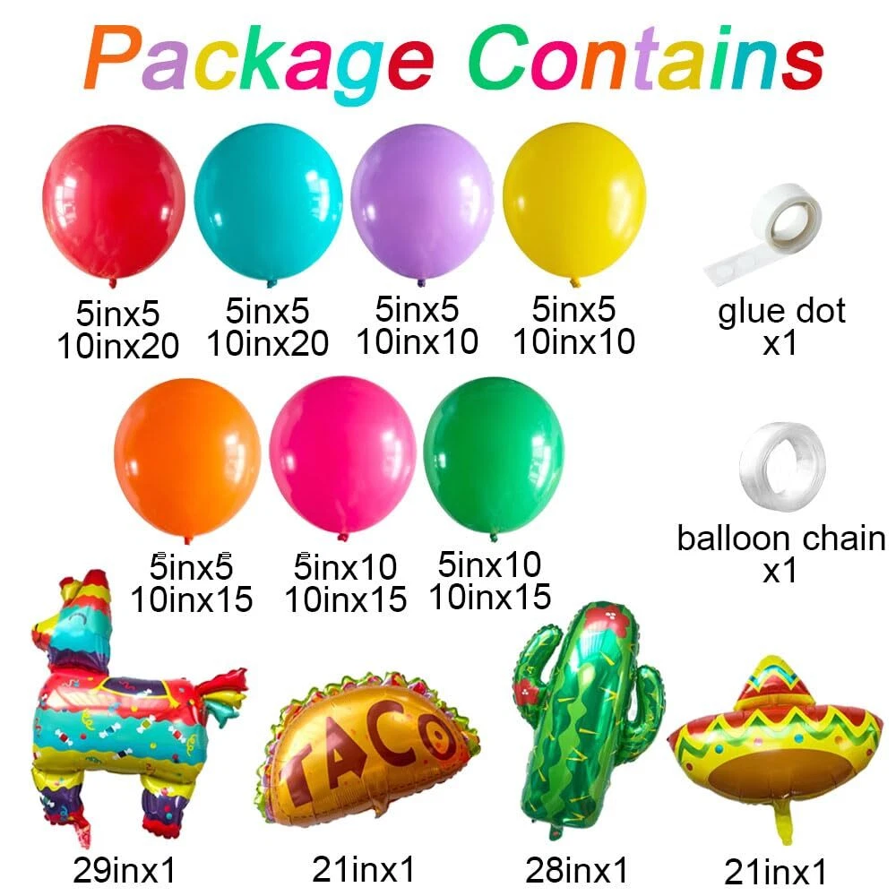 156pcs Fiesta Balloon Garland Arch Kit Giant Cactus Llama Sombrero Taco Foil Balloons for Mexican Fiesta Party Decorations Cinco De Mayo Carnival Loteria Taco Twosday Birthday Party Supplies 156pcs fiesta balloon garland arch kit giant cactus llama sombrero taco foil balloons for mexican fiesta party decorations Cinco De Mayo carnival loteria taco twosday birthday party supplies 156 pcs Fiesta Balloon Garland Arch Kit: This mexican fiesta balloon arch kit is suitable for various party scenes.Such as fiesta theme party,cinco de mayo party, fiesta 1st birthday party and summer party.These colorfully themed balloons go perfectly together to create a vibrant and festive atmosphere for your Mexican party Great Value Kit: This fiesta balloon garland arch kit contains 150 pcs latex balloons in red, orange, yellow, green, hot pink, purple and lake blue (including 5 inch and 10 inch), 4 pcs mexican fiesta foil balloons (cactus llama sombrero taco). The balloons are exactly the same color as the picture, you will get the effect as shown Complete DIY Tools: You will receive 1 roll of 16 ft balloon strip and 1 roll of glue, so you can easily finish the balloon garland and enjoy the fun-filled DIY time High Quality Guarantee: Seller promise that all balloons are made of natural latex material, which is safe and harmless, with good elasticity and toughness, and can be used for a long time. To avoid the balloons from oxidizing and affecting the display, it is recommended to set up the garland 1-2 hours before the party starts Cohapmk After-Sales Service: If there is any quality problem with the product, please contact seller by email,you will get a free replacement or refund.To prevent the balloon from bursting, please do not blow up the balloon too full Shipping from the USA All of our products are shipped from the USA, ensuring quick delivery to your destination. Payment We offer the following payment methods: PayPal, credit card, bank transfer, and eBay's secure payment system. Free Shipping & Free Returns Shipping within the USA is FREE. Additionally, any return is absolutely free for you. Risk-Free Purchase You have the option to return an item within 30 days without any justification. We cover the return shipping costs! Fast Shipping We ship immediately upon receipt of payment. Generally, the package is delivered within 2-3 days in the USA. If it takes longer, we will contact you. Quality and Costs Made in Europe, USA, China No customs fees or additional charges Total satisfaction guarantee Invoice with declared VAT available upon request in .pdf format Feedback Your feedback is very important to us. After you pay for your purchase, you will automatically receive positive feedback from us.