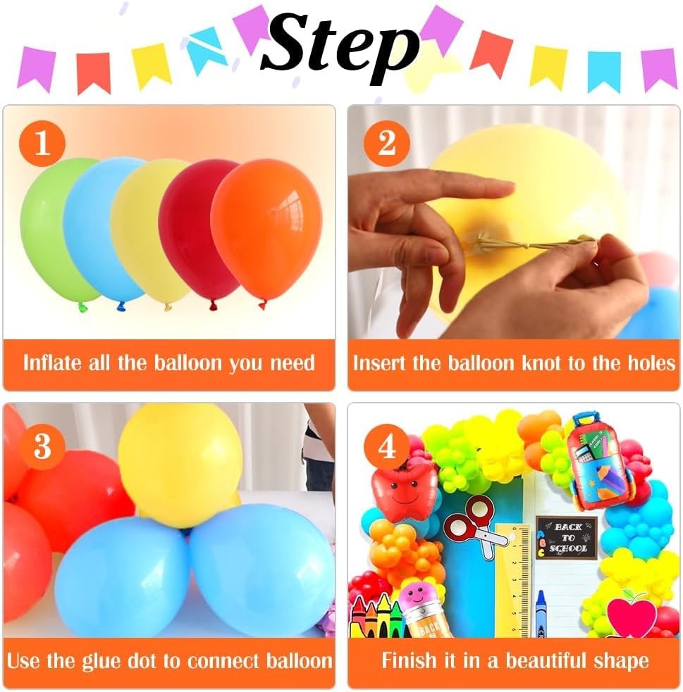 Free eBay listing template designed by dewiso.com 158pcs Back to School Balloon Garland Arch Kit, School Bus House Pencil Bag Foil Balloon with Rainbow Balloons for First Day of School Kindergarten Graduation Party Supplies FREE AND FAST SHIPPING! About this item Back to School Balloon Garland: 5pcs foil balloons + 30pcs red latex balloons + 30pcs orange latex balloons + 30pcs yellow latex balloons + 30pcs green latex balloons + 30pcs blue latex balloons + 3pcs balloon accessories Premium Material: All of our latex balloons are made of natural non-toxic latex. All materials are of high quality and good safety, please feel easy to use. With thick skin, they are not easy to pop out and can stretch well Widely Applications: The balloon arch can celebrate both indoor and outdoor activity, such as Back to School theme party, The First Day of School Party, Graduation, Kindergarten, Pre-school, Primary School Events, Birthday, Baby Shower and so on Warm Tips: You can inflate all the balloons to 90%. Please avoid sunburn, overheat, pointed object and excessive friction, strong wind may cause popping Easy to Assemble: We provide a long balloon stripe and dot glue to help you to make balloon arches more easily.The garland is bendable to the shape you want.Hope you enjoy the fun of DIY Product We offer a 30-Day Return Policy on items which you are not completely satisfied with. You have the option for a full-refund or an exchange of the item. No returns are available on items shipped outside of the US . Shipping We offer Free Shipping to the US and ship within 2 business days of payment, usually sooner. We use UPS express shipping. That's why your products are usually delivered within 3 days . Contact We try our very best to make sure every customer is completely satisfied. If there's a problem , message us! We're happy to help. 24/7 live chat available.