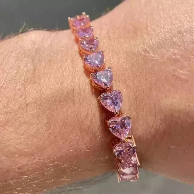 $ 13.7312 Ct Round 4mm Purple Amethyst Tennis Bracelet 14K White Gold Finish 7.5"IN