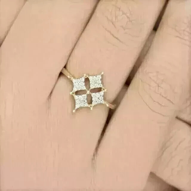 1.5Ct Lab Diamond Flower Wedding Ring in 14K Yellow Gold Plated
