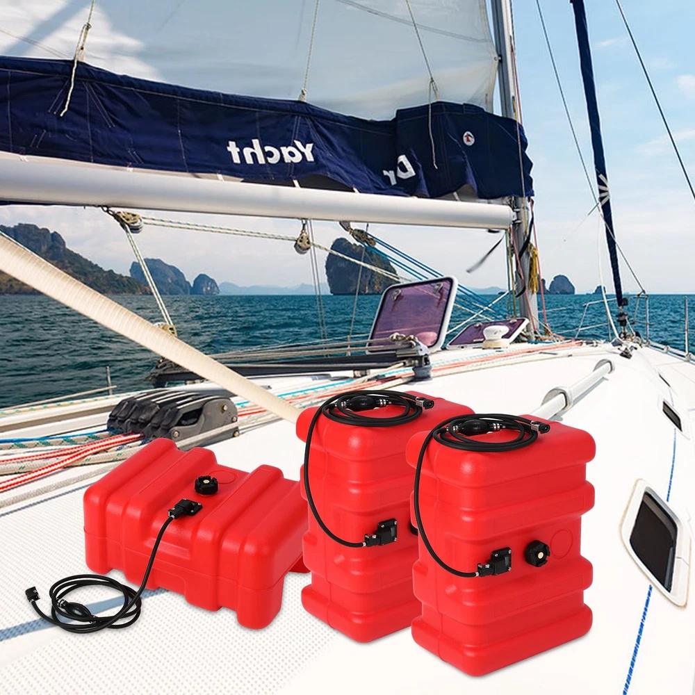High Quality Materials: Our 55 liter marine outboard fuel tank is made of high quality, resistant to aging, impact, and deformation, providing you with a reliable refueling solution. I-Shaped Handle: The ergonomic I-shaped handle makes the boat gas tank easy to carry, allowing you to refuel your boat anytime, anywhere. Fuel Level Indicator and built-in filter: Let you know the changes in the fuel tank and the remaining fuel volume in a timely and clear manner, which facilitates timely replenishment. The marine fuel tank air inlet filter ensures clean fuel. Two Modes of Sealing and Venting: The golden nut of the fuel tank cap can adjust the sealing and venting to ensure safe use. The high-quality spring is designed to deflate and can be released by unscrewing the yellow metal nut. It is in a sealed state when tightened to reduce fuel leakage. Fuel Pipe and Fuel Pump: Squeeze the fuel pump for easy filling, and the equipped fuel pipe allows you to use it worry-free and experience the ultimate convenience.