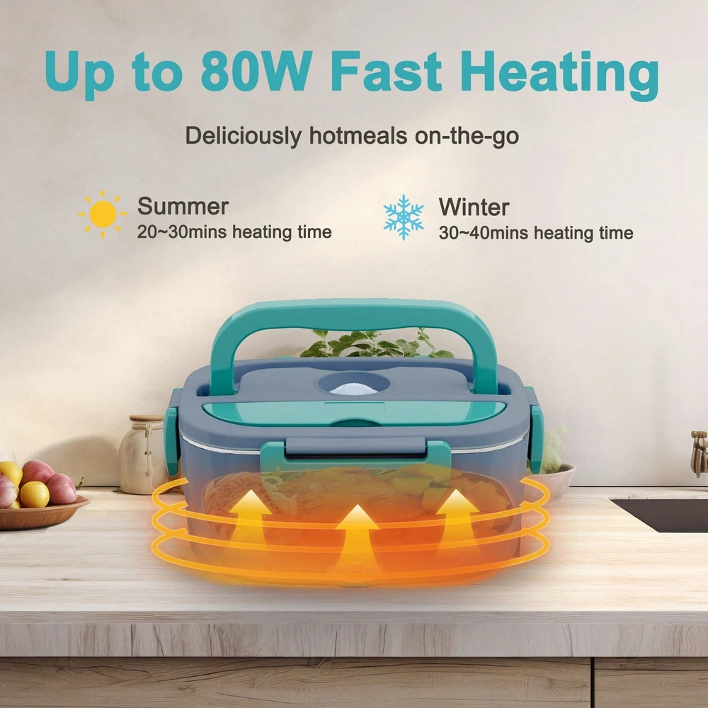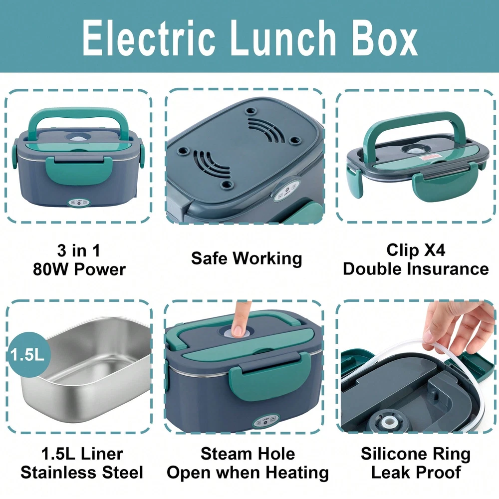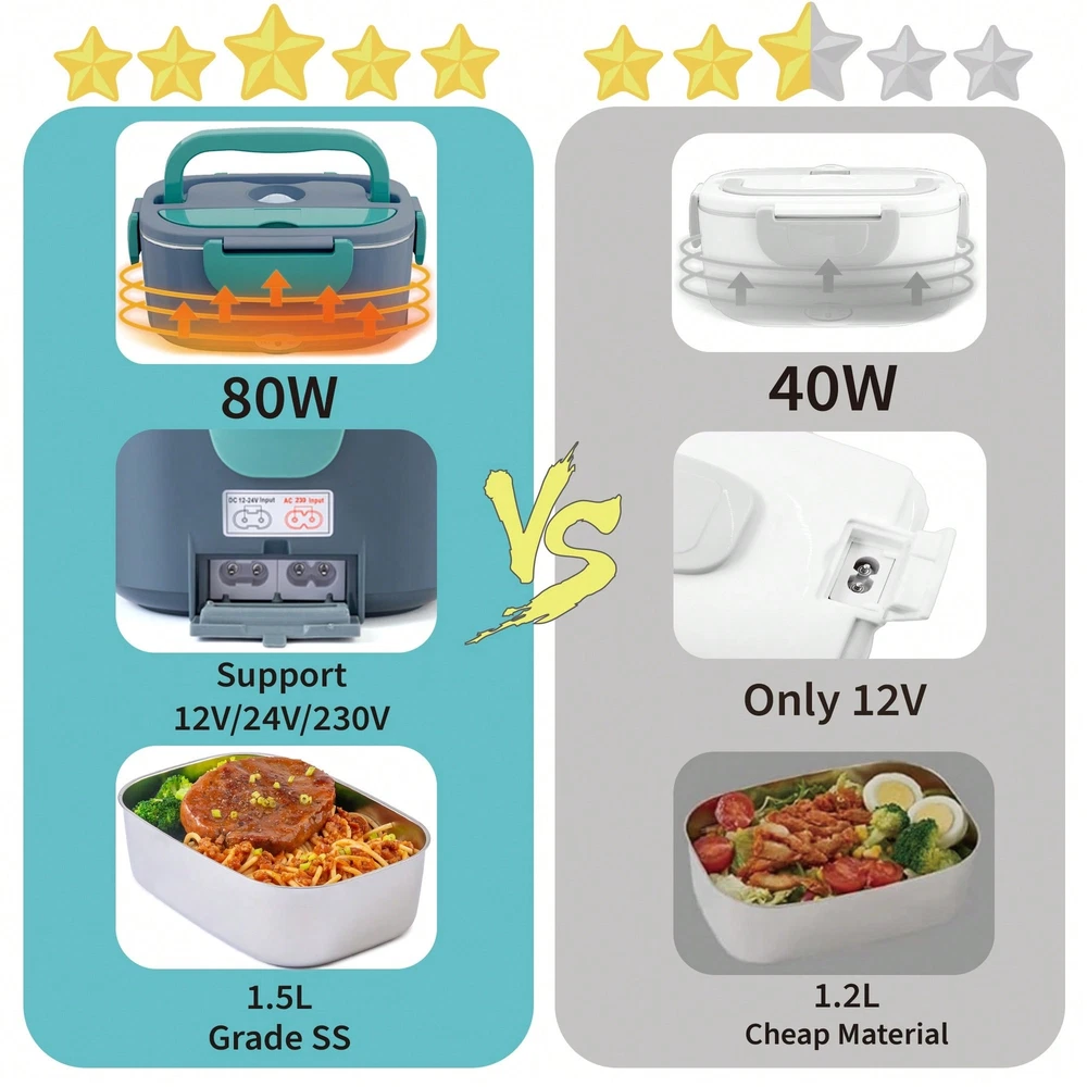 1.5L 80W Portable Electric Lunch Box with Car and Office Adapters