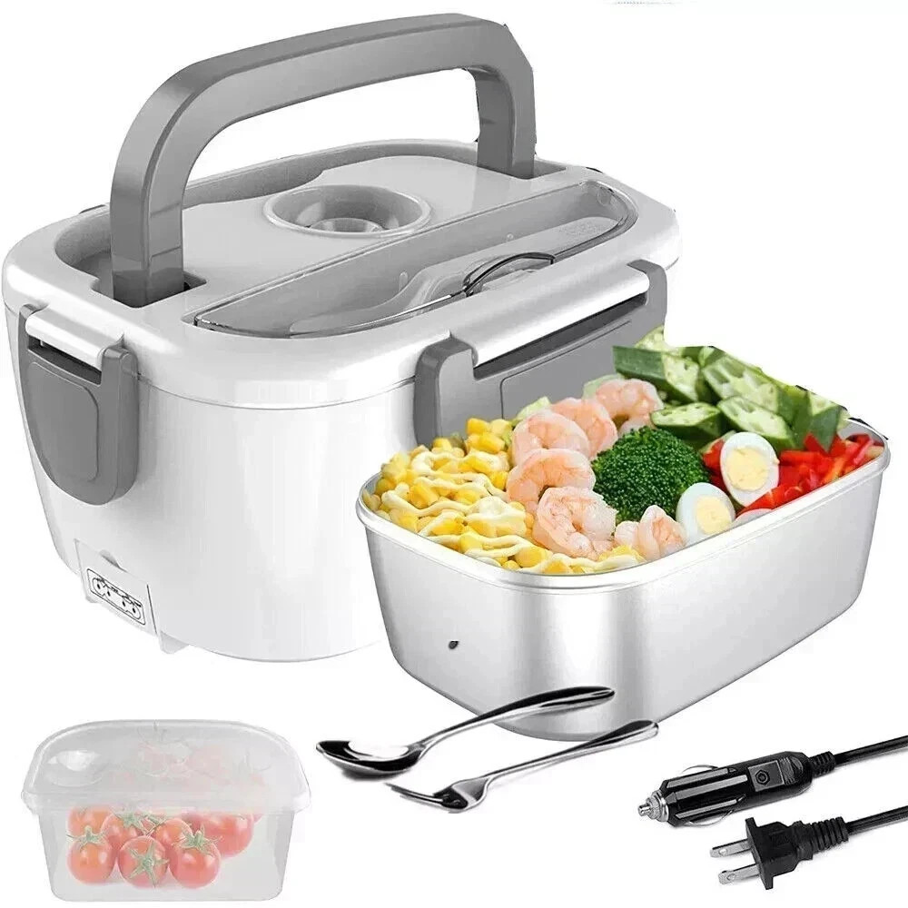 Features: Food Grade Material The electric lunch box is made of food grade PP plastic and 304 stainless steel, which is high-temperature resistant, non-toxic, durable, eco-friendly and safe to use. Heating Up Fast Using PTC original constant temperature heating, low-consumption heat cycle to keep food at a suitable temperature and keep the moisture of the food. It normally takes 25-50 minutes to warm the food. (If the food was taken out of the fridge or where the ambient temperature is low, the heating time should be extended appropriately). Healthy Meal Anywhere No microwave required and wait in line for heating food. Now simply plug in and heat up your food at office or in car/truck using the 110/12V power cables. Enjoy your warm & healthier homemade food. Leak Proof Cover Improved cover design, the cover will not move during use, more tightly covered.Because leak-proof seal ring design is added, it will prevent fluid leakage even when walking or in sloshing car. Easy to Clean The electric lunch box meets the safety standards of dietary materials. The inner container is removable, therefore it is very easy to clean. Portable Design There is a portable handle on the lid, you can carry the food in the lunch box everywhere like in your car/truck and office. Also useful for picnic, road trip and camping etc. Warm Tips: Please do not clean the heating base with water, and do not add water to the heating base. Specification: Type: Electric Lunch Box Material: 304 Stainless Steel + Food Grade PP Plastic Color: Gray + Green Dimension: 9.3 x 6.6 x 4.3 in Stainless Steel Bowl Dimension: 8.3 x 5.7 x 2.7 in Power Cord Length: 31.5 in Power Cord (Car) Length: 32.5 in Capacity: 1.5L Heating Time: 25-50 min Power: 110V/ 50Hz / 40W Package Included: 1 x Electric Lunch Box 1 x Stainless Steel Spoon 1 x Stainless Steel Fork 1 x Stainless Steel Container 1 x Plastic Compartment Box 1 x Power Cord 1 x Power Cord for Car 1 x Manual