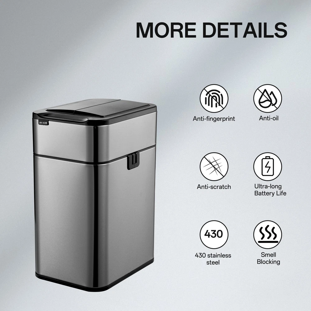Store category Sign Up Now ! You may also like Product Description Bullet Points: Quick Reaction: With about 0.2s quick induction to open and about 10 seconds bass delay closing, simply waving a hand ensures a seamless and hygienic experience Safe to Operate: The two-way side sliding opening of our Kitchen Trash Can ensures that the lid drops to both sides, preventing any relation with your hands. This hygienic solution makes it easy to use daily Motion Sensor: With a motion sensor that allows for no touching, this kitchen trash can makes it easy to throw away garbage, letting you not use your hands at any time without bending Easy Usage: Experience effortless waste management with this Kitchen Trash Can's 1-button design- press the right button for a prompt lid closure in 10 seconds. The button light flashes when open, ensuring easy usage Waterproof Characteristics: Thanks to its IPX4 waterproof rating, our Kitchen Trash Can operates as expected even in bathrooms and other humid areas. No need to worry about water damage With a 10-second delay closing and 1-button normally open design, it's easy to use without bending. This touchless trash can is a must-have for any modern household. Specification: Product name: Touchless Trash Can Color: Silver, White Product Material: ABS + Stainless Steel Capacity: 15L Two Mode: Infrared Sensing, 1-button Normally Open, 1 pull drawstring Battery Capacity: 1200mAh Battery Life: 30-60 Days Voltage: 5V Power: 1.5w Packing List: 1*Automatic Garbage Can 1*Instruction manual 1*USB charging cable 1*Roll of garbage bag Payment Delivery details Terms of sales About us Feedback & DSRs Payment Before you palce an order, please kindly make sure that you have a paypal account. We accept PAYPAL payment only. Payment should be completed within 2 days after auction closed, or unpaid dispute will be filed for an closing auction. An unpaid case will be filled after 4 days. Delivery details We ship to your eBay address. Each package will be shipped to US by UPS Regular Parcel with tracking number. Please check your shipping address carefully before checkout, it can't be changed if order completed. All items will be shipped within 1-2 business day upon receipt of payment.Orders placed on weekend will be shipped within 3 days. If you do not receive your item in 7-10 business days.please contact us immediately for further assistance. We will be responsible for any damages or losses incurred in the shipping process. About us We maintain high standards of excellence FIVE STAR and strive for 100% customer satisfaction! Positive Feedback is very important to us. We hope that you contact us immediately Before you give us neutral or negative feedback, so that we can satisfactorily address your concerns. We promise to offer the lowest price and high quality produce. Our working time: From Monday to Friday(9:30 am to 18:00pm), we don't working on holidays ,hope you can understand and know that , thank you. Please always talk to us via ebay Message. We appreciate your business and look forward to growing our e-Bay sales with satisfied customers. Feedback Contact us If you have any questions, please feel free to contact with us by ebay Message during our business hours ( 9:30a.m. to 5:30 p.m.), or email us through eBay, we will try our best to help you to resolve it. For any presale or after-sale questions,please do feel free to email us! Due to the time difference, each email will be replied within 1 working day,and weekend will be delayed a bit. Feedback