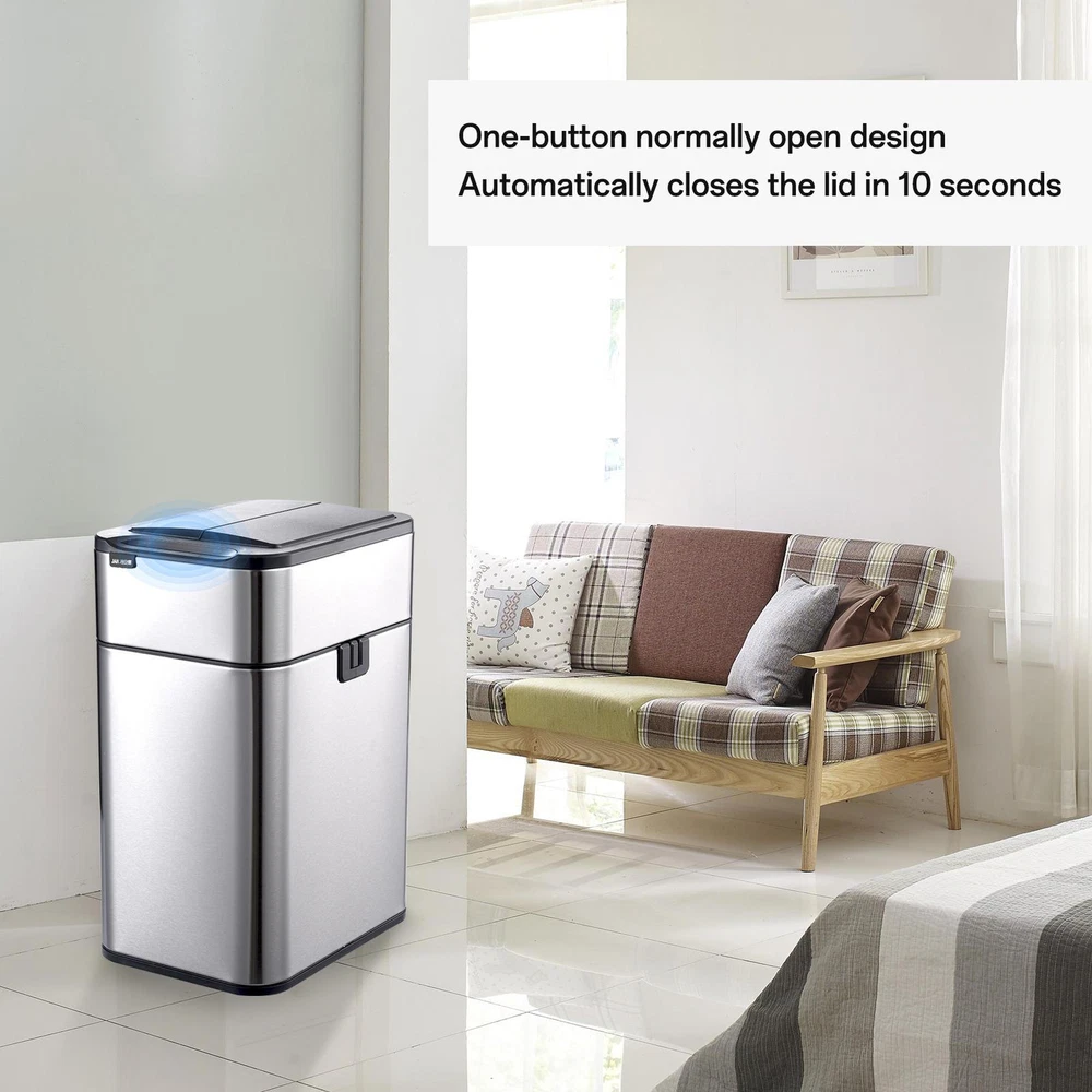 Store category Sign Up Now ! You may also like Product Description Bullet Points: Quick Reaction: With about 0.2s quick induction to open and about 10 seconds bass delay closing, simply waving a hand ensures a seamless and hygienic experience Safe to Operate: The two-way side sliding opening of our Kitchen Trash Can ensures that the lid drops to both sides, preventing any relation with your hands. This hygienic solution makes it easy to use daily Motion Sensor: With a motion sensor that allows for no touching, this kitchen trash can makes it easy to throw away garbage, letting you not use your hands at any time without bending Easy Usage: Experience effortless waste management with this Kitchen Trash Can's 1-button design- press the right button for a prompt lid closure in 10 seconds. The button light flashes when open, ensuring easy usage Waterproof Characteristics: Thanks to its IPX4 waterproof rating, our Kitchen Trash Can operates as expected even in bathrooms and other humid areas. No need to worry about water damage With a 10-second delay closing and 1-button normally open design, it's easy to use without bending. This touchless trash can is a must-have for any modern household. Specification: Product name: Touchless Trash Can Color: Silver, White Product Material: ABS + Stainless Steel Capacity: 15L Two Mode: Infrared Sensing, 1-button Normally Open, 1 pull drawstring Battery Capacity: 1200mAh Battery Life: 30-60 Days Voltage: 5V Power: 1.5w Packing List: 1*Automatic Garbage Can 1*Instruction manual 1*USB charging cable 1*Roll of garbage bag Payment Delivery details Terms of sales About us Feedback & DSRs Payment Before you palce an order, please kindly make sure that you have a paypal account. We accept PAYPAL payment only. Payment should be completed within 2 days after auction closed, or unpaid dispute will be filed for an closing auction. An unpaid case will be filled after 4 days. Delivery details We ship to your eBay address. Each package will be shipped to US by UPS Regular Parcel with tracking number. Please check your shipping address carefully before checkout, it can't be changed if order completed. All items will be shipped within 1-2 business day upon receipt of payment.Orders placed on weekend will be shipped within 3 days. If you do not receive your item in 7-10 business days.please contact us immediately for further assistance. We will be responsible for any damages or losses incurred in the shipping process. About us We maintain high standards of excellence FIVE STAR and strive for 100% customer satisfaction! Positive Feedback is very important to us. We hope that you contact us immediately Before you give us neutral or negative feedback, so that we can satisfactorily address your concerns. We promise to offer the lowest price and high quality produce. Our working time: From Monday to Friday(9:30 am to 18:00pm), we don't working on holidays ,hope you can understand and know that , thank you. Please always talk to us via ebay Message. We appreciate your business and look forward to growing our e-Bay sales with satisfied customers. Feedback Contact us If you have any questions, please feel free to contact with us by ebay Message during our business hours ( 9:30a.m. to 5:30 p.m.), or email us through eBay, we will try our best to help you to resolve it. For any presale or after-sale questions,please do feel free to email us! Due to the time difference, each email will be replied within 1 working day,and weekend will be delayed a bit. Feedback