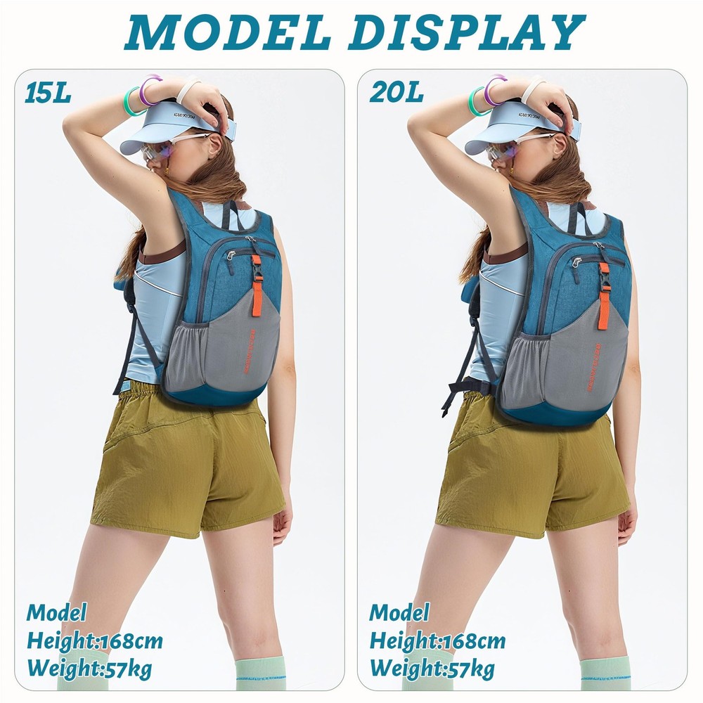 Product Name: Small Hiking Backpack Product Description: Elevate your outdoor adventures with our lightweight hiking backpack, meticulously designed to be the ultimate companion for hikers and explorers alike. Specifications: Weight: 310g / 0.68LB Capacity: 15L Dimensions: 45cm x 28cm x 13cm / 17.7in*11in*5.1in Color Options: Choose from a stylish palette of Black, Beige, Turquoise, and more. Features: 1. This innovative backpack merges function and convenience, featuring a zippered pocket on the left side, perfect for securely holding your phone, and a drawstring pocket on the right for quick access to hiking essentials. 2. Comfort is paramount during hikes, and our day packs lightweight for men delivers with breathable mesh shoulder straps that provide superior ventilation. Built with reinforced stress points, this durable backpack is engineered to handle the challenges of tough terrains, ensuring that it remains a reliable partner on every journey. 3. The adjustable chest strap facilitates a customizable fit, allowing for both vertical and circumferential adjustments, ensuring that your day bag stays snug and secure as you traverse various landscapes. 4. Crafted from tear-resistant and scratch-proof fabric, our foldable backpack is both robust and practical. Suitable For: Whether you're navigating the trails or spending a day at the amusement park, this small daypack is perfect for both men and women. Explore with confidence and style. Choose our small travel backpack for your next adventure, and embrace the great outdoors like never before. Unique Strap Design: Our small backpack features an innovative strap design with a zippered phone pocket on the left and a drawstring pocket on the right. The breathable mesh shoulder straps ensure comfort during your outdoor adventures, while reinforced stress points prevent strap breakage. Adjustable Chest Belt: This daypack hiking backpack includes an adjustable chest belt for both vertical and circumference adjustments, ensuring a secure fit. The buckle also doubles as a survival whistle, providing convenience during emergencies. Durable and Packable Backpack: Made from tear-resistant, scratch-resistant fabric, this hiking bag can be easily folded into its own zippered pocket. The mini backpack has unfolded dimensions of 17.7 in x 11in x 5.1in; folded dimensions of a compact 7in x 6.3in. Organized Multi-Pocket Design: With a capacity of 15L, this lightweight backpack for travel features several compartments, including a front elastic mesh pocket, a front zippered pocket, 2 water bottle holder, and a rear anti-theft zippered pocket, keeping your essentials organized and accessible. Versatile for Various Activities: Ideal for hiking, traveling, mountaineering, outdoor cycling, daily leisure, and commuting, this lightweight hiking backpack is the perfect accessory for any adventure. Suitable for both men and women, it meets all your hiking needs effortlessly.