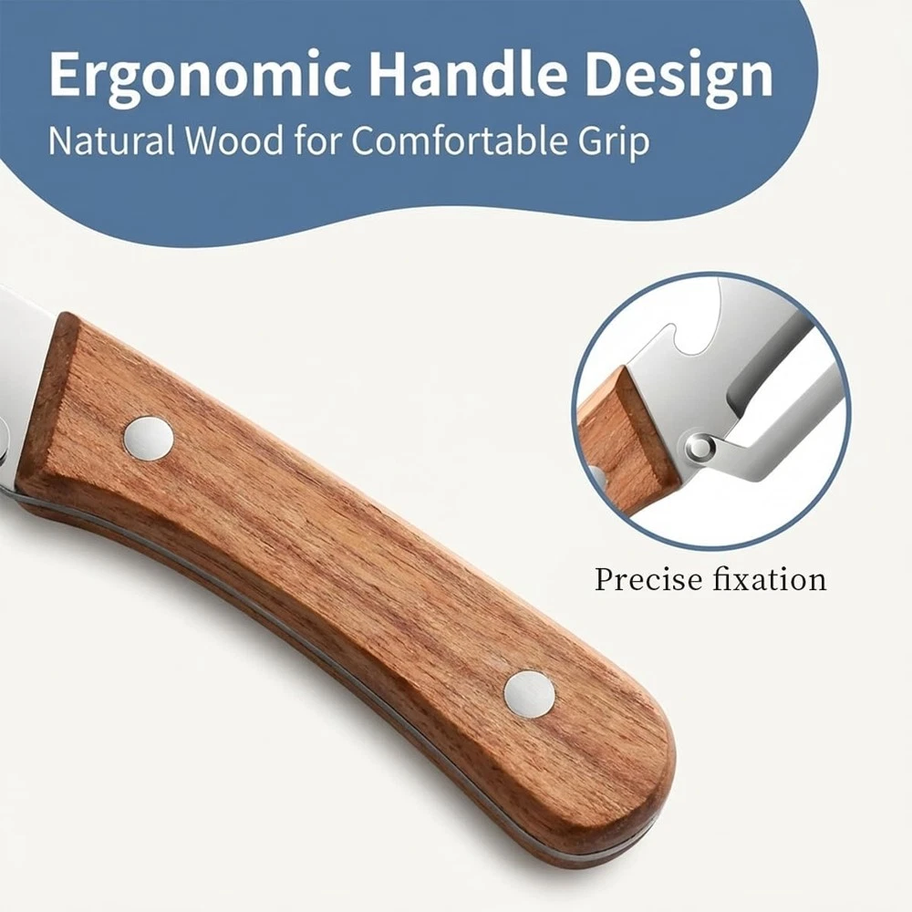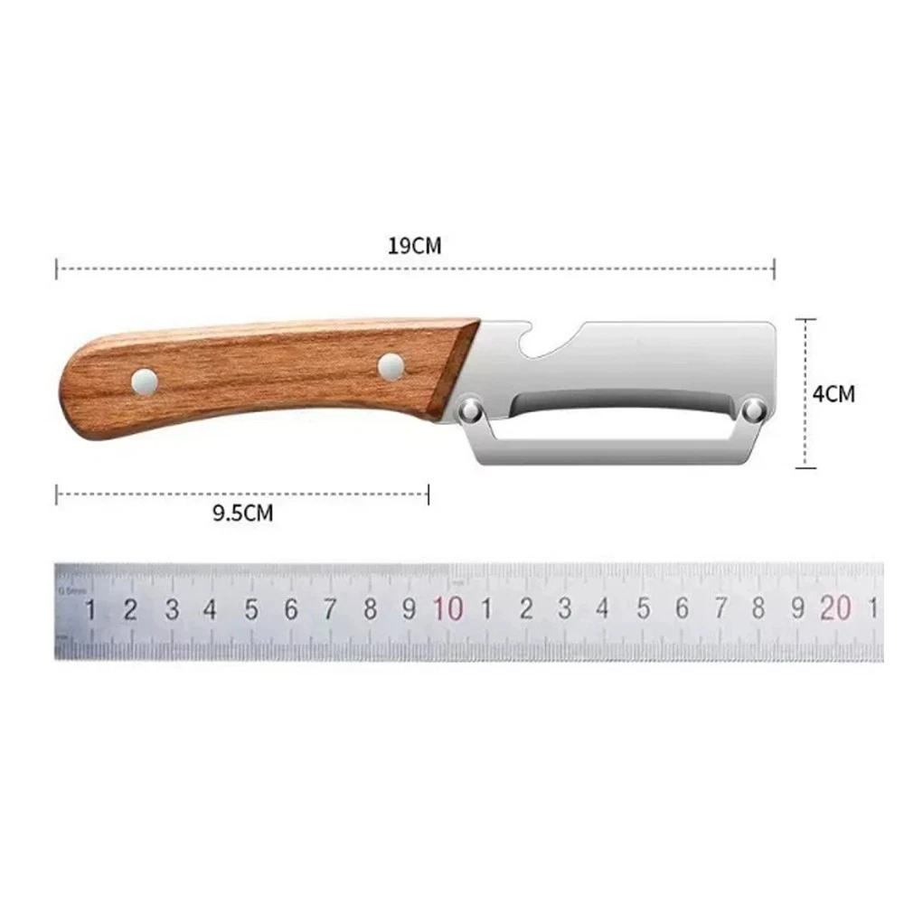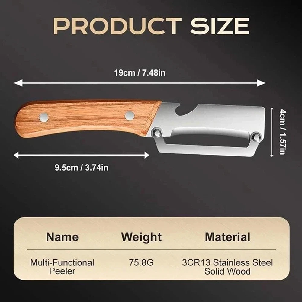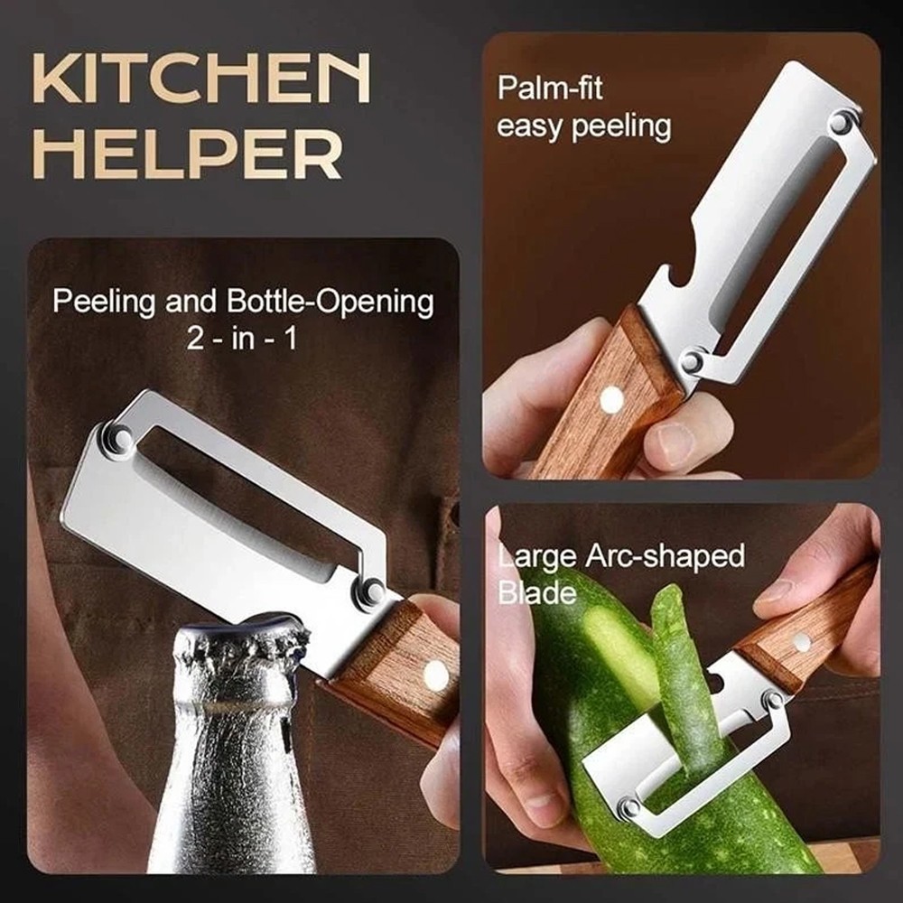 Upgrade your everyday kitchen prep with this practical and well designed multi functional vegetable peeler. Built for comfort and efficiency, it helps make peeling and slicing easier and safer for daily cooking πŸ’šπŸŽπŸ₯• Key Features πŸ”ͺ High Quality Stainless Steel Blade Made from stainless steel for durability and resistance to deformation or damage, suitable for long term use. βœ‹ Wooden Handle Solid wood handle that is non slip and heat resistant, designed for a comfortable and secure grip during use. πŸ₯• Versatile Kitchen Tool Suitable for peeling, slicing, thin slicing and julienne style cutting of fruits and vegetables. ✨ Smooth and Efficient Peeling Thin and sharp blade allows smooth peeling with minimal force, helping reduce uneven peeling and waste. 🧼 Easy to Clean and Maintain Easy to clean after use, making daily maintenance simple and convenient. 🍾 2 in 1 Design Functions as both a vegetable peeler and a bottle opener for added convenience. Specifications 🌳Material: Wood and stainless steel πŸ“ Overall Length: 19 cm πŸ“ Width: 4 cm βœ‹ Wooden Handle Length: 9.5 cm πŸ“ Quantity: 1 piece Package Includes πŸ“¦ 1 x Multi Functional Vegetable Peeler Notes βœ…οΈ Please refer to the description for size details, images do not show actual size. βœ…οΈ Minor differences may occur due to manual measurement. βœ…οΈ Actual color may vary slightly depending on monitor settings. βœ…οΈ A simple and reliable kitchen helper designed for everyday use, combining functionality, comfort, and durability 🍽️