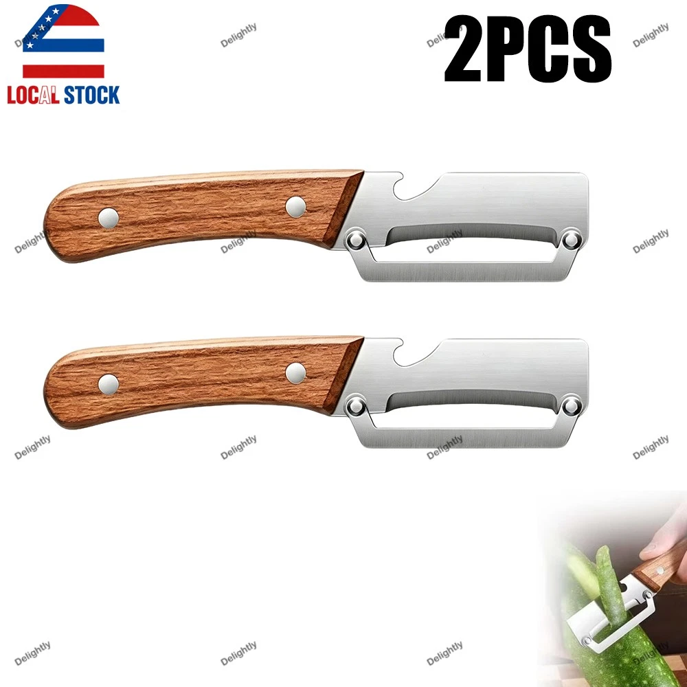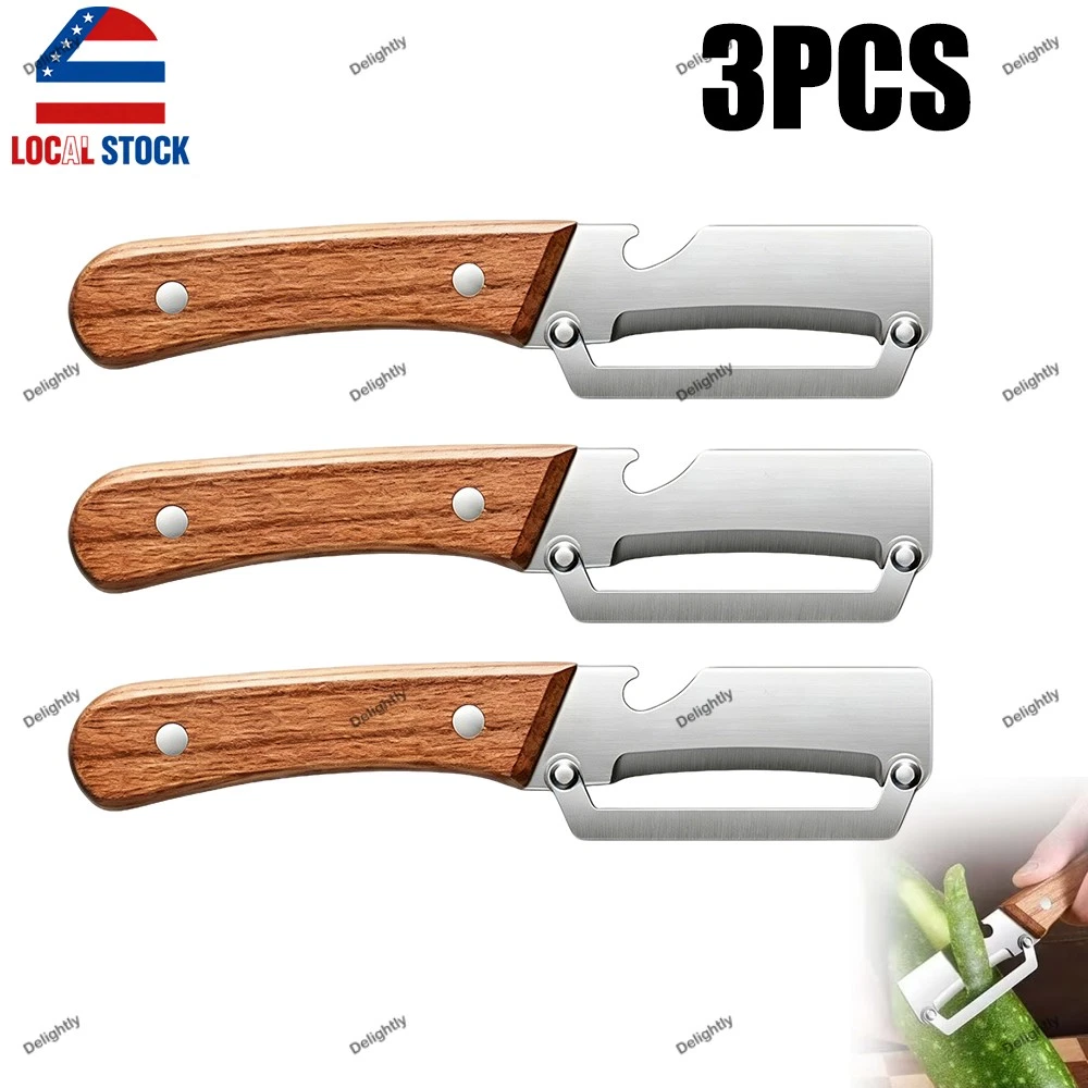 1-5PCS Stainless Steel Peeler with Wooden Handle – Fruit & Vegetable Slicer-NEW