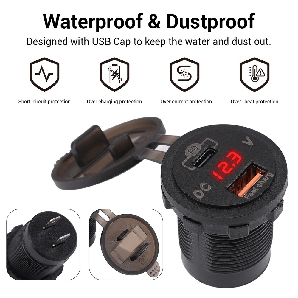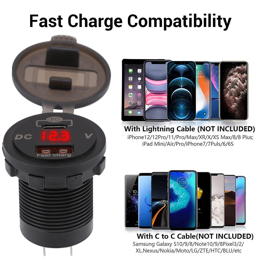 1-5PCS USB Quick Charge QC3.0 & PD 12-24V Port Car Charger Socket with Voltmeter Feature: Material: ABS Color: Black LED screen color: red display Input voltage: DC12v-24v The actual output is QC3.0:18W PD output: 30W PD output voltage :5V3A 9V3A 12V2.5A QC3.0 output voltage :5V3A 9V2A 12V1.5A Suitable for :DC 12/24V car, boat, boat, motorcycle, ATV, RV, etc. How to use: 1️ to drill a hole about 3cm in diameter 2️ to plug and tighten the socket 3️ to connect the "+" red line to the positive electrode of the battery and the "-" black line to the negative electrode 4️ to eligible installation Package Include: 1-5 X Fast Car Charger 2-10 X Blue terminal Shipping Payment Return and Refund Policy Feedback Help - Customer Support - Contac Shipping FREE SAME BUSINESS DAY MONDAY- FRIDAY SHIPPING FROM USA. No shipping on Weekends or US Public Holidays. No responsibility for any custom duty We will ship your order to your PayPal Verified address provided. Please verify your address and make sure that it is your current address before making your payment. Any address change requests after your payment CANNOT be guaranteed. Shipping information will be updated when available. All of our products can be shipped internationally. To confirm the shipping rates to your country please refer to eBay's Shipping Tab above. Any brokerage, customs, and duty fees associated with international shipments are the customer's responsibility and are not included in our shipping fee. A phone number is required for the customs documents. Failure to provide one will result in delays. We do not include an invoice or any advertising materials with our shipments. Payment Immediate payment is required. Shipping will be arranged within 1 business day once payment is cleared. To uphold a shipping speed, your order will be processed almost immediately. If you change your mind after your payment is confirmed, we will do our best to cancel the order, however, we CANNOT guarantee the cancellation. Return and Refund Policy 1. We stand behind our items and offer 30 days warranty . All items are in new and working condition unless specified otherwise elsewhere in the description. 2. All Returns - defective or otherwise - MUST BE PREAUTHORIZED to guarantee refund or exchange. Please contact us to get an authorization and return address. 3. Buyer agrees to pay for the cost of re-shipment for undeliverable or wrong addresses. 4. Buyer is responsible for Return Postage as well as a 20% restocking fee if return/replacement is not a result of our mistake such as wrong item. 5. Replacement or Refund will be made upon receipt of the returned item. Please include tracking number so we can process ASAP. If you do not wish to wait for a replacement, please repurchase the item. 6. ALL REFUNDS will be processed via PayPal. Please double check via PayPal history and transaction for confirmation. PayPal will send it back to whatever you used to pay within 3-5 days. Feedback We strive to provide the best products and services. Your positive feedback 5 stars DSR help us do better. If anything about your transaction did not meet expectations, please CONTACT US and give us the opportunity to make things right. We are always here to help. Help - Customer Support - Contac Please do not hesitate to CONTACT US . You can message 24/7 on eBay for all questions and inquiries. We will get back to you within 1-2 business days at the latest.