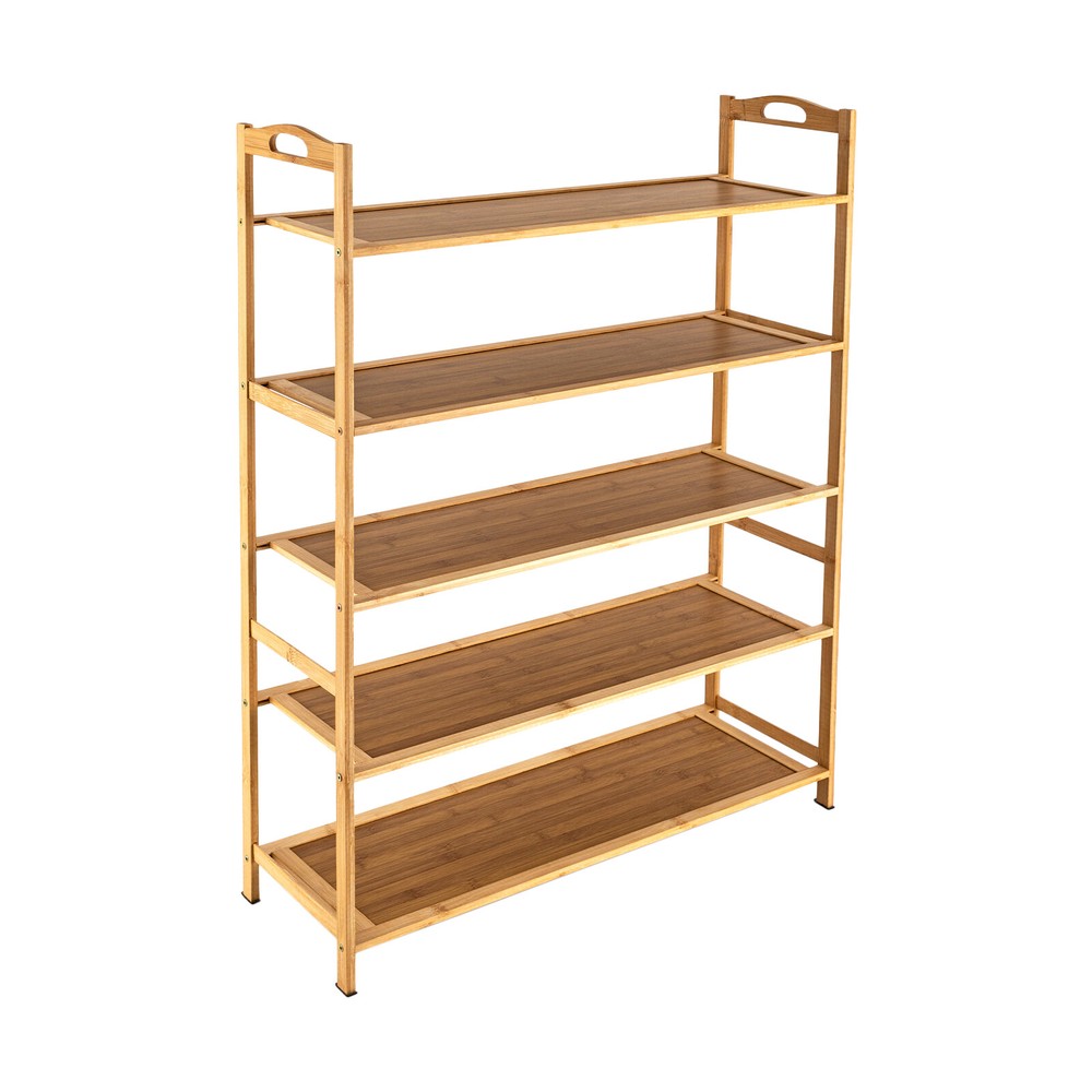 This shoe rack is a game-changer for keeping my entryway tidy! The bamboo and density board construction feels sturdy and looks elegant, blending perfectly with my home decor. The 5-tier design holds all my shoes neatly, saving so much space. It’s durable, stylish, and super functional—exactly what I needed to organize my collection!