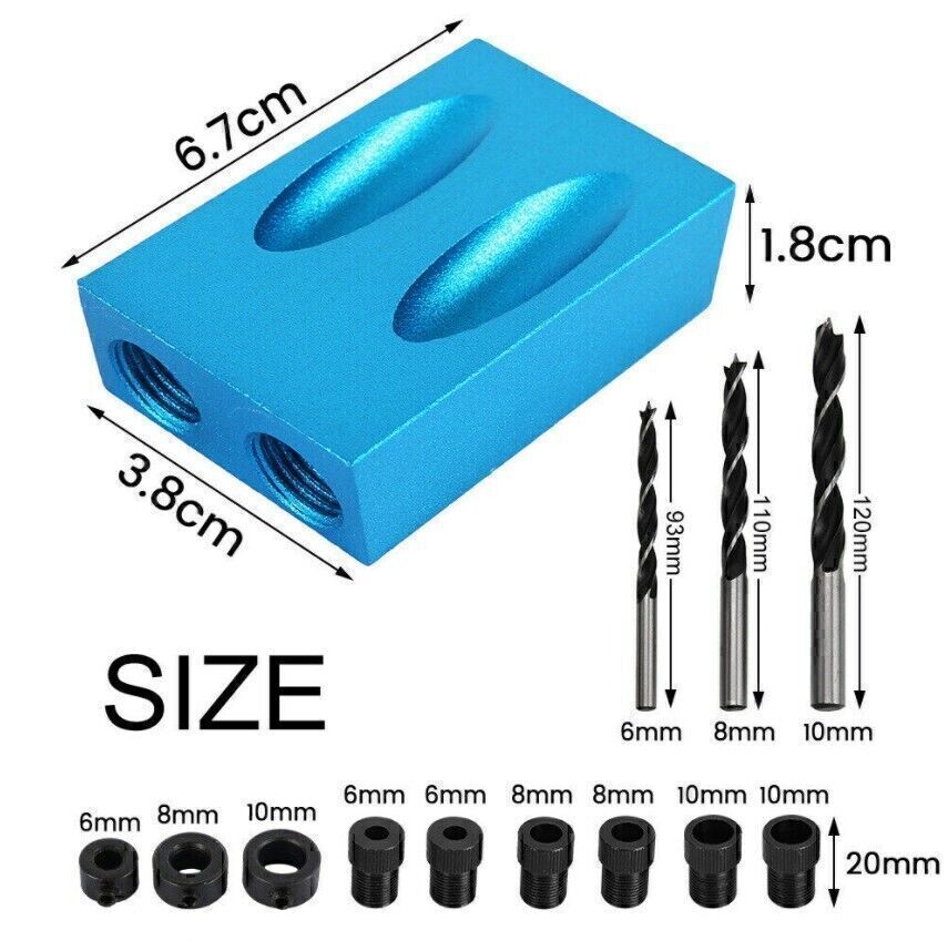 You Might Also Like Waterproof Digital Sports Watch Military Tactical LED Backlight Wristwatch Men 9.56 USD 10.99 USD Free shipping 13% off Black Resin Watch Strap For CASIO Sport Diving Watch Rubber Replacement Band 7.39 USD 8.49 USD Free shipping 13% off Replacement 6 Channel USB Receiver Dongle For Logitech Unifying Keyboard/Mouse 11.56 USD 13.29 USD Free shipping 13% off Replacement USB Receiver Dongle For Logitech M950 M310 M525 M720 Keyboard 8.43 USD 9.69 USD Free shipping 13% off USB Wireless Bluetooth Receiver 3.5mm AUX Audio Stereo Music Home Car Adapter 8.26 USD 9.49 USD Free shipping 13% off 18MM Watchband For Casio W-800H F-91 W-218H Watch Band Replacement Black Strap 7.82 USD 8.99 USD Free shipping 13% off 1 PCS 7S26A Movement Automatic Rotor Oscillating Weight For Seiko NH35 NH36 11.3 USD 12.99 USD Free shipping 13% off 4 Colors For PSP3000 Shell Case Replacement Full Housing Cover With Buttons 20.87 USD Free shipping 12V Digital Thermostat Temperature Control Switch Sensor Module Board 8.87 USD 10.19 USD Free shipping 13% off Touch Screen Pen Stylus Drawing Universal For iPhone iPad Samsung Tablet Phone 8.69 USD 9.99 USD Free shipping 13% off For NZXT Aer RGB InOut Cable Input Cable Connection Cable Case Fan Adapter Cable 7.47 USD 8.59 USD Free shipping 13% off Watch Band Leather Wrist Replacement Strap Quick Release Buckle 14/18/20/22mm 8.0 USD 9.19 USD Free shipping 13% off Product Description If you have any questions, please contact customer service first, do not open disputes easily, thank you! 15Pcs Pocket Hole Jig Kit Specification: Drill Material: Carbon Steel Ring Material: Carbon Steel Positioner Material: Aluminum Main color: Blue + Black Positioner Size: Approx. 67 * 38 * 18 cm Drill diameter: 6 mm, 8 mm, 10 mm Stopper Size: 6mm, 8mm, 10mm Sleeve Size: 6 mm, 8 mm, 10 mm Angle: 15 degrees Quantity: 15 Pcs/Set 57PCS Pocket Hole Jig Kit Feature: HARD TOOLS: The pocket hole drill guide set is an amazing woodworking jig and an exceptionally handy tool collection. ALUMINUM ALLOY: Drill guide is made of high quality aluminum alloy for durability and long service lifetime. EASY TO INSTALL: Come with simple structure, the inclined hole locator is easy to use and install, suitable for jointing wood boards. UNLIMITED APPLICATION: This jig has unlimited application, such as creating flush, fastening picture frames. Package: 1 x Drill guide 3 x Drills 3 x Stoppers 6 x Sleeves 1 x Allen key 1 x F-clip Features: - HARD TOOLS: The pocket hole drill guide set is an amazing woodworking jig and an exceptionally handy tool collection. - ALUMINUM ALLOY: Drill guide is made of high quality aluminum alloy for durability and long service lifetime. - EASY TO INSTALL: Come with simple structure, the inclined hole locator is easy to use and install, suitable for jointing wood boards. - UNLIMITED APPLICATION: This jig has unlimited application, such as creating flush, fastening picture frames. - Easy to use-slant holes are drilled easily and quickly to hide the screws in wooden furniture. DIY woodworking tools and 2-way oblique holes to achieve precise screw connection. Specification: - Product Type: Pocket Hole Jig - Material: Aluminum - Main colour: Blue + Black - Angle: 15 degrees - Quantity: 57Pcs/Set Package Included: - 1pc Pocket hole jig - 2pcs Woodworking Clamps - 1pc Blue Stick - 12pcs Large Screws - 5pcs Limit Rings - 5pcs Drill Bits - 1pc Inner Hexagon - 15pcs Screws - 15pcs Corks About Us We accept all payments authorized by eBay. powered by