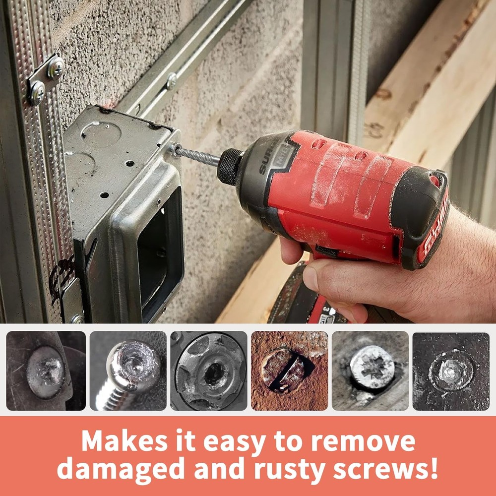 【6542# LEFT-HAND DRILL BIT SET】:Left-hand drill bits are made from cobalt-fortified high-speed steel for increased durability and service life. The 135° angle design of the head makes it easier to touch the fasteners and ensures precise countersinking and hole smooth clean. 【MULTIPLE SIZES】: 7pcs HSS left-hand drill bits and 7 alloy steel bolt extractors. Left-hand bits / reversed drillbits - 1/8", 5/32", 3/16", 1/4", 19/64" and Matching Alloy Extractors (stud outs) - 2×1#, 2×2#, 3#, 4#, 5# in a portable storage case that provides excellent protection and against lost screw extractors. 【SAVE TIME AND EFFORT】: 37# CR-MO Extraction bits easily remove broken screws, studs, bolts and other fittings effectively. Stripped bolt remover and extractor works on seized bolts, broken fasteners, and commonly called an easy out. 【MULTI-PURPOSE】: Bolt extractors that remove broken screws, whether working on wood or metal, are ideal for construction, automotive, home DIY projects, or industrial use. These extractors are excellent for working in a production environment and using screw head bolts. 【PREMIUM SERVICE】:We are committed to providing every customer with the best products and best service. If you have any product questions, you only need to contact us through the Amazon platform. We have a professional team to solve it for you!
