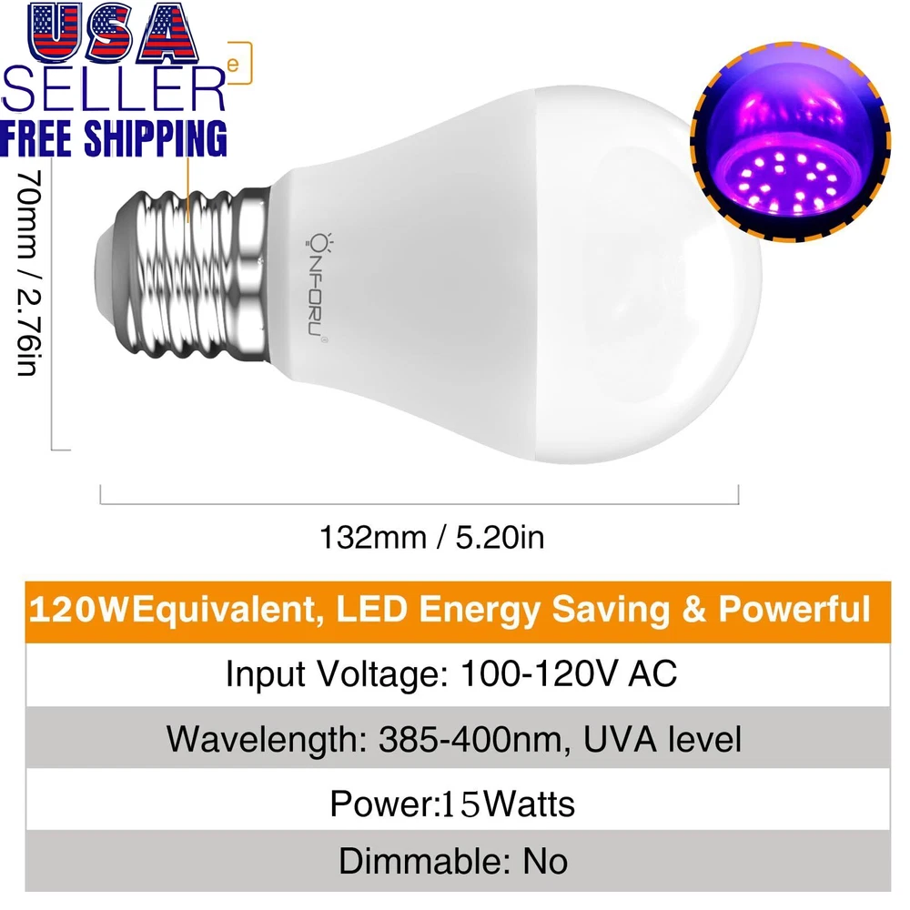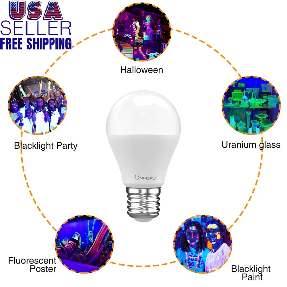 Store New Arrivals Add to Favorite View Feedback Contact 15W LED Black Light Bulbs A19 E26 120W Equivalent Blacklight Bulb for Glow I Description Condition New: A brand-new, unused, unopened, undamaged item in its original packaging (where packaging is ... Brand Onforu Type Does not apply Package Dimensions LxWxH 5.83x5.83x3.03 Inches ISBN 0753318000674 Size 2 Count (Pack of 1) Color 2pack-9w Weight 0.35 Pounds eBay 2 Pack 7W A19 UV LED Black Lights Bulb with E26 Medium Base for Blacklight Party, Body Paint, Fluorescent Poster, Neon Glow, Glow in The Dark 【Note】 When the light is not powered on, the lampshade itself is transparent, and the purple effect of the picture is the effect after power on! 【Powerful Blacklight Bulbs】120W Equivalent, with 18 high-quality LEDs and 270 degree wide beam angle, this black light bulb can cast bright and wonderful light to neon glow objects, creating an impressive atmosphere you don' t want to miss out. 【Safe Use & Energy Saving】With 385-400nm wavelength, this reactive black lights is safe and healthy level, which can be used in the kid's room and not harmful for the health.High-quality LED lamp beads, high-efficiency luminescence. 【Fluorescent Reactive】Ideal for illuminating most reactive pigments, paints and dyes with black light. Especially with neon-colored objects, the blacklight bulb work super cool for body paint and other visible fluorescent materials. 【Various Application】These decorative bulbs can be used to body painting, blacklight fluorescent posters, neon glow party or just decorate your home, perfect for Christmas, Halloween, club, aquarium, bar, etc. 【Easy Installation】Just screw in these E26 black light bulbs into the medium base and then you can start your glow-in-the-dark party! ABOUT US We offer the best prices around on high quality products. Our E-store includes media such as books, movies, music and games while offering electronics, toys, sporting apparel, clothing, tools, general home, garden items and more. SHIPPING We are always working hard to ensure your package arrives as soon as possible. Please understand that some factors like weather, high postal traffic, and the performance of shipping companies are outside of our control. We offer free shipping to the lower 48 states and ship within 2 business days of payment, usually sooner. We do not accept P.O. Boxes. Please provide a physical address. For shipping outside of the continental USA, we only use eBay's Global Shipping Program.The item is shipped to KY and then sent to the rest of the world. International customers are responsible for all duties and taxes. Continue to check out in order to calculate costs for shipping the item to your country. Messages regarding eBay's Global Shipping Program MUST be directed at eBay EXCLUSIVELY. RETURNS We offer a 30-Day Return Policy on items which you are not completely satisfied with. You have the option for a full-refund or an exchange of the item. No returns are available on items shipped outside of the USA. PAYMENT We accept PayPal. CONTACT US This page content is yet to come Please ad us to your favorite seller and visit again later Thank You CUSTOMER SATISFACTION We try our very best to make sure every customer is completely satisfied. If there's a problem, message us! We're happy to help. WE ACCEPT Copyright © 2021 AutoDS. | All Rights Reserved