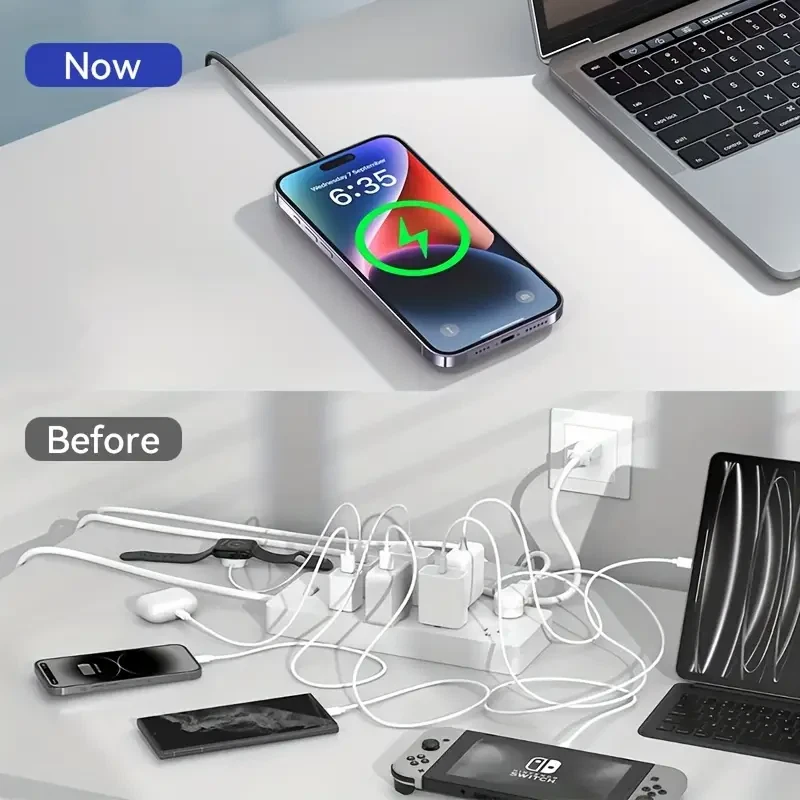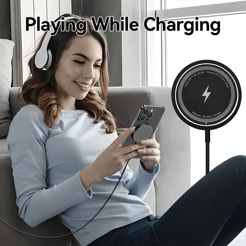 (Dual Ports Input) This magnetic charging pad has dual input ports, one Type-C port and one USB-A port. Compatible with the regular wall charger you own, so you don't have to worry too much. You can choose a suitable wall charger for use. NOTE: Please use QC3.0 or higher power adapters. [NO WALL CHARGER INCLUDED] (Intelligent Protection)As with MacSafe Charger, your iPhone magnetic wireless charger might get slightly warmer while your iPhone charges. To extend the lifespan of your battery, if the battery gets too warm, software might limit charging above 80 percent. (Metal & Portable Design) The high-quality metal material exhibits a unique luster, avoids scratches or fingerprints, not only keeps perfect appearance, but also is more durable. Only 0.23 inch thin, just like the smallest & lightest wireless magsafe charger with the 1m long cable. Free up more space, it can be put into backpacks, pockets or bags. Specifications Type: 15W Magnetic Wireless Charger Phone Output: 5W/7.5W/10W/15W Interface: TYPE-C/USB A Charging Distance: Less Than 6mm Charging Efficiency: 80 Percent Input voltage/current: 9V-2A/12V-2A In order to ensure fast charging, please use QC3.0 Power adapter for charging. Feedback: 1) Your Feedback is really important to us,please take a few seconds to leave great feedback if you are satisfied with our product or service, thank you so much! 2) We always offer the lowest price for best goods and service to you. 3) Please contact us before leaving neutral(3 stars) or negative(1-2 stars) feedback. We will try our best to solve the problem and leave you a happy shopping mood here. Thank you!