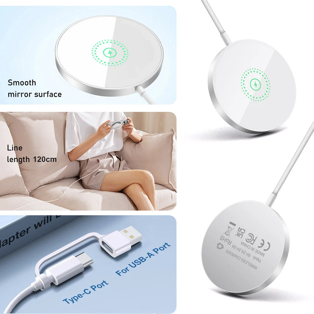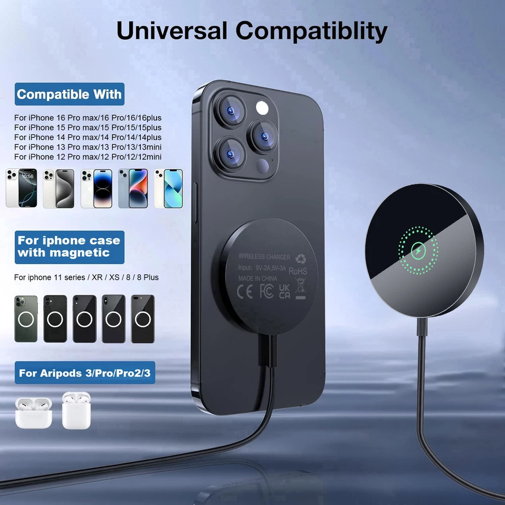 This magnetic wireless charger is a game-changer! It snaps perfectly onto my iPhone and charges super fast without any fuss. The strong magnet keeps it securely in place, so I can still use my phone while it powers up. No more dealing with tangled cables—just drop it on the pad and it works like magic. Super convenient and worth every penny!