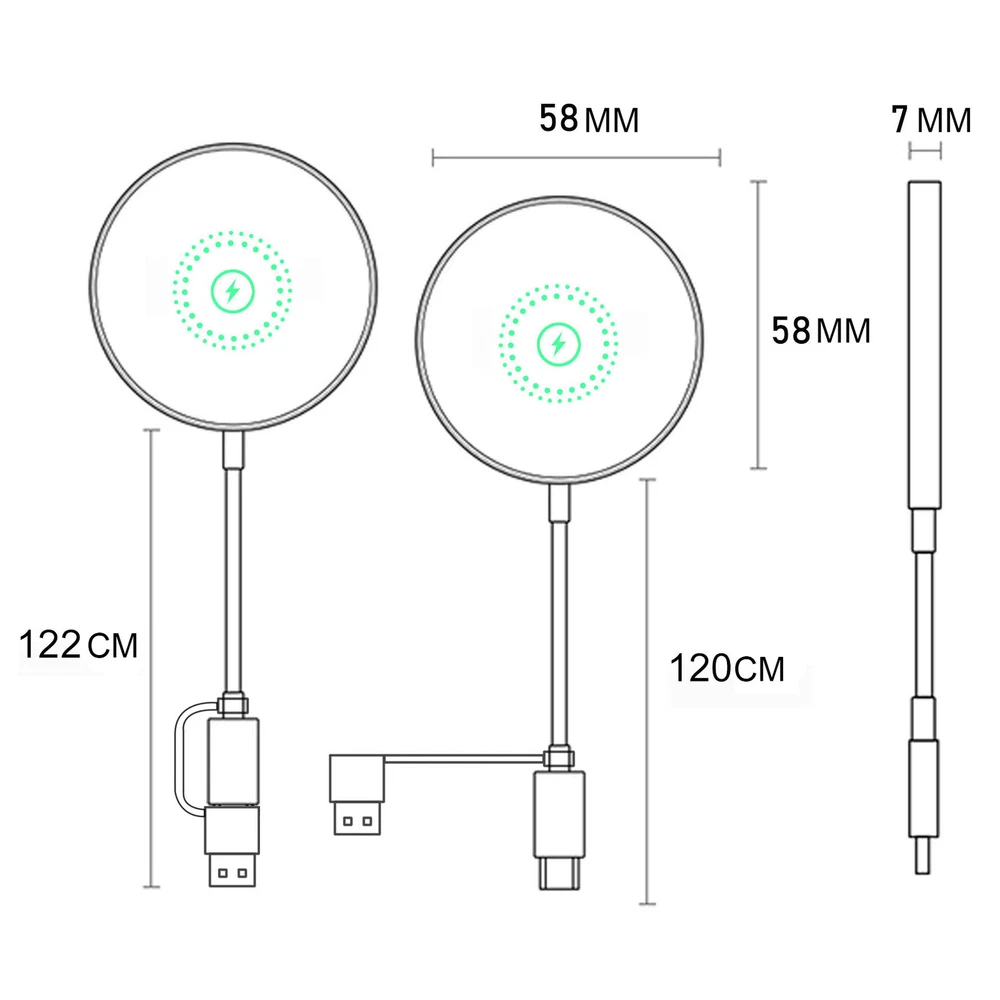 Wireless Charging Standard:MagneticItems Included:1 x Wireless Charger Mat with CableCompatible Brand:For AppleFeatures:Magnetic, Wireless ChargingItem Width:58mmDesign/Finish:LuxuryItem Weight:70gItem Height:7mmMounting Type:MagnetMPN:B60004001Type:Charging PadCable Length:1.2 mCompatible Model:For Apple iPhone 16 Pro Max, For Apple iPhone 16 Pro, For Apple iPhone 16 Plus, For Apple iPhone 16, For Apple iPhone 15 Pro Max, For Apple iPhone 15 Pro, For Apple iPhone 15 Plus, For Apple iPhone 15, For Apple iPhone 14 Pro Max, For Apple iPhone 14 Pro, For Apple iPhone 14 Plus, For Apple iPhone 14, For Apple iPhone 13 Pro Max, For Apple iPhone 13 Pro, For Apple iPhone 13 mini, For Apple iPhone 13, For Apple iPhone 12 Pro Max, For Apple iPhone 12 Pro, For Apple iPhone 12 mini, For Apple iPhone 12Brand:FDGAOMaterial:MetalItem Length:58mmNOTE 1:Only Support Apple iPhone 12/13/14/15/16 SeriesCountry/Region of Manufacture:ChinaMounting Location:DeskNOTE 2:Adapter Not IncludedNumber of Ports:1Connectivity:USB-CVoltage:9 V