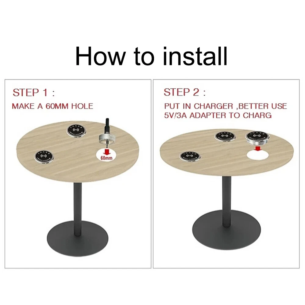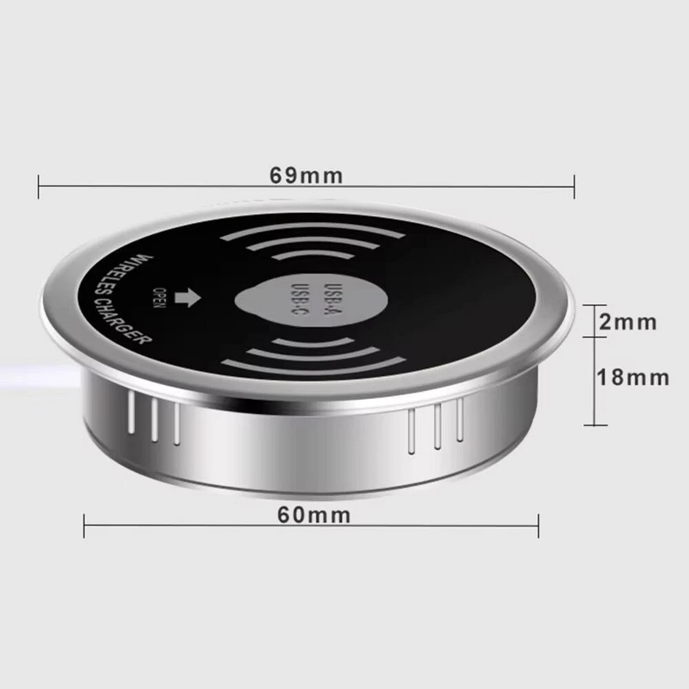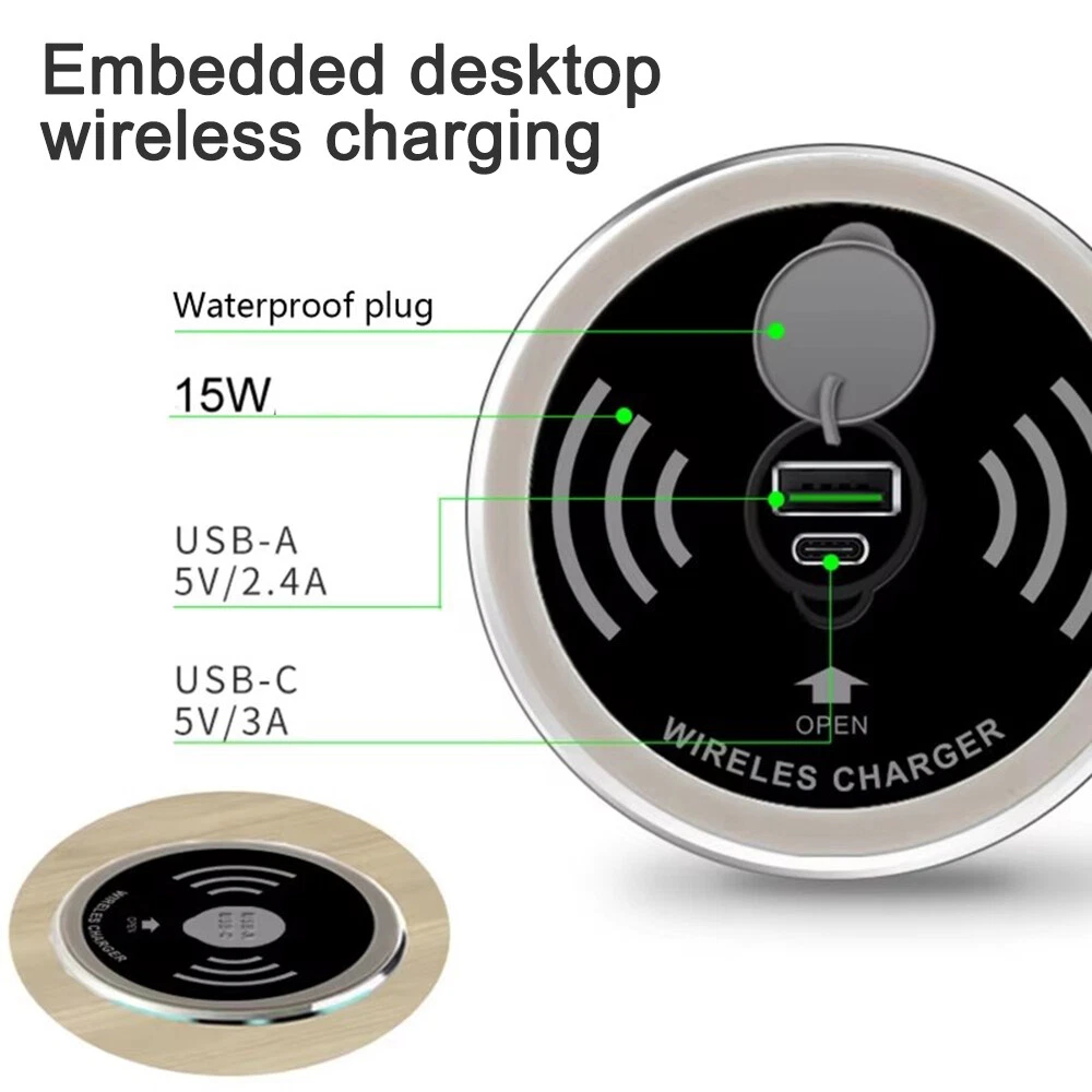 15W Phone Desktop Wireless Charger Furniture Table Desk Embedded Fast Charging