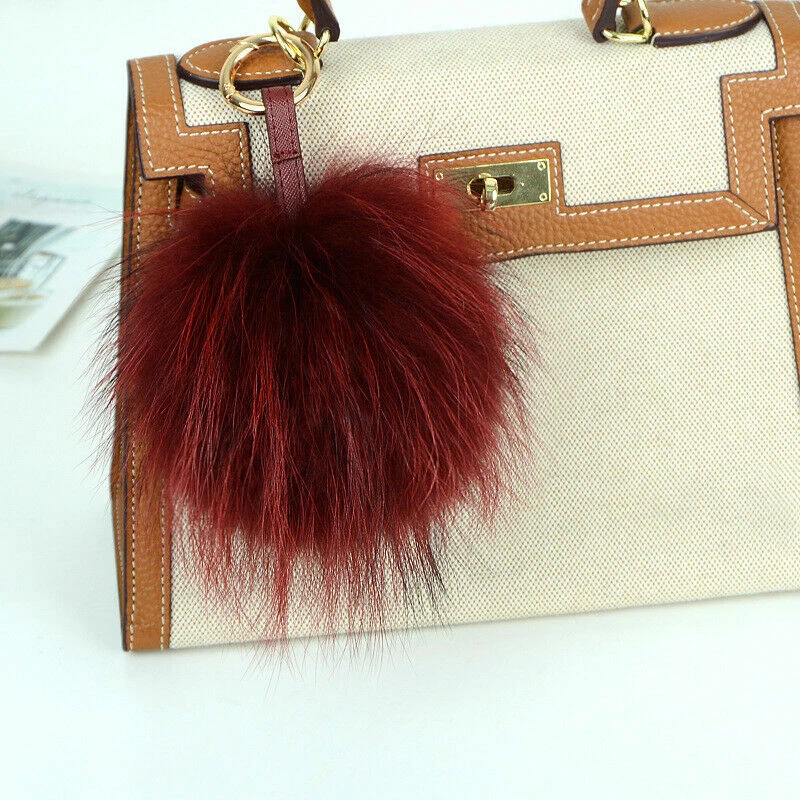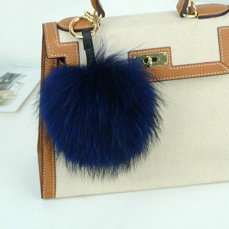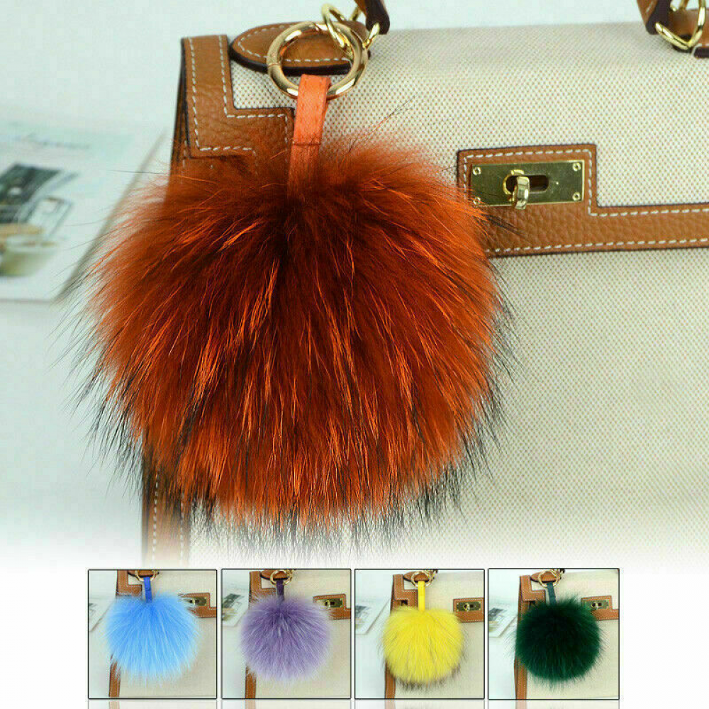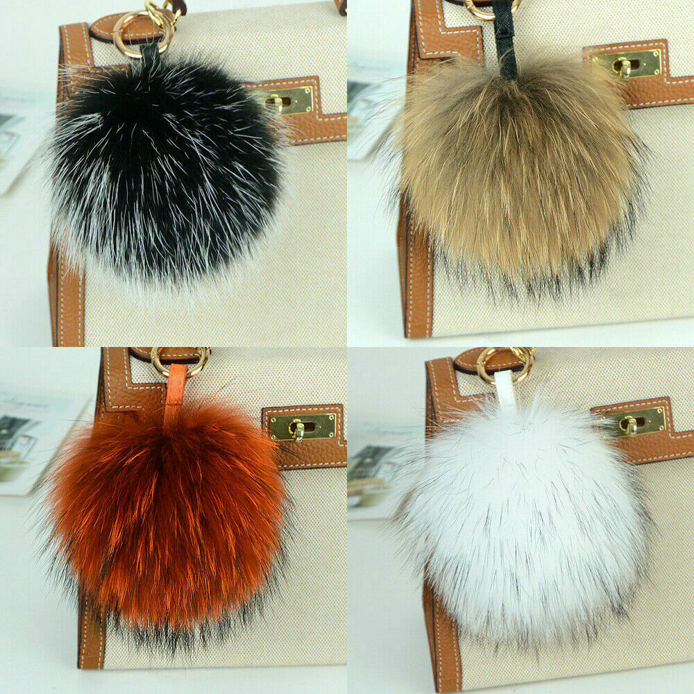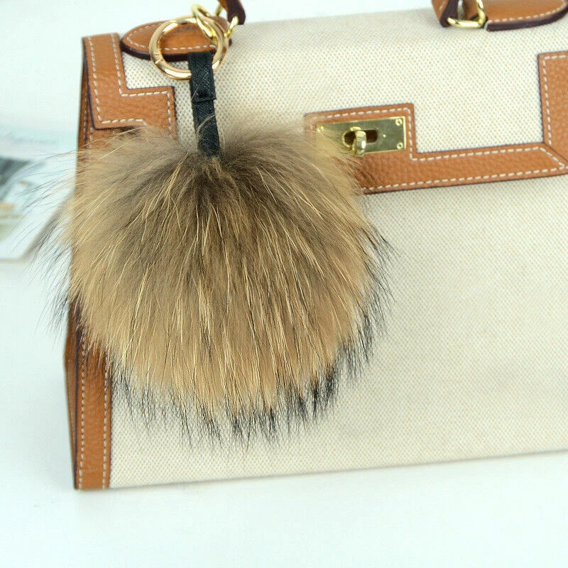15cm Large Soft Real Raccoon Fur Fluffy Pompom Keychain Bag Charm