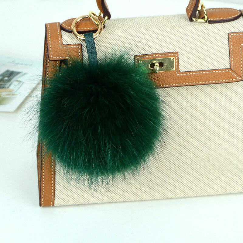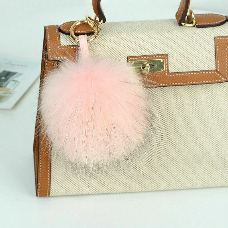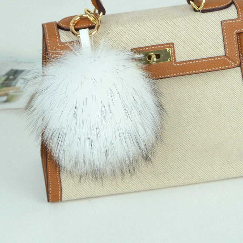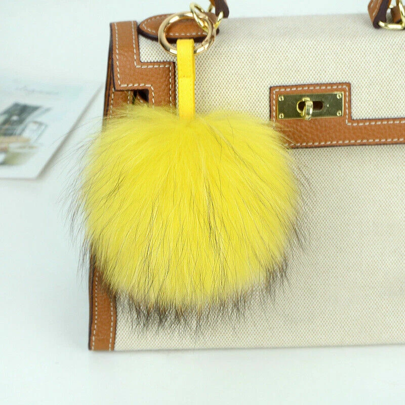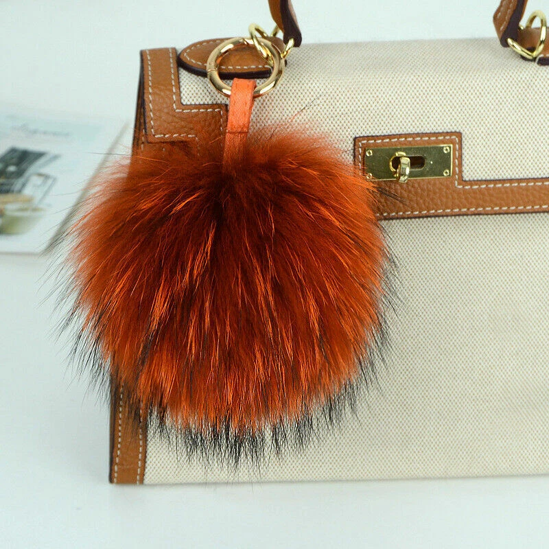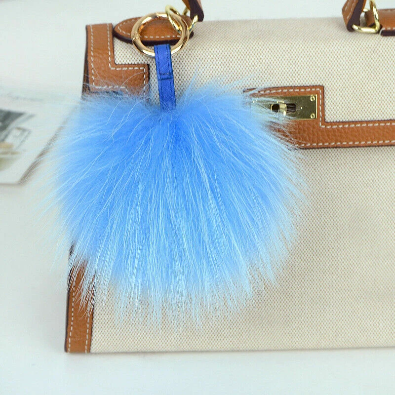 15cm Large Soft Real Raccoon Fur Fluffy Pompom Keychain Bag Charm