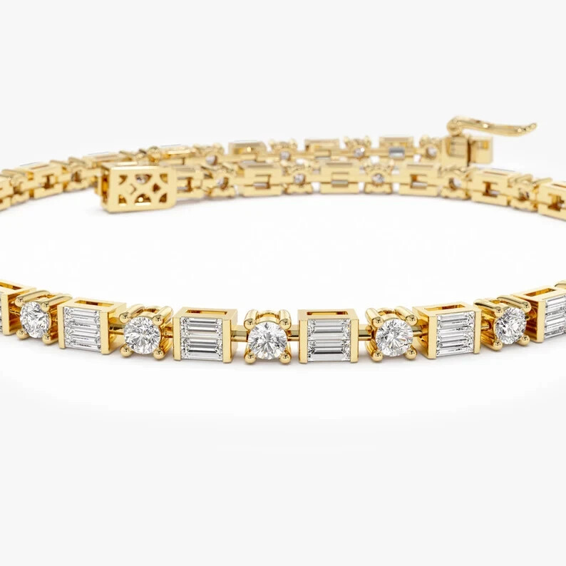 Blule Star_Manufacturer We Offer Customization Want to add a personal touch to this piece? Contact us and we will create one just for you. Customization We Offer : This stunning tennis bracelet features 15 carats of baguette-cut simulated white diamonds set in 14k yellow gold plated sterling silver. The bracelet measures 8 inches in length and has a round shape with a push lock closure. It can be personalized and is handmade with excellent cut grade and eye-clean gemstone clarity. The adjustable chain type and engraved charm add a touch of beauty and artistry to this elegant piece, making it a perfect choice for special occasions like engagements, weddings, anniversaries, birthdays, and more. Please send us a message on eBay for any customization requests and we will get back to you Payment We only accept payment via Payoneer, Please sent the payment to us within 8 days after the auction has ended, or you will have unpaid case auto open by eBay. Shipping We will ship all items within 5-7 business days of purchase during the work week (M-F) excluding holidays. If you order on Friday, your order will be shipped the following business day. Tracking will be provided when it becomes available. Domestic delivery may take up to 1 week. It all depends on the local office. Once the order leaves our location, we have no control over delivery times. We will only ship to a corresponding Govt Z.P.O.Dept Verified Address. Please make sure your address is current and correct. If the information does not match, your order may be cancelled. Buyers are responsible for all customs, duties and taxes for your respective countries. Delivery times for International Shipping will vary. California Buyers Pay 9.0% Tax on all orders case auto open by eBay. Terms of Sale Returns are accepted. Buyer must contact us within 30 days after the item is received. Item must be returned in unworn and resalable condition. We will only issue a refund for the purchase price, excluding any shipping fees. If we are at fault, we will provide a full refund. Buyer is responsible for all return shipping costs. Feedback Please do not leave a negative feedback as a way to communicate. Any rating given to a seller can neither be changed nor modified. So better communicate for faster resolution to any disputes. If you have any concerns regarding your purchase, please contact us via eBay Message, we assure you that a satisfactory resolution will be reached. Please help us maintain a 5 Star DSR rating in all 4 rating categories, if you feel otherwise, please let us know how we can score a perfect rating from you before you rate us. Thank you Visit Again