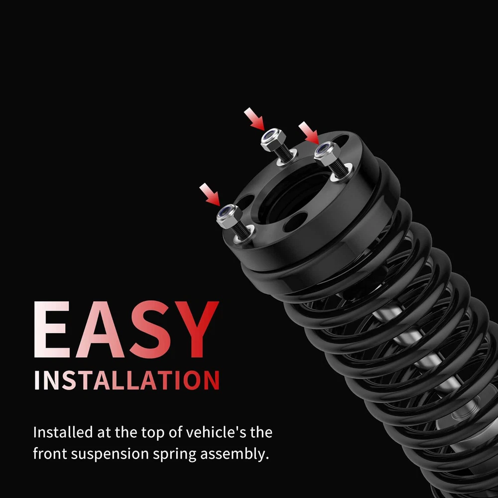 1. Just installed this 1.5" leveling kit on my F150 and it made a huge difference! The billet aluminum spacers fit perfectly and gave my truck a more aggressive stance without any rubbing issues. Super easy to install with the included hardware, and the black finish looks clean. Great quality for the price—highly recommend for anyone wanting a subtle lift and leveled look. Works exactly as described!