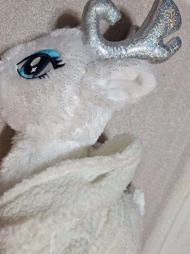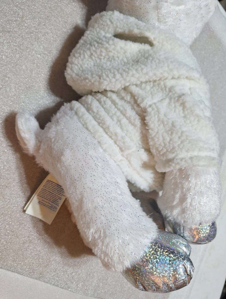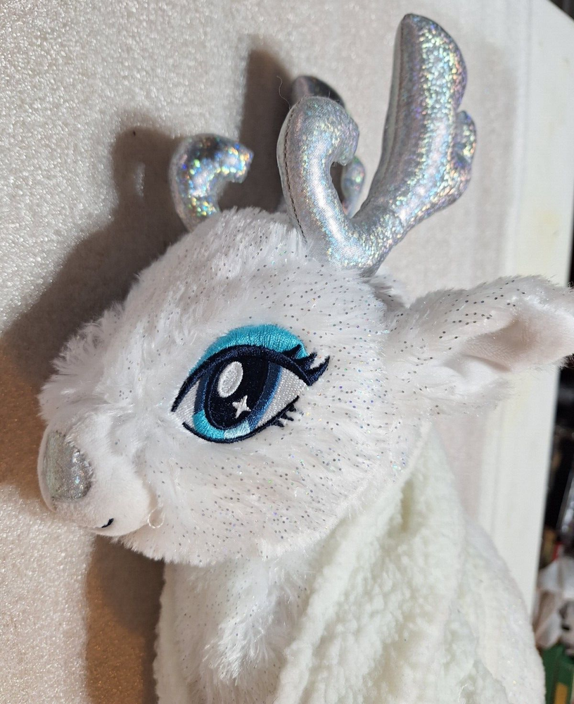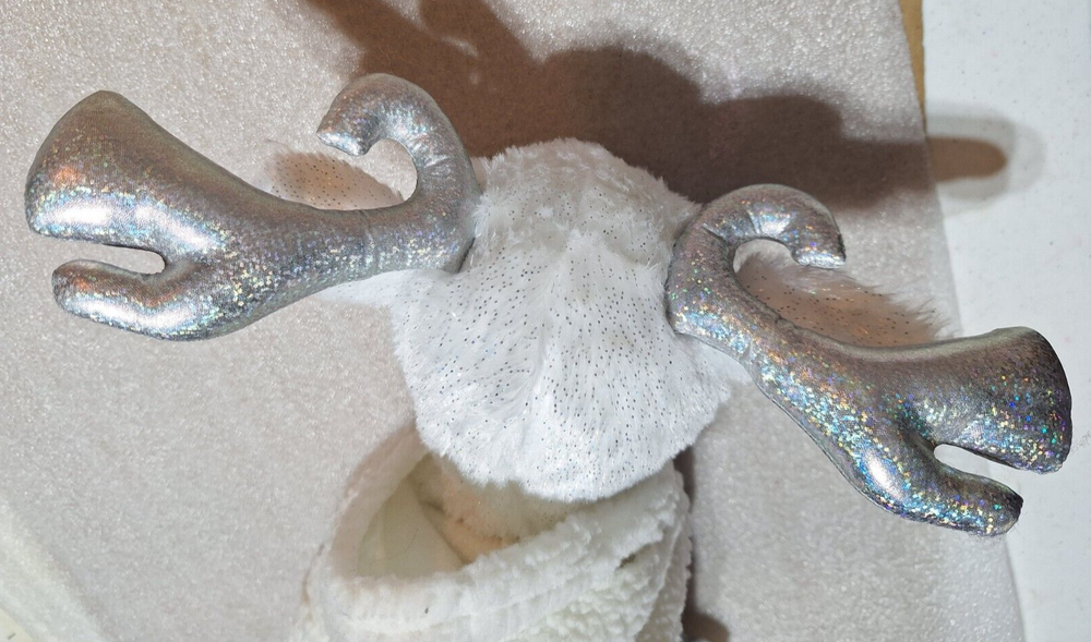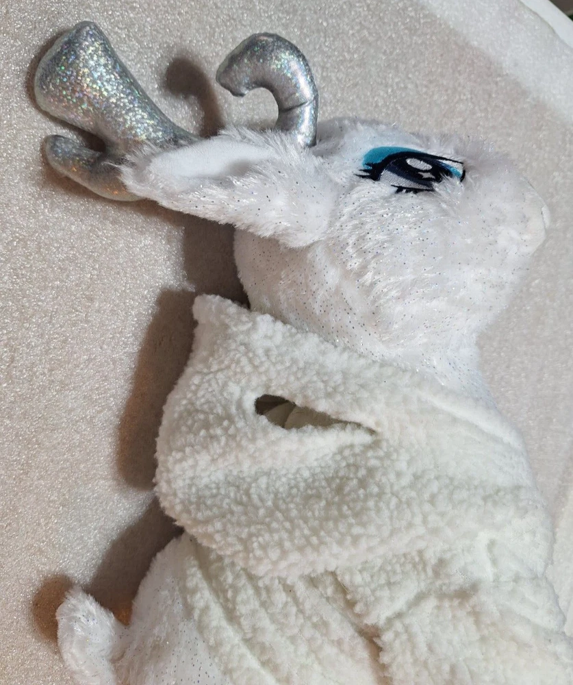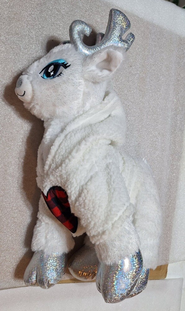 15" Build a Bear Merry Mission Glisten Reindeer Plush about 18" tall. Features Silver Horns, Glittery fabric and a sherpa hoodie with holes for the horns to go in. I CAN REMOVE THE STUFFING TO SAVE YOU SHIPPING MONEY BUT YOU MUST ASK BEFORE YOU PAY SO I CAN ADJUST THE SHIPPING CHARGES. ********************************************************** We are a non-smoking home. I do combine shipping FOR USA SHIPPING ONLY so please check out my other items. If you wish to combine shipping you must wait to pay so that I may invoice you with the reduced shipping price .