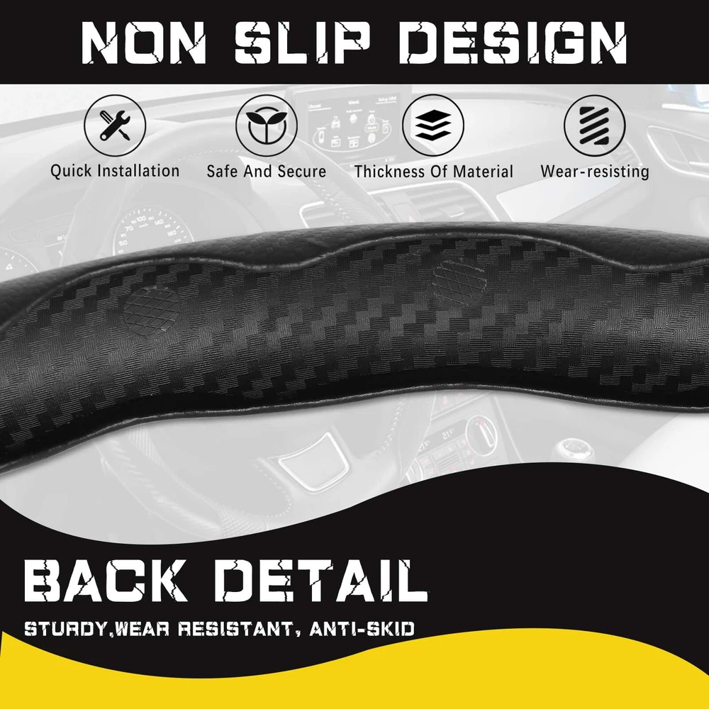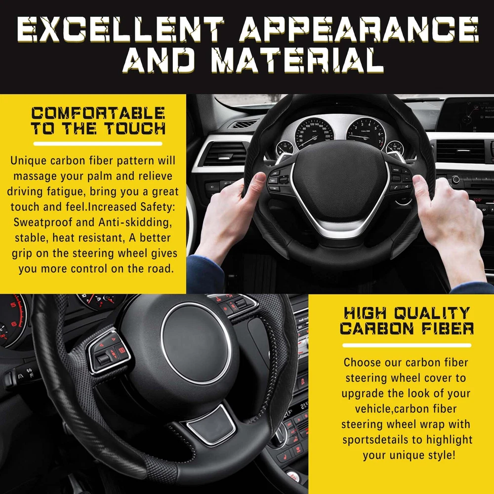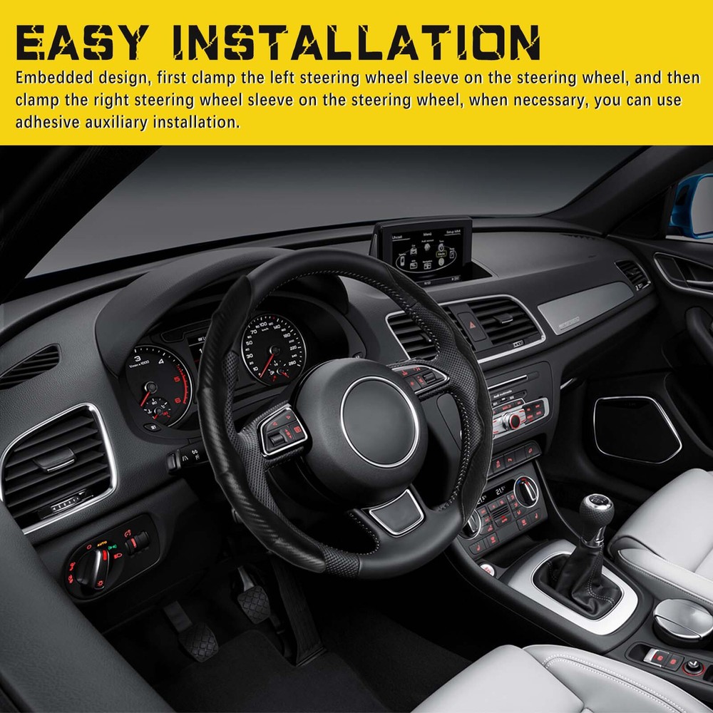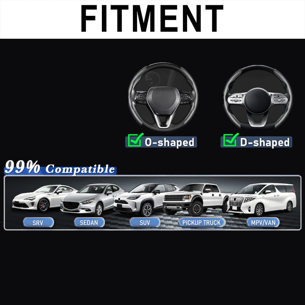 For Nissan Frontier 15'' inch Carbon Fiber Car Steering Wheel Cover Leather BK Color: Carbon Fiber Material: Leather Features: 【 Protection Function 】It can can protect your steering wheel from sun, scratches, fading, wear and dirt. And it can anti-sweat and anti-skid, and has a better grip on the steering wheel. 【 Premium Quality 】This steering wheel cover made of high quality ABS materials. Hhealthy, environmentally friendly and durable, Ergonomic design, comfortable grip. 【 Fashion Appearance 】The steering wheel cover has a carbon fiber patter, add a sporty look to your car and make it more stylish. 【 Quick & Convenient 】No tools required, quick and convenient. First clamp the left steering wheel sleeve on the steering wheel, then put the right steering wheel sleeve on the steering wheel. 【 Universal Size 】Can be applied to 99% of the car models on the market, including various brands of Sedans, SUVs, MPVs, trucks, vans, RVs, etc. Delivery contents: 2 Steering Wheel Cover Processing & Delivery: Your order will ship within 1–3 business days (excludes weekends/holidays) after payment clears. U S domestic orders only. Shipped via Standard Delivery from Walton, KY. Delivery within 1–6 business days in the US. Note: Verify shipping address before ordering. In-store pickup & returns unavailable. Buyers can return items within 30 days for a full refund, no questions asked. Items must be returned undamaged , unstained , uncut , and in their original packaging . On Jun 17, 2025 at 09:28:06 PDT, seller added the following information: