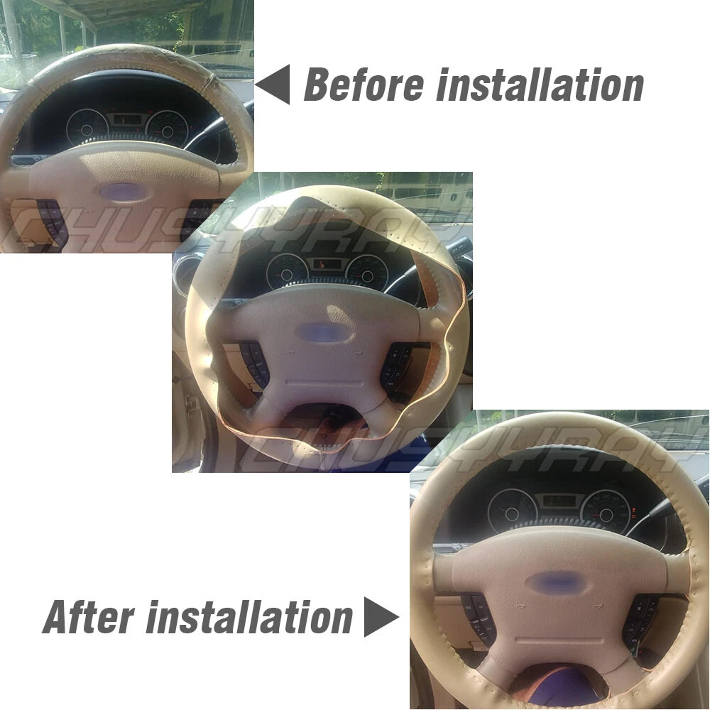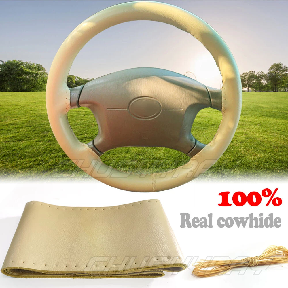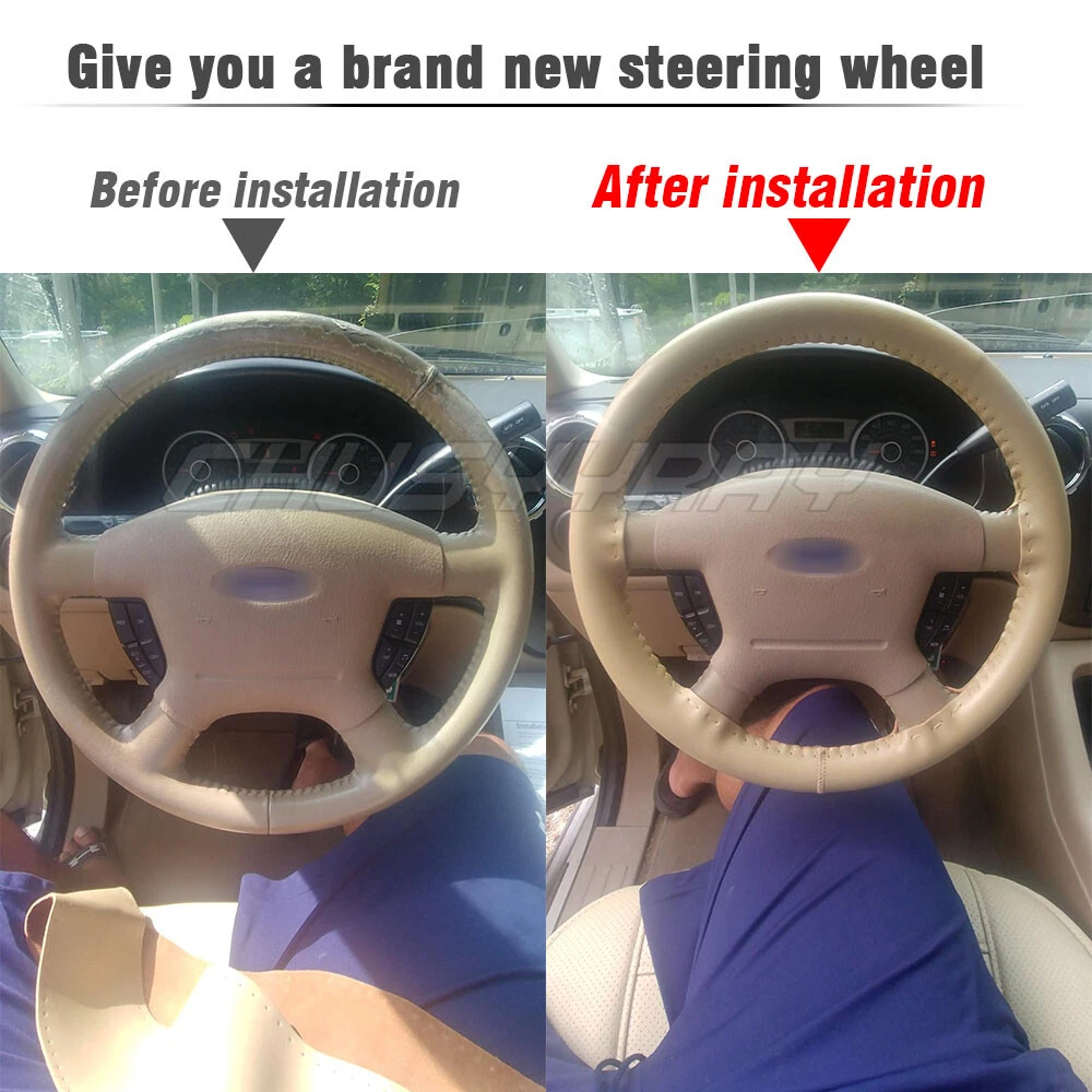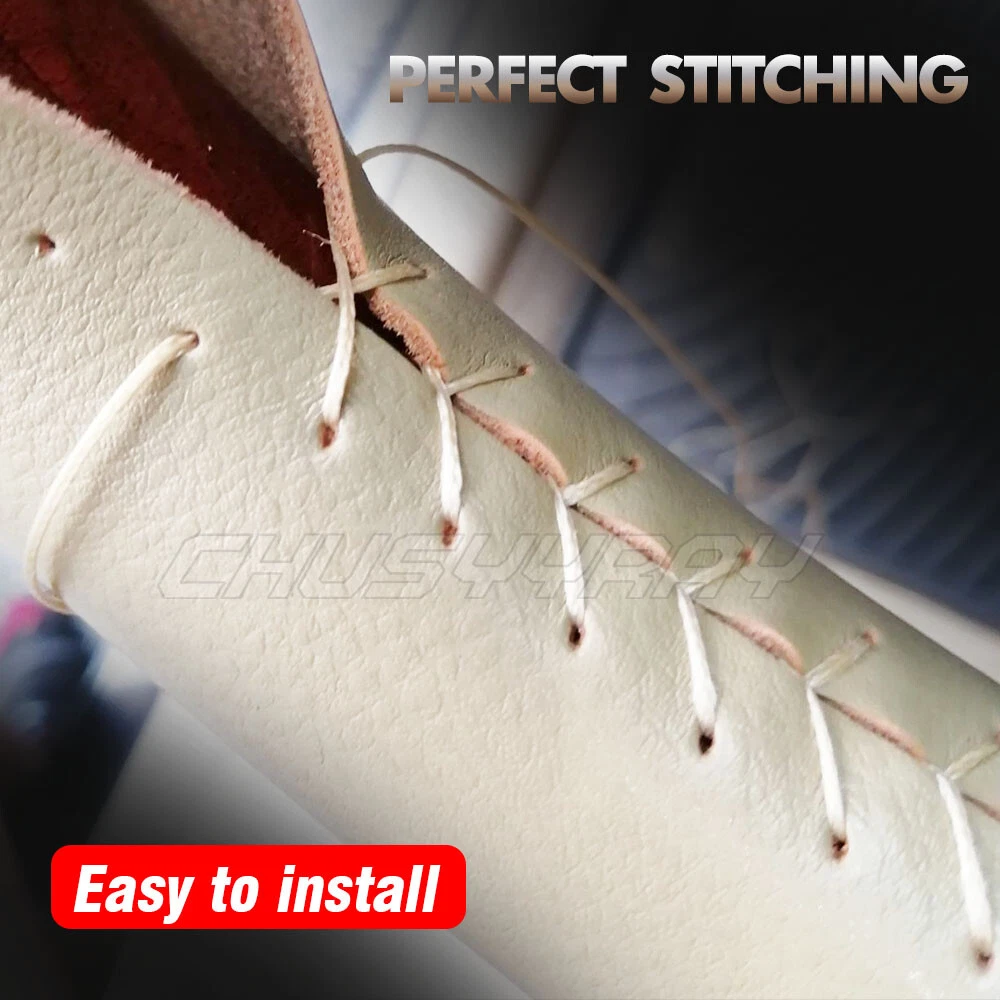 If the product is not suitable or there is a quality problem, please contact our customer service directly to solve the problem. We will give you a satisfactory solution. Brand New and Never been Used Color: Fashion Beige with Needle Elegance and Luxury Design, Fashion and Practical Combination Top Quality Soft Touch Leather, add Comfort, Safty and Protection for your Journey Ergonomic Design Provides Excellent Grip, Skidproof with Tyre Pattern and dotted Design Comfortable Hand Feel, massage your Palm to Relieve Drive Fatigue, Suitable for all Season Easy to Install Description: Steering Wheel Outer Diameter: 37-38cm(14.5"-15") cover size: 38cm(L) x 10.5cm(W) Compatible:Almost 90% car models with 37-38CM outside diameter steering wheel Item included: Steering wheel cover *1 Thread and needle tool set *1 Color: Beige Condition: 100% new (The picture and the actual product have some color difference, the actual color shall prevail in kind) Features: 1.Sewing it by yourself with thread and needle,enjoy DIY pleasure! 2.Provide extra comfortable feeling all round steering wheel. 3.Offer unique decoration for your car 4.No unpleasant smell. 5.No quarantine/customs problem. The package has: 1 leather steering wheel cover 2 needles 2 ties On Jan 23, 2025 at 00:49:42 PST, seller added the following information: