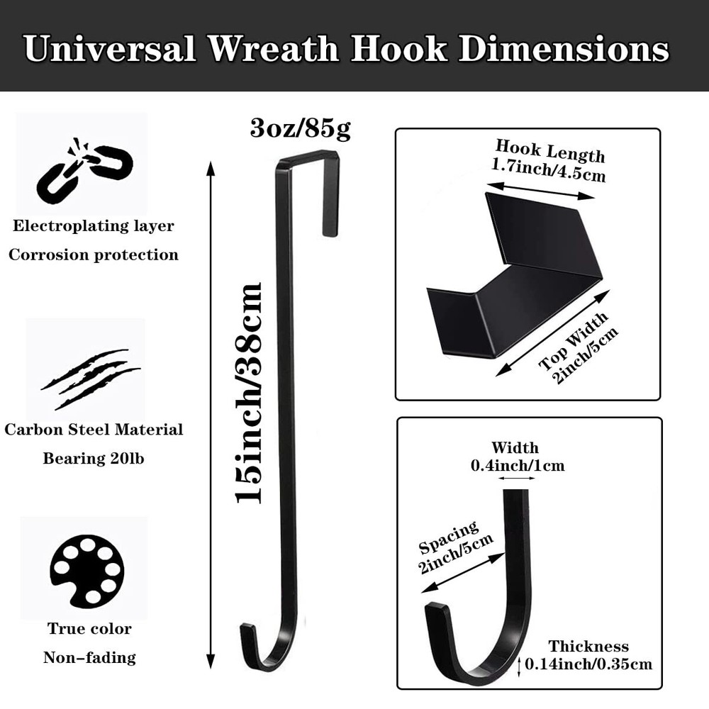 Wreath Hanger, 15" Wreath Hangers for Front Door, Indoor or Outdoor Over The Door Wreath Hook Hanger for Easter Spring Halloween Xmas Wreath Decorations, Steel Material, 20lb Load Bearing WREATH HANGER-HAPPY HOLIDAYS - If you're looking for a quality wreath hook to decorate your beautiful wreaths, you can't go wrong with this one, made of steel and can hold up to 20lb. EXCELLENT BRIGHT COLOR-The eye-catching black appearance makes this hook look very high-end. The advanced paint technology on the surface keeps the hook intact all year round. The black hook can be matched with any color of doors and garlands. VERY EASY to INSTALL-Some wreath hangers need hooks and fasteners to hang the wreath there, it may cause damage to the door after a long time, our wreath hanger just need to gently put it on the top of the door to install and use, the whole process will not exceed 3s SUITABLE for DOORS of ANY SIZE- The size of this garland hanger is 15*2*0.4in, the thickness is 0.14in (about the thickness of two dimes), and the weight is 3oz. It is light and convenient, suitable for doors of any size. PREMIUM SERVICE - HASSLE-FREE PURCHASE- You can use the wreath hanger for any festival, if you are not satisfied with it after receiving the package, our company will answer any of your questions online 24 hours a day,Have a wonderful day! HAPPY HOLIDAYS Steel Premium Wreath Hanger Christmas wreath hanger hooks black over door metal hooks practical clothes towel hanger hooks for Christmas front door decorations ADVANTAGE Made of high quality steel, will not corrode, durable, can bear up to 20lb The surface adopts advanced electroplating technology, bright color, high-end atmosphere, long-term black appearance, and can be matched with any color door frame Simple shape, easy to install, just put it on the door frame, the whole process will not take more than 3s Only 0.14in/0.35cm thick, you don't have to worry about the door getting stuck SPECIFICATION Material: Steel Length: 15*2*0.4in Weight: 3oz/82g Bearing: 20lb Colour: Black PACKAGE INCLUDES Garland hanger*1 EXCELLENT AFTER-SALES SERVICE The holidays have come, you don¡¯t need to worry about the unsatisfactory situation of receiving the product because of rush purchase, you can try it for one month after receiving the item, if there is any quality problem during the period, we support full refund and Osgow company provides online chat consultation service all day, welcome to visit SHIPPING Domestic Buyers - We have confidence in our products, but if you are not fully satisfied please contact us within 30 days of purchase and you will get full refund. - We ship within 3 business days of payment, usually sooner - We offer FREE shipping on all orders! - We only ship to the lower 48 states, no APO/FPO addresses or PO Boxes allowed International buyers – please note: Import duties, taxes, and charges aren't included in the item price or postage cost. These charges are the buyer's responsibility. - Please check with your country's customs office to determine what these additional costs will be prior to bidding or buying. * Order Cancellation Policy ** You can return a product for up to 30 days from the date you purchased it. 1. The seller reserves the right to cancel the special case only due to eBay cancellation fee. 2. The decision of seller is the final. 3. The seller will respond to the cancellation request within 2 business days. Please wait for the result of cancellation. 4. In case the cancellation is not completed by some reasons, the buyer can follow the options below to get the refund. 4.1 The buyer can reject the item when it arrives. 4.2 The buyer can send the item back to the seller within 30 days If the buyer receives item (USA Shipment ONLY). The seller will provide the FREE return label to the buyer when the buyer opens " Return Item" case on eBay by using the reason as "Change my mind" ONLY. 5. When buyer has placed the order. The order will be processed and completed by automatic warehouse system within 5 minutes. In case that buyer sends the cancellation request after 5 minutes of placing the order, the request will be rejected. **Sending direct message to cancel the order is not allowed for every case.* Return Policy For the return case - If buyer would like to return the items for refund or replacement, please CONTACT SELLER to receive the free return label from seller. The refund or replacement will be processed with the tracking number of return label which is provided by seller only. The other ways of return which are not approved by seller will not be processed for the refund or replacement.