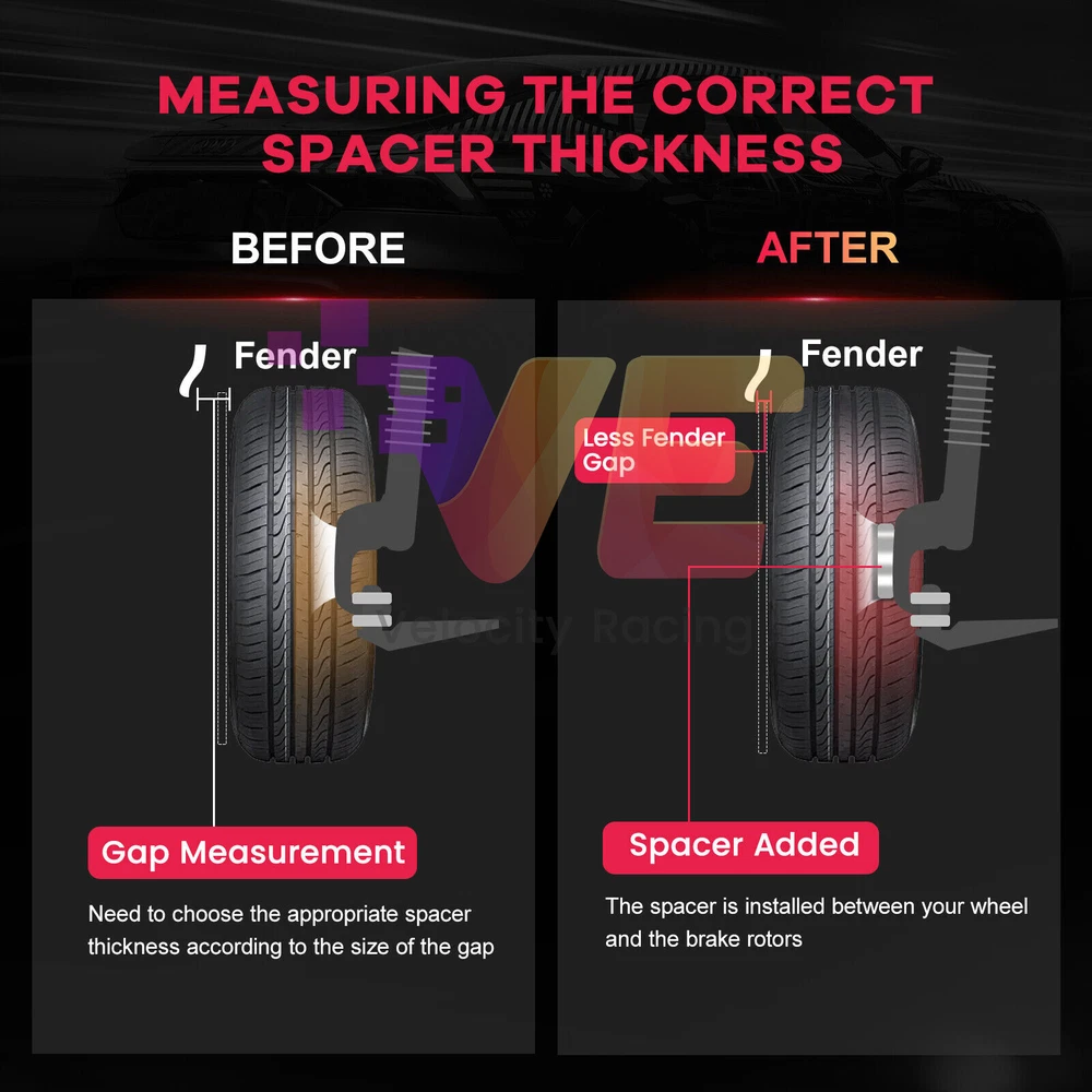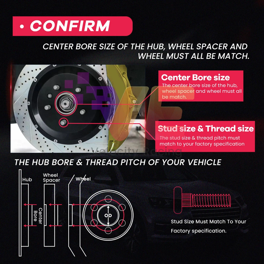 Spacer Thickness 15mm each side Quantity 2 Pieces Bolt Pattern 5x100 to 5x100 Center Bore 56.1mm Thread Pitch 12x1.25 Spacer Type Hub Centric This spacer kit also includes open-end lug nuts to ensure a secure attachment to your vehicle's original hubs.. Your Factory wheel studs may extend past the surface of the wheel spacers. In this case you will need to 1. Shorten the OEM studs. 2. The wheels must be designed with open areas (cavities) between the mounting holes. 3. Purchase shorter studs and install them in place of the factory studs.