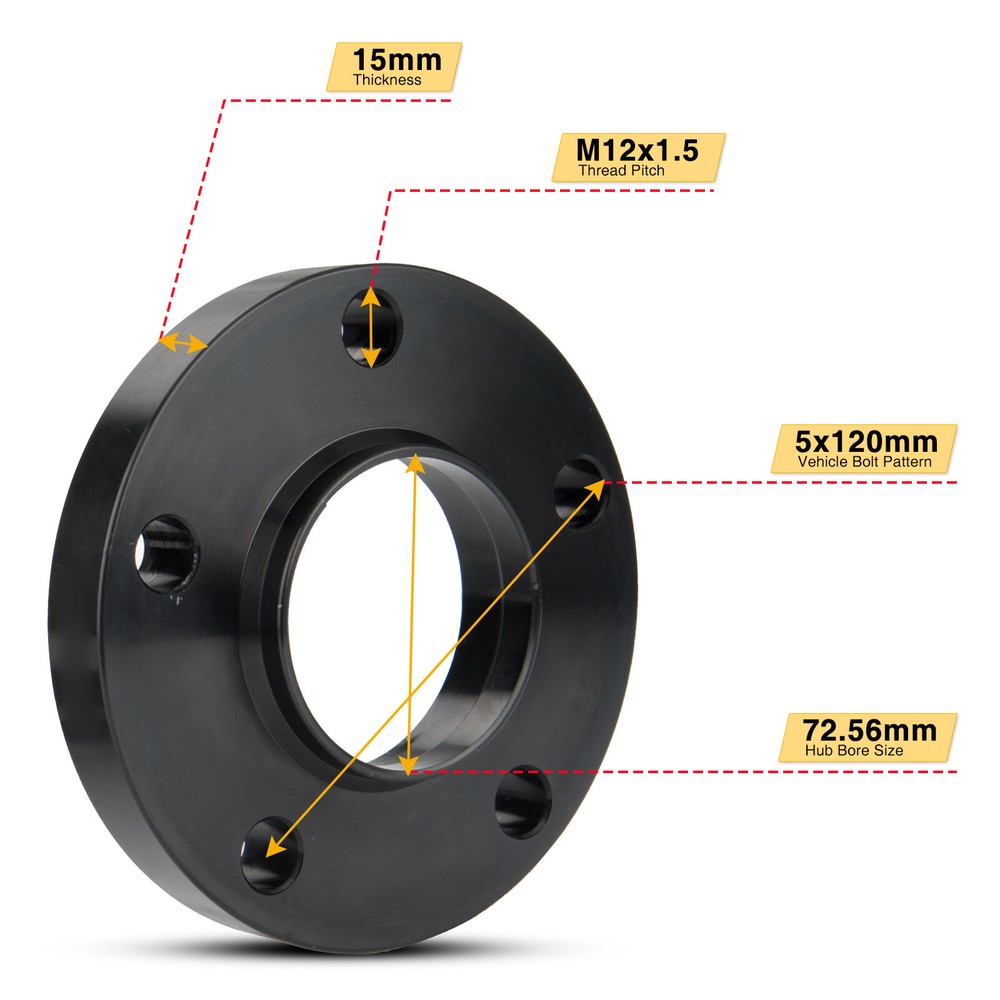 Benefit of wheel spacers: Imporve Better Handling and Increases the Traction,Solves the Adjustment Problems Our hub-centric design offers exceptional stability and safety, offer maximal protection during use Forged from 6061-T6 aircraft-grade aluminum,providing more aggressive and safe driving than casting wheel spacers 6061-T6 Aluminum for Maximum Hardening and Tensile Strength The design of hubcentric with lips more fit for the vehicle hub,reducing vibration at high speeds Good looking on your vehicle and move your wheels further out from the wheel hub allow for larger tire installation to the vehicle Features: Brand New Billet Aluminum Wheel Spacers / Adapters. Built to strict quality control standards. Mainly used to give your vehicle an agressive stance, and will help with any clearance issues (if present). Reduce side roll-over due to an increase in resistance,widern tire spacing and provide better traction. Forged, heat-treated and hardened ISO/DIN 10.9 (SAE Grade 8) wheel bolts deliver strength and corrosion resistance. Direct replacements 100% factory tested. Specifications: Vehicle bolt pattern: 5x120 mm Wheel bolt pattern:5x120 mm Thickness:: 15mm Hub/Center Bore: 72.56mm Thread Pitch: M12*1.5 Fitment: 1 SERIES (E82, E88) - 128i, 135i, M1, 1M COUPE 3 SERIES (E36) - 318i, 318is, 318ti, 325i, 325is, 328i, 328is, M3/ SERIES (E30) - M3 3 SERIES (E46) 323ci, 323i, 325ci, 325i, 325xi, 328ci, 328i, 330i, 330xi, M3 3 SERIES (E90, E91, E92, E93) - 325i, 325xi, 328i, 328xI, 330i, 330xI, 335d, 335i, 335ix, 335xi, M3 5 SERIES (E28, E34) - 525i, 525xi, 528e, 530i, 535i, 535is, 540i, M5 5 SERIES (E60, E61 2004-2010) - 525i, 525xi, 528i, 530i, 535i, 535xi, 545i, 550i, M5 6 SERIES (E24, E63, E64) - 633I, 635I, 645CI, 650I, M6 7 SERIES (E23, E32, W38) - 730i, 730il, 733i, 735i, 735il, 740i, 740il, 750i, 750il 8 SERIES (E31) - 840ci, 840i, 840ci, 850i Package include: 4 Pcs Wheel Spacers Adapters & 20pcs BOLTS Tips & Steps 1. Before purchasing, please measure the hub size and flange thickness you need 2. Detailed installation instructions •Clean the rust stains on the back of the hub and the shaft head before installation to ensure the hub surface is smooth •Set the torque range of the torque wrench •Make sure the brake disc does not rotate when using a torque wrench, otherwise the pad installation may become unstable. •After installation, test whether the wheel hub steering will cause friction with the wheel eyebrow. If friction occurs, it means that the flange of this thickness is not suitable for your vehicle. Please replace it in time. •Regularly check the condition of the flange to see if it is loose 3. Risk warning: • Long-term use of the flange installed on the front wheel may cause oil leakage in the steering gear and damage to the wheel bearings and shaft heads. •Failure to install according to the instructions may cause the gasket to become unstable or even break during driving. 4. For some gaskets with a thickness less than 20mm, the original vehicle bolts cannot be used, which will cause incompatibility, and extended bolts must be used. Payment Shipping Return Policy Contact Us Important Points 1) we accepts all major credit cards via PayPal: MasterCard, Visa, American Express and Discover. 2) We will only ship to the confirmed PayPal shipping address given with the payment. Please make sure your PayPal and eBay address is correct. If not, please correct it before payment. Thank you. 3) If you want to ship to another address, please change your PayPal shipping address before you make payment. 4) To avoid initiating an unpaid item claim, please pay within 7 days. 5) Custom duties, taxes, or charges are not included in the cost you pay to us. We only ship this item to United States ! 1. We ship to your eBay address. Each package will be shipped by UPS or Fedex with tracking number. 2. Ship within 1 business day once payment completed. Orders placed on weekend will be shipped within 3 days. 4. Seriously promise: Refund or resend will be offered if item still not arrive in 7-10 business days. Just send us an email ,we will give you a satisfied solution as soon as possible. If you send us an e-mail, it will be answered within 48 hours during our working hours. Please feel free to contact us if you have any questions: Dear my friend,we appreciate your support.And our goal is service you well and give you a pleasant shopping time in our store. ✅Dear customer, when you want to return or exchange goods (Please contact us first, instead of directly initiating a dispute) 1: Contact the seller first 2: Send pictures: outer packaging&scanned labels&item itself&with complete accessories, etc necessary condition Rule A: The original packaging of the item is in an unused state. Rule B: The outer packaging must not have any damage. 3: Obtain return label 4: Delivered Projects - Payment Repayment ✅A 15% restocking and shelving fee will be charged for returns or exchanges that are not caused by the seller and are in good condition. Exchange will not charge restocking fees or shipping fees due to transportation errors ✅Priority In case of the following reasons, the freight will be borne by the buyer 1: Unexpected order 2: Find a better price 3: Change your mind 4: Buy more items/make mistakes/misread model information ✅Please note Missing accessories/quality issues/transportation damage, etc Please contact us first to obtain a good solution, rather than directly opening a return dispute. Thank you very much for your understanding. I hope we have a pleasant cooperation! Contact us if you have any question, Give us a chance to serve you, negative feedback could not solve anything, communication Please! ❎ (NO) Three stars is LOW star, NO 1,2,3 stars PLEASE! ✅(YES) Please give us Five-star! Have Question or Problem?? Step 1: Contact seller Step 2: Select the 1st topic: I have a question about using my item or I want to send the seller a message. NO others please! Step 3: Describe 