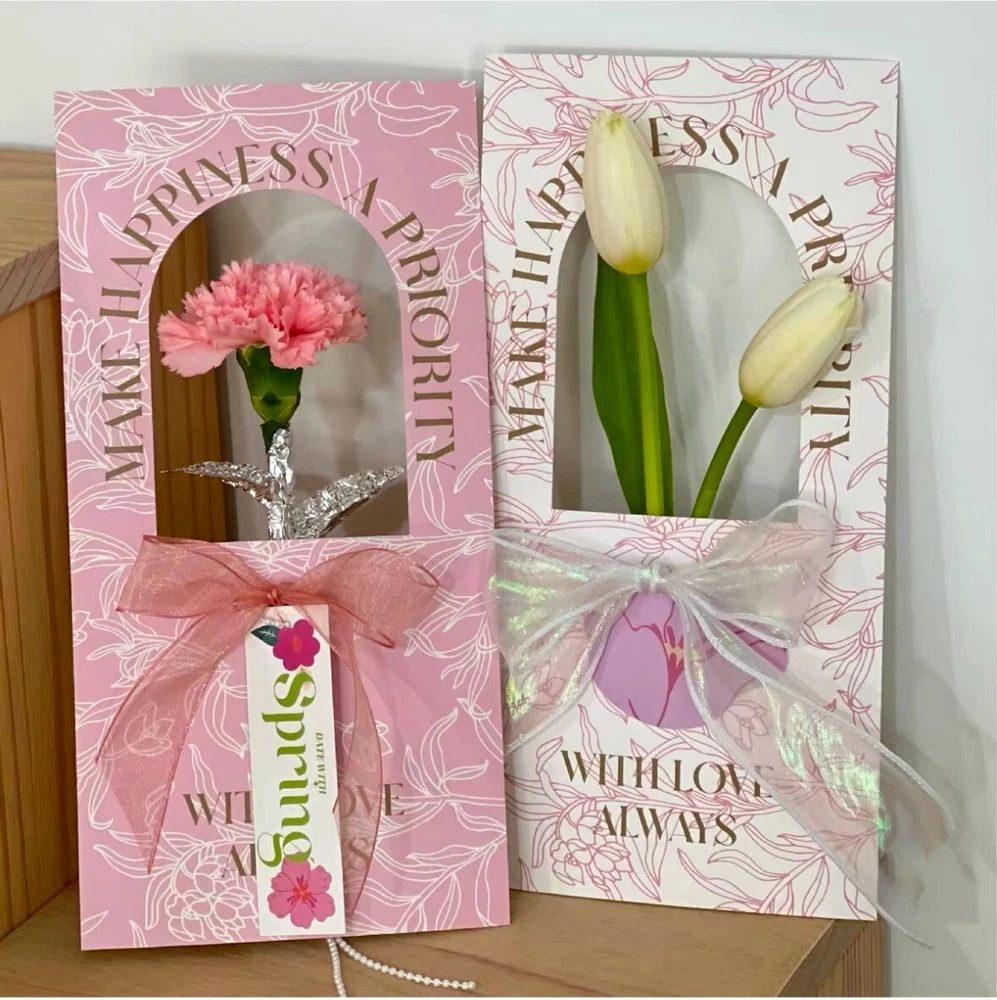 Elegant Handheld Single Flower Box with Premium Thick Paper Card - Perfect for Holiday Bouquets & Floral Art, Fresh Flower Packaging Essentials