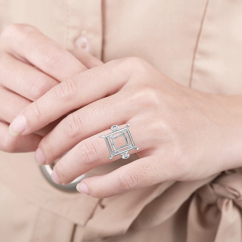 Absolutely stunning ring! The elegant emerald/radiant/octagon design in sterling silver with white gold plating gives it a luxurious feel. The prong setting is secure and well-crafted, while the generous 15x13mm size makes a bold statement. Perfect for adding your own center stone or wearing as is—great quality for the price! Love the substantial weight and flawless finish. Highly recommend!