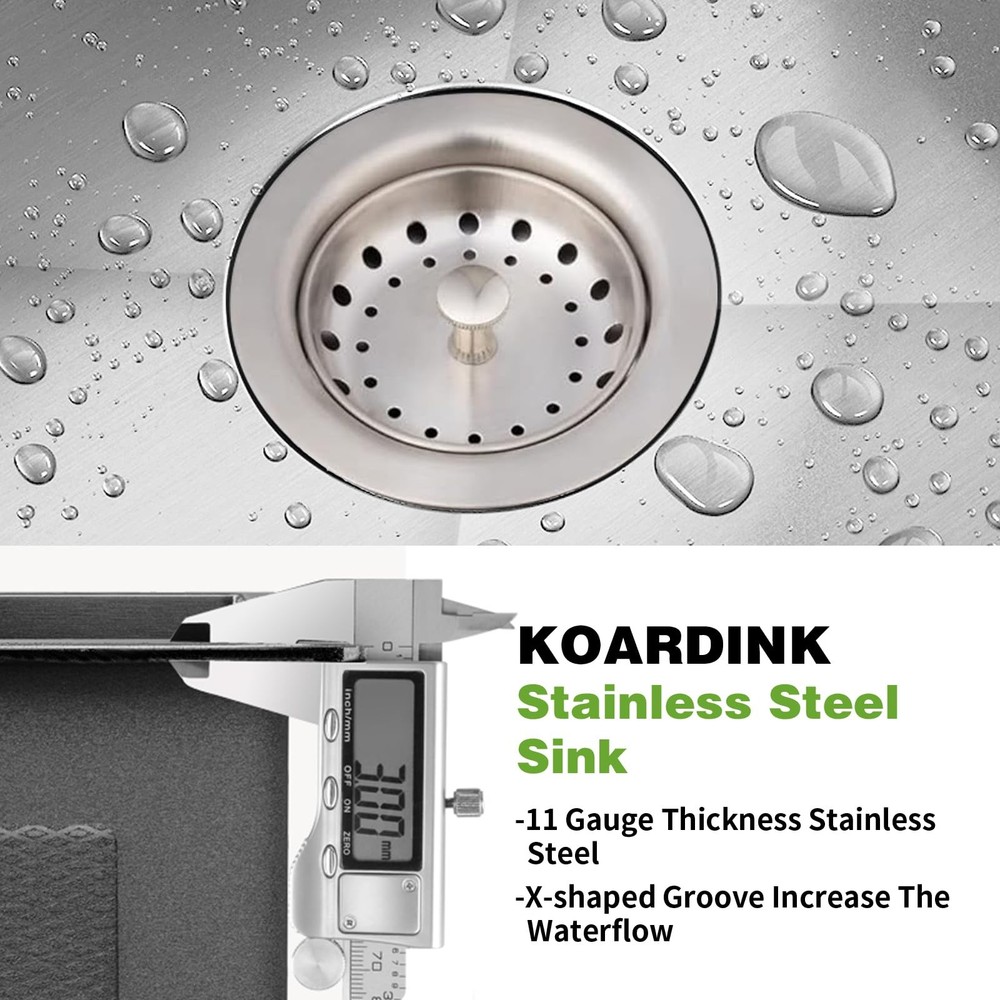 "Stainless steel 15"" x 17"" kitchen and bar sink adds a modern and stylish touch to your kitchen and bar. The original color adds sophistication and elegance, while the integrated accessories provide a sleek and seamless look Stainless steel kitchen sink can withstand high temperatures without warping or discoloration,suitable for these who handle hot pans and boiling water frequently. Drop in kitchen sink is resists stains less likely to show water spots or mineral deposits, making it easier to maintain its shine. Routine cleaning with mild soap and water is typically sufficient to keep the sink looking clean. small kitchen sink,bar sink, drop in kitchen sink,kitchen & bar sink,wet bar sink,single bowl kitchen sinks,stainless steel kitchen sink,top mount kitchen sink,15 Kitchen Sink,17 Kitchen Sink Single Bowl Kitchen Sink Combo: Including 11Gauge SS 15in kitchen sink, , silicon mat and drain assembly for bar sink. Stylish appearance and practical versatility make topmount kitchen sink combo an excellent investment for modern kitchens and home bars. Single bowl sink can meet your needs while offering practicality and ease of use. Versatile Compatibility: 15x17 in kitchen sink can work well with various countertop materials, such as granite, quartz, or marble. Stainless steel kitchen & bar sink complement various kitchen styles and designs. Whether you have a contemporary, traditional, modern kitchen or bar, a stainless steel sink can seamlessly integrate into your aesthetic. Stainless Steel Sink: With exterior size-15"x17"x9", interior size 13"x13"x9", topmount kitchen&bar sink seamlessly transition between kitchen and bar environments, catering to different needs in both settings. Drop in kitchen&bar sink is practical choice for versatile use across kitchen and wet bar applications. Fast Drainage Design: X-groove located on the bottom surface of the drop in kitchen sink is design to guide the water towards the drain, minimizing water stagnation and reducing the chances of water accumulation. X-groove and US standard drain assembly of kitchen also reduce the amount of time spent waiting for the sink to empty. Surface Technology: Brushed finishing and nano technology make topmount kitchen sink resistant to scratches and temperature, repeling water and oil stain makes it easier to clean. Anti-condensation coating prevent water droplets forming. Sound dampening pad reduce noise caused by running water or dishwashing.