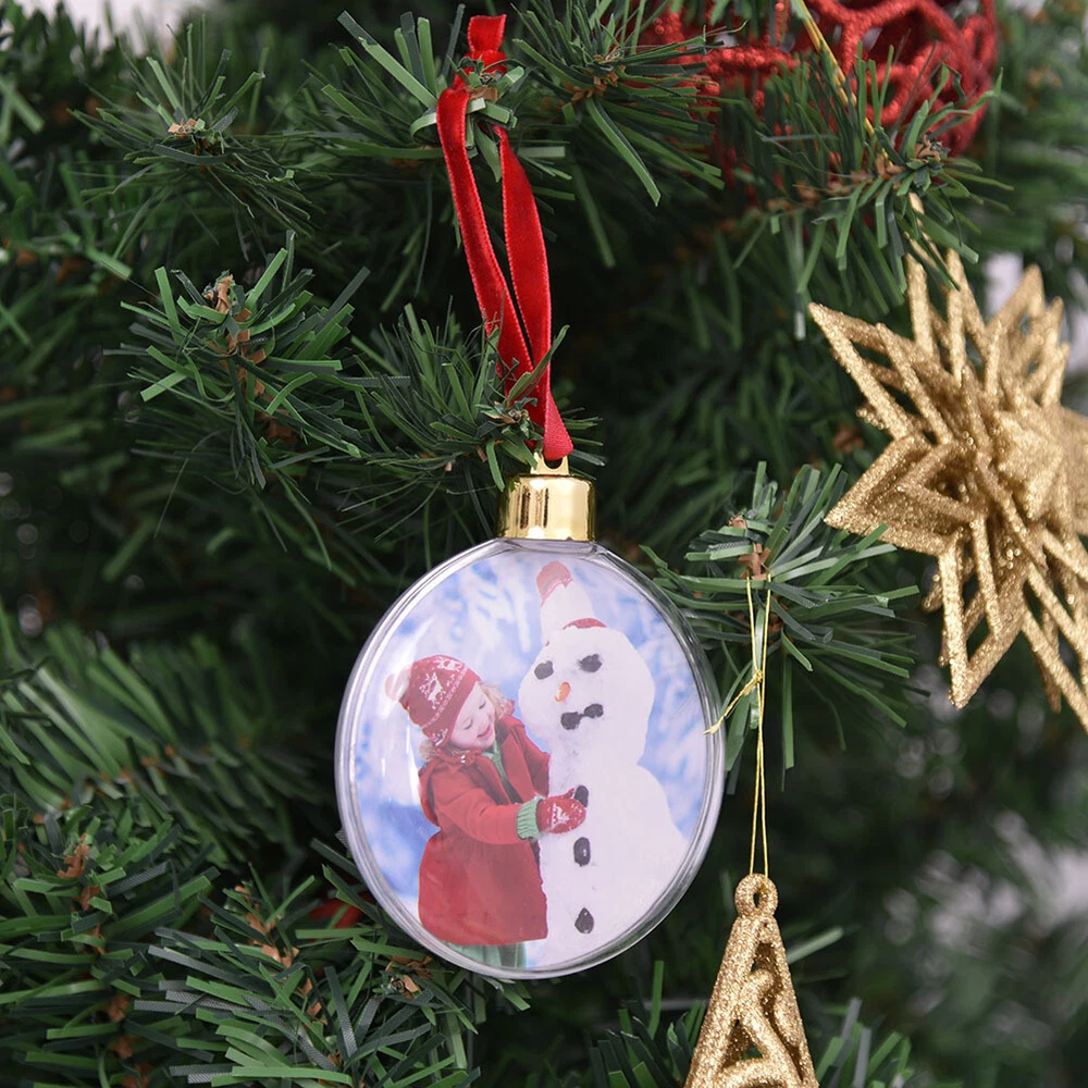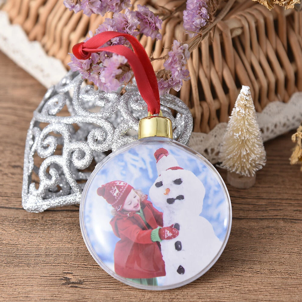 1-5xChristmas Ball Photo Ball Ornaments With Red Lanyard Photo Ornament Hangable