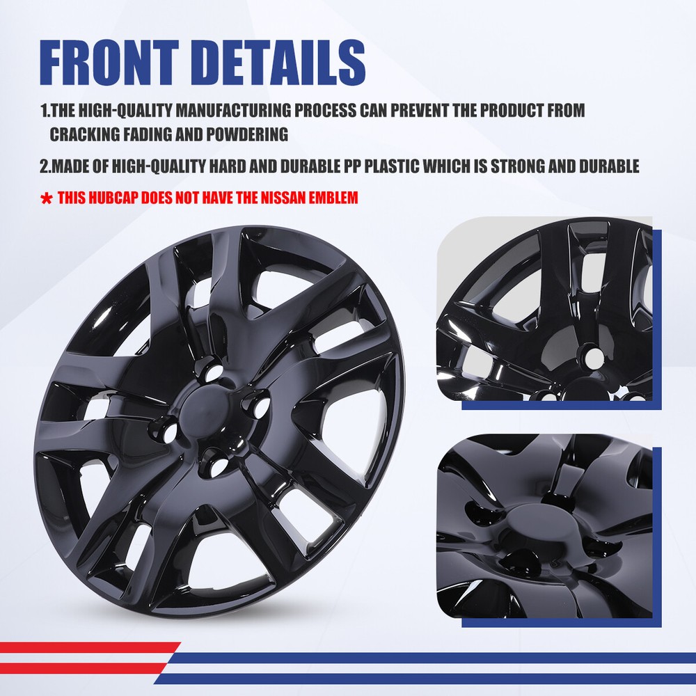 Head Lights Tail Lights Fog Lights Turn Signal Bumper Fender Flare Inner Fender Hubcaps Refrigerator Other Items for sale Head Lights Tail Lights Fog Lights Turn Signal Bumper Fender Flare Inner Fender Liners Portable Refrigerator 16" 4pcs Black Wheel Covers Full Rim Push On HubCaps For 2007-2012 Nissan Sentra Compatibility: Fit For 2014-2020 Nissan Rogue 16" Wheel Specifications: High quality manufacturing process can prevent product cracking, fading and powdering. Made of high-quality flexible ABS & PC material, sturdy and durable, with adjustable buckle design. Wheel Rim Cover has a graded fixing ring and as long as the wheel hub cover is installed properly, it will not fall off during driving. Check the wheel rim size (diameter) of the tire and check the number after the letter "r" . Only suitable for iron wheels, not aluminum alloy wheels! Please check tire size before purchase! Material: ABS & PC Rim size: 16 inches Color: Black Packaging included: 1 set of 4 wheel hub covers Payment Shipping Return About us Contact us Payment Appreciated for the prompt payment, Contact us if bid by mistake, system open unpaid item automatically. Payment must be complete within 3 days from the date you purchase or after the end of auction. Items unpaid within 3 days of the auction end will be forfeited. We reserve the right of cancel the order and re-selling the items. Shipping All shipment will ship by UPS or USPS . All items will be ship within 1 working days , and we will ship out all orders as soon as possible after payment verified, please allow up to 1-4 business days for delivery. CANADA & International customers please note: your government might charge a duty tax (brokerage fees). We do not responsible for any custom duty or import tax. Why Choose the US Stock? 1. Us Local Shipping, No Extra Customs Cost to the US. 2. Fast Delivery: 1-4 Working days Delivery. 3. Best After-Sales Service!!! Return The buyer is responsible for all return shipping including a result of customer error or defective item. 1) If you received an incorrect, damaged, defective, or item not as described, contact us for full refund or replacement on our cost. 2) If you want to return the item, please contact us within 60 days after package received. Return products must also be in its original condition: including box, packaging and all other accessories. About us We are the best auto parts, we have been pursuing excellence, continuous exploration as the slogan, let customer satisfaction is our purpose! We adhere to the United States local delivery, one year warranty! Welcome! Contact us How Should You Contact us? Please Read The Item Description And See if The item Fits Your Vehicle Exactly. If You Found Any questions, Feel Free to email us by "Ask a question" Our Office Hours Are Monday - Friday 8:00am - 5:00pm PST / 11:00am - 8:000pm ET, We Do Not Answer Any E-Mails On Weekend, And We Will Reply All E-Mails In The Order It Was Receive. All E-Mail Take Us Around 24 Hours To Respond To Any E-Mail. We Are Close During The Weekends And We Do Not Answer Any E-Mails During That Time.