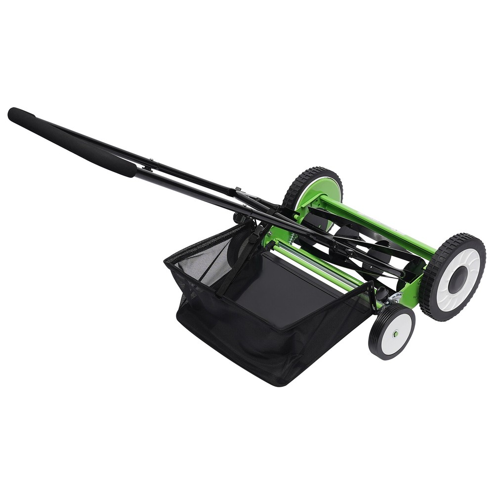 16" Walk Behind Manual Reel Mower Adjustable 5-Blade Hand Push Lawn Catcher Yard Description Our 16-inch 5-blade cordless manual reel lawn mower is an efficient, easy-to-use, and environmentally friendly agricultural machine. The 16-inch cutting width is designed to minimize the amount of manual reel mowing while ensuring weeding results. It also has excellent reliability and durability, so you do not have to worry about the use and maintenance of the problem. Key Features 🍃 High-quality Material: Five manganese steel blades are heat-treated for high hardness, high sharpness, high wear resistance , and long service life. 🍃 Low Carbon Environmental Protection : The non-powered lawn mower ( without gasoline , without charging) makes a better combination of life and sports. It is not only good for exercise but also more friendly to the environment . 🍃 Easy to Care: The removable grass collection basket prevents grass from scattering on the lawn when in use, thus making lawn care easier. 🍃 Easy to Use: The non-slip sponge handle makes the grip more comfortable and less slippery, thus making it easier to use. The four-wheel design is easy to push, so even children can easily operate it. 🍃 Easy to Store: The detachable design makes it easy to store. When you need to relocate, you can save a lot of storage space by simply disassembling it into smaller parts. 🍃 Large Working Range: The 16 inches mowing width can provide you with a wide working range, thus can effectively improve efficiency. 🍃 Fine Packaging: Plastic bags, sponge foam shafts, and a rigid cardboard box make the product safe from wear and tear during transportation so that you can receive the intact products to the greatest extent. 🍃 Adjustable Height: The 9-position adjustable mowing height (1.34-2.52 inches) allows you to make a fine or coarse cut according to the height of the weeds to meet your various needs. Details ⭐ Anti-slip Wheels: The 5.9 inches diameter main drive wheels are designed with irregular deep grain, which effectively increases the friction between the wheels and the lawn and effectively reduces the probability of wheel slippage. ⭐ Pipe Fixing Nuts: Six pipe fixing nuts make the connection of the pipe tight and not easy to loosen, thus guaranteeing safe and effective work. And the wing nuts can be screwed directly by hand without tools. ⭐ Thickened U-shaped Pipe: The handle equipped with thickened U-shaped pipe is more sturdy and durable, thus providing you with higher quality assurance. Application This product is suitable for villa yards, park greening, factory greening, meadow forest garden, and other kinds of lawns. It can be applied to the mowing area of 0-5381.95 square feet. Specification Material: Sponge, Manganese Steel Color: Green Process: Heat Treatment Assembly Required: Yes Operation Mode: Manual Mowing Height Adjustment: 9 Positions Mowing Height Range: 34-64mm/1.34-2.52in Cutting Width: 40.64cm/16in Mowing Area: 0-500㎡/0-5381.95ft 2 Gross Weight: 12kg/ 26.46 lbs Net Weight: 11kg/ 24.25 lbs Product Size: 56.5*45*81 cm/ 22.24*17.71*31.88 in Grass Collection Basket Size: 44.5*32*16cm/17.51*12.59*6.29in Handle Size (L*W): 115*35.5cm/45.28*13.97in Large Wheel Diameter: 25cm/9.84in Small Wheel Diameter: 15cm/5.90in Package Size: 59*47*26cm/ 23.23*18.5*10.24 in Package Included 1 * 16-Inch 5-Blade Cordless Manual Reel Lawn Mower 1 * English Manual All Accessories for Installation Notes Please read the operating manual completely before use. And pay particular attention to the safety instructions included. Please allow the slight color difference caused by the shooting light and the 1-3 cm error due to manual measurement, and make sure you do not mind before ordering. Payment Delivery details Terms of sales About us Contact us Payment We accept ebay payment 。 Fees such as import duties, taxes are not included in the item price or shipping costs. These charges are the buyer's responsibility. Delivery details Shipping: 2-9 working days to: USA Terms of sales We maintain high standards of excellence and strive for hundred percent customer satisfaction. Feedback is very important to us. We hope that you contact us immediately before you give neutral or negative feedback, so that we can address your concerns. It is impossible to address issues if we do not know about them! About us Your satis faction is our ultimate goal. We work hard to earn your trust and future business. Our certified technicians have tested each item before shipping. The unit comes with 1 year limited warranty on all manufacturing defects. a) If you receive a defective item, you may return it or ask for a discount. Please contact us within 14 days after you receive the package. b) What you returned must be intact and in its original packaging as re? u. Customer is responsible for shipping costs of the returned item. c) We will cover the cost of shipping back t with the shipping rate indicated in the registration page. We will send you a new unit or refund the full payment you paid. Thank you. Contact us Business Hour Business Hour: Monday To Friday: 8:30 AM to 5:00 PM (Beijing China time) Due to time zones, our reply to your questions may not be immediately. But within above working time, we will reply your email within 24 hours. If it's non-workdays, please kindly be patient and wait till Monday. Please contact us with ebay message. Please feel free to contact us if you have any questions. Monday To Friday: 8:30 AM to 5:00 PM (Beijing China time) Due to time zones, our reply to your questions may not be immediately. But within above working time, we will reply your email within 24 hours. If it's non-workdays, please kindly be patient and wait till Monday. Please contact us with ebay message. Please feel free to contact us if you have any questions. On Mar 2, 2025 at 23:07:29 PST, seller added the following information: