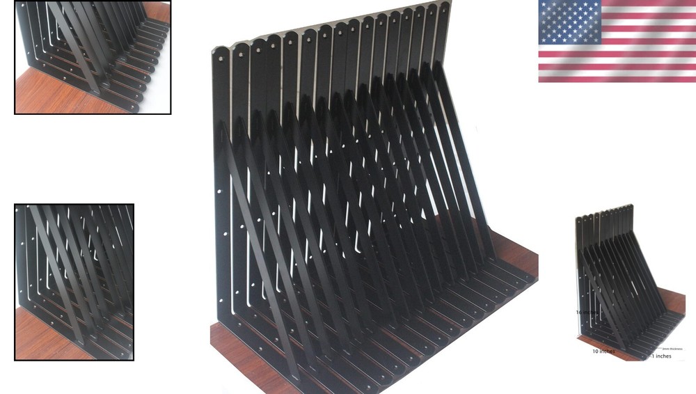Size: 16''x10'' UPC: Does not apply Included Components: Bag Additional Parts Required: No Material: Steel, Mild Steel Finish: Powder Coated Item Height: Heavy Duty Shelf Brackets Mounting: Wall Mounted Set Includes: Shelf Brackets, Screws Item Weight: 19.29 lb Number of Shelves: More Than 6 Brand: Unbranded Finish Type: Powder Coated Department: Adults Color: Black Personalized: No Shape: Rectangle Features: Heavy Duty, Corrosion Resistant, Rust Resistant, Durable, Easy to Install Packaging: Bag Item Depth: 16 Inches Type: Shelf Brackets Suitable For: Audio Equipment Batteries Required?: No gtin13: Does not apply Mounting Type: Wall Mount Maximum Weight Capacity: 240 lb Assembly Required: Yes Item Width: Heavy Duty Shelf Brackets Required Tools: No Tools Required, Basic DIY Tools Item Dimensions L X W X H: 16 X 1 X 10 Inches Item Length: Heavy Duty Shelf Brackets Style: Rustic Number of Items in Set: 16 Product Dimensions: 16 X 1 X 10 Inches Maximum Weight per Shelf: 240 lb