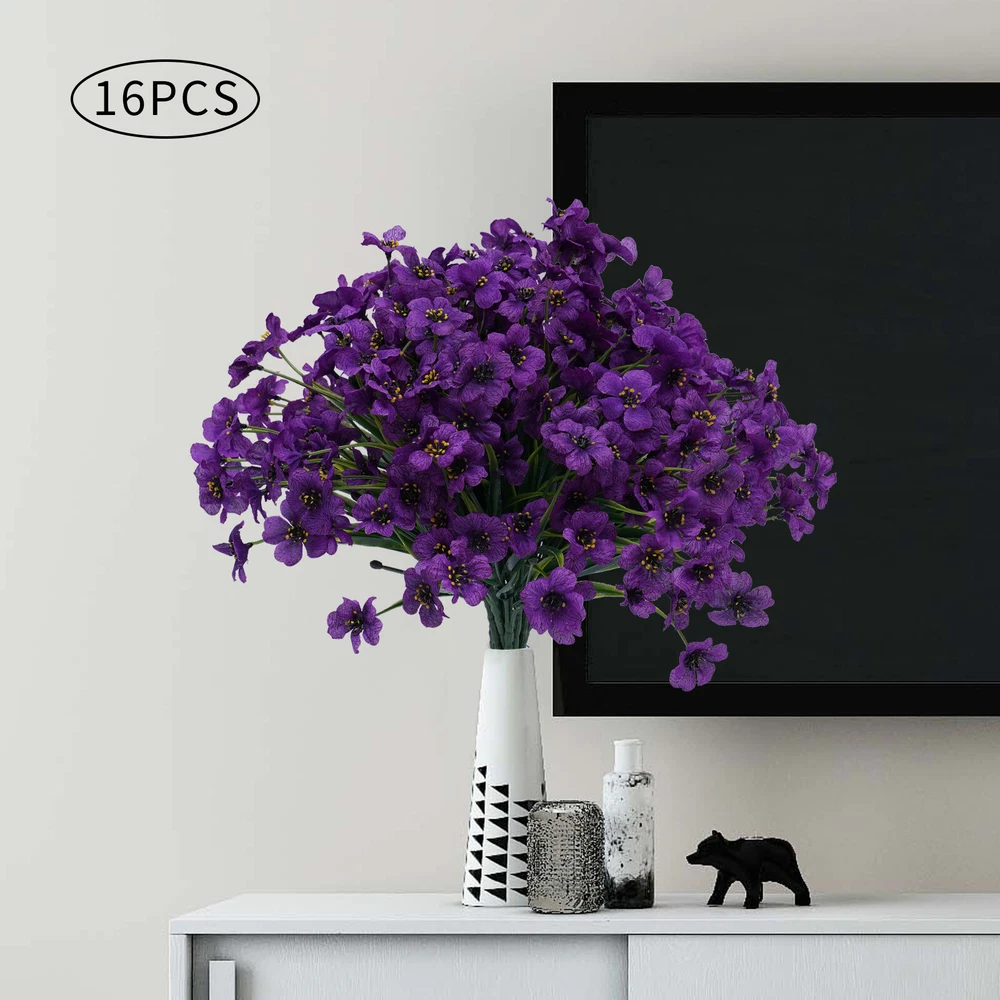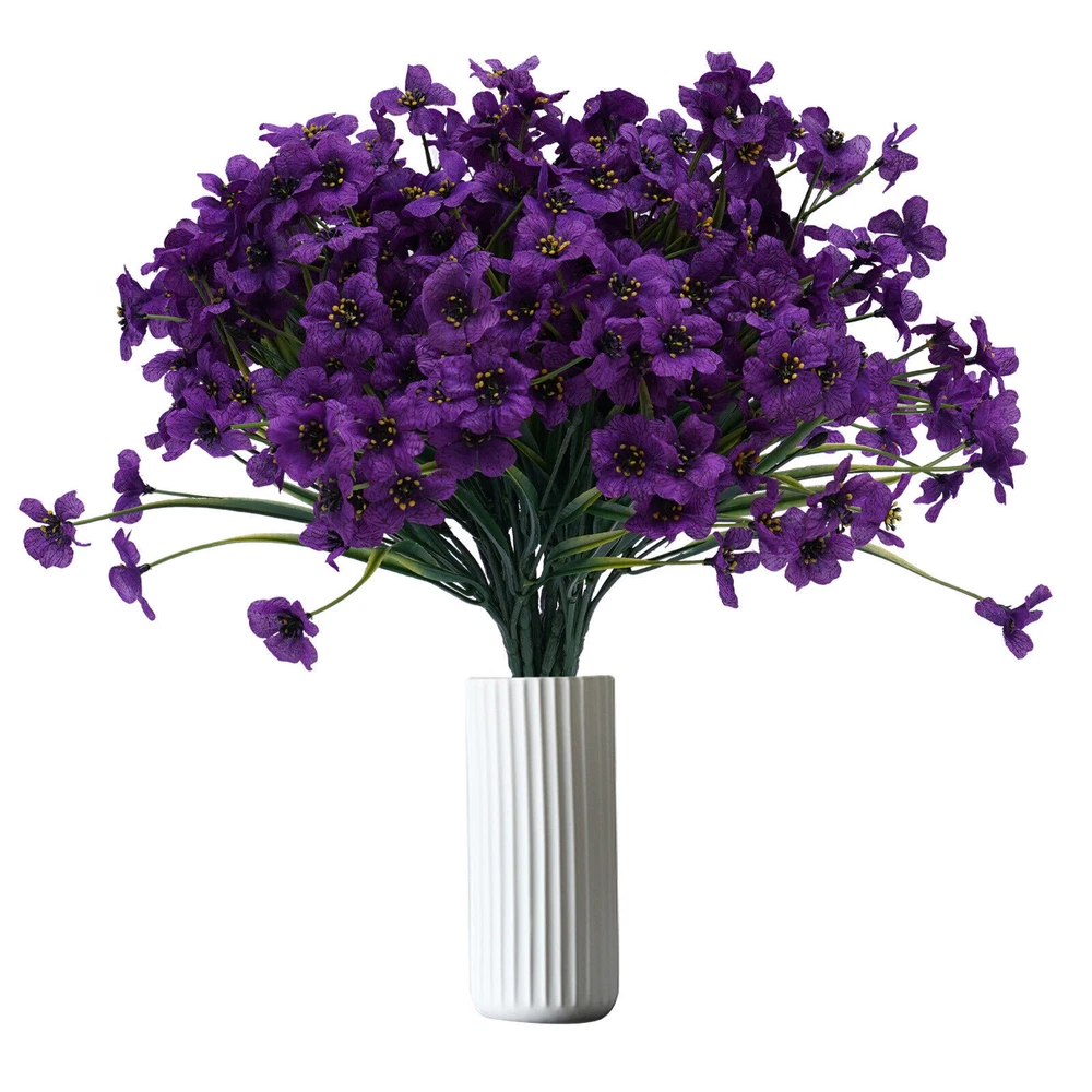 Specification Material: Silk Fabric, Plastic Color: Purple Number of Pieces: 16 Specific Uses For Product: Party Decor, Wedding Decor, Home Decor Gross Weight: 0.32kg/0.7lbs Package Size: 25x40x8cm/9.84x15.74x3.14in Single Plant Height: 32cm/12.6in Package Included 16x Artificial Flowers Have a nice day~ Description If you want to add a little vibrancy to your living room or balcony, then this realistic, beautiful, and pure artificial flower will be a good choice for you. Its free stretching posture and irregular texture feel make it realistic and beautiful. Whether it's a romantic wedding or a warm family gathering, it will create a beautiful and pleasant atmosphere for you. Specification Material: Silk Fabric, Plastic Color: Purple Number of Pieces: 16 Specific Uses For Product: Party Decor, Wedding Decor, Home Decor Gross Weight: 0.32kg/0.7lbs Package Size: 25x40x8cm/9.84x15.74x3.14in Single Plant Height: 32cm/12.6in Package Included 16x Artificial Flowers Key Features Realistic and Beautiful : The artificial flower's bright green textured branches show the same vitality as real flowers. The purple petals are dynamic and natural, bringing you a happy mood. High-quality Materials : Artificial flowers are made of high-quality silk fabric and plastic, which is very strong, and not easily deformed. The soft silk fabric gives you a comfortable touch. Romantic Decorations : Fresh and natural artificial flowers present a free stretching posture. Beautiful and romantic artificial flowers add vitality and greenery to your bedroom, kitchen, and living room. Hair Accessories : Realistic and beautiful artificial flowers are ideal for hair accessories. Purple flowers and unique braids can create the look of a flower fairy, which is great for parties or photo shoots. Wedding Decorations : Purple artificial flowers represent romance and passion, which makes them great for wedding decorations or making bouquets. Romantic and beautiful artificial flowers give a warm and romantic atmosphere to a wedding. Easy to Maintain : Compared to real flowers, artificial flowers do not need to be watered and trimmed. If they get dirty, you just need to rinse them with water and dry them naturally, which saves a lot of time and effort. DIY Fun : Artificial flowers are great for pairing with large flowers like roses, sunflowers, and lilies to create layered, colorful bouquets. This not only allows you to reap the benefits of a beautiful bouquet but also to experience the joy of floral art. Non-allergenic : Compared to flowers, artificial flowers are safer and more harmless, avoiding possible allergies caused by pollen, which allows everyone to experience the beauty of flowers. Details Detachable Flower Heads : The removable flower heads are more convenient to decorate according to demand. Realistic Leaves : The leaves show a floating form and natural green color to make them look more realistic and vivid. Realistic Petals : The petals are made of soft silk fabric, which makes the petals more realistic and vivid. Application These artificial flowers are very suitable for daily home garden decoration, birthdays, holidays, weddings, memorial places, DIY projects, etc. Notes 1. It May occur during transportation, flowers and leaves fall off, and other common phenomena. You can insert the flowers and leaves. You can also fix them with hot melt adhesive. 2. Please do not expose the flowers to sunlight for a long time, the color will fade. 3. You can wash it with water, and then just wipe it with a rag. Blow dry with a low-temperature hair dryer. 4. Please allow the slight color difference caused by the shooting light and 1-3cm error due to manual measurement. Please make sure you do not mind before you order. Payment Delivery details Terms of sales About us Contact us Payment We accept ebay payment 。 Fees such as import duties, taxes are not included in the item price or shipping costs. These charges are the buyer's responsibility. Delivery details Shipping: 2-9 working days to: USA Terms of sales We maintain high standards of excellence and strive for hundred percent customer satisfaction. Feedback is very important to us. We hope that you contact us immediately before you give neutral or negative feedback, so that we can address your concerns. It is impossible to address issues if we do not know about them! About us Your satis faction is our ultimate goal. We work hard to earn your trust and future business. Our certified technicians have tested each item before shipping. The unit comes with 1 year limited warranty on all manufacturing defects. a) If you receive a defective item, you may return it or ask for a discount. Please contact us within 14 days after you receive the package. b) What you returned must be intact and in its original packaging as re? u. Customer is responsible for shipping costs of the returned item. c) We will cover the cost of shipping back t with the shipping rate indicated in the registration page. We will send you a new unit or refund the full payment you paid. Thank you. Contact us Business Hour Business Hour: Monday To Friday: 8:30 AM to 5:00 PM (Beijing China time) Due to time zones, our reply to your questions may not be immediately. But within above working time, we will reply your email within 24 hours. If it's non-workdays, please kindly be patient and wait till Monday. Please contact us with ebay message. Please feel free to contact us if you have any questions. Monday To Friday: 8:30 AM to 5:00 PM (Beijing China time) Due to time zones, our reply to your questions may not be immediately. But within above working time, we will reply your email within 24 hours. If it's non-workdays, please kindly be patient and wait till Monday. Please contact us with ebay message. Please feel free to contact us if you have any questions. On Jan 6, 2025 at 18:28:15 PST, seller added the following information: