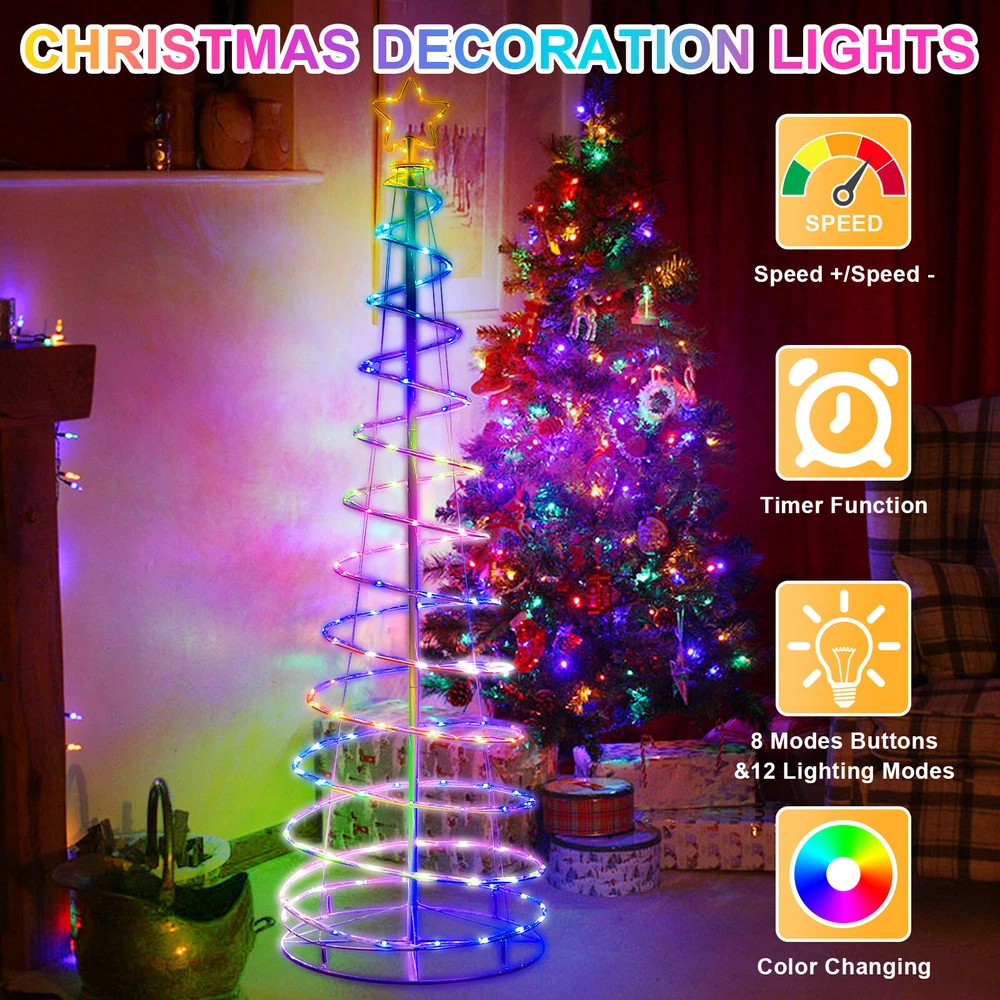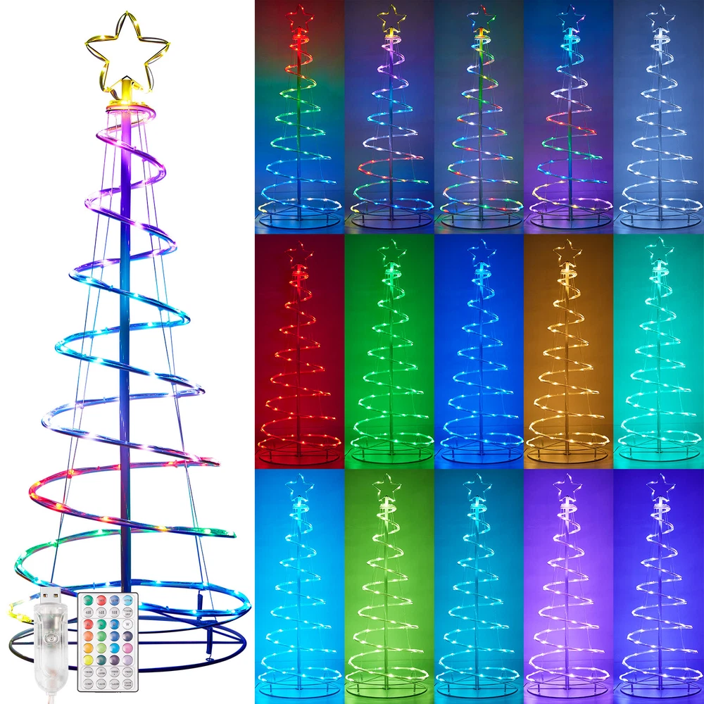 16 Color LED Spiral Christmas Tree Garden Party Decor 8 Function with Remote USB