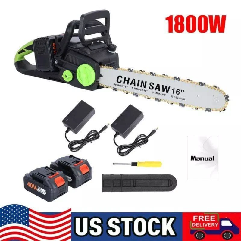 Other | | | | | | 16" Cordless Chainsaw Brushless Electric Handheld Chain Saw w/Battery & Charger > > > > > > < < < < < < < < < < > > > > > > > > > > Description: Brushless Motor & High Power: Since the electric chainsaw is designed with a powerful brushless motor, it provides your tool with longer run-time, more torque, and more power. Once release the switch, it can stop automatically. The 16 inch chain saw has a chain speed of 17000rpm. 1800W power for super-effective performance with flexible operation and strong cutting ability. Safe Switch & Front Baffle: With safe switch design, you can press the safety start switch lock first, and then hold still and press the start button to prevent injury by sudden start. The front baffle protects the user from flying debris. High Quality Material & Easy to Use: Electric cordless chainsaw is made of high-quality ABS eco-friendly plastic, steel and pure copper brushless motor material. Comes with complete installation tool, this electric chainsaw is very easy to use. Push button start, no gas or fumes, no carburetor, no spark plug, and no starter rope. Multi Advantages: Unlike the market to use a screwdriver to adjust the chain, this electric chain saw is equipped with a knob to be adjusted slightly before the looseness and length of chain, which to prevent the chain to fall off. Automatic oiler system, the lubricant volume to ensure sufficient and uniform work. Equipped with oil pouring port, you can control the oil spraying speed. The integrated guide plate is designed to resist high temperature and wear. The electric chainsaw has a brushless motor for durability, high efficiency and quiet operation. Wide Applications: Featuring an anti-slip handle and switch control design, it is comfortable to grip and easy to control. The electric chainsaw for smooth and fast cutting through dry wood and live logs. Suitable for forest cutting, family logging, professional use by workers. Item Name: Electric Chain Saw Material: Metal, ABS Material: ABS Eco-friendly Plastic, Steel, Pure Copper Length of Guide Plate: 16" (about 41cm) Motor: Pure Copper Brushless Motor Power: 1800w Speed: 17000rpm Motor Compatible Voltage: Direct Current 36-42V Length of The Whole Machine: About 84cm Handle Width: 15cm Compatible Charging Voltage: AC100-240V 50/60Hz Working Time: About 120min Battery Capacity: 4Ah Spraying Method: Automatic Oiler Control Type: Two-Hand Control Plug Specifications: UK Plug, US Plug, EU Plug Features: Comfortable Grip, Long Endurance, Integrated Guide Plate Size Details: L: 85cm/33.46", W: 35cm/13.78", H: 35cm/13.78" (Approx.) Notes: Due to the light and screen setting difference, the item's color may be slightly different from the pictures. Please allow slight dimension difference due to different manual measurement. Package Includes: 1 x Electric Chain Saw 2 x Batteries 2 x Charger 1 x Chain 1 x Guide Plate 1 x Screwdriver 1 x User Manual Payment Shipping Return Contact Us 1. We acceptPayPal,Credit card,Debit card,Apple Pay,Google Pay ect as payment. 2. Please be sure your shipping address is correct before make a payment. 1. We ship to your eBay or Paypal address. Please make sure your eBay and Paypal address is correct before you pay. 2. Items will be shipped within 1-7 business days when we received payment. 3. Delivery time depends on destination and other factors. 4. International buyers please note: a. Import duties, taxes and charges are not included in the item price or shipping charges. These charges are buyer's responsibility. We will try our best to reduce the risk of the custom duties. b. Please check with your country's customs office to determine what these additional costs will be prior to buying. 30 DAY RETURN POLICY Customer Satisfaction is our main goal, all items are quality checked prior to being listed and sent out. Please contact us prior to leaving any Negative Feedback and allow us to make things right! If you not satisfied with it please include the original packaging and return form & tracking number otherwise the return may take longer to process the refund. Once we have received the item and inspected it we will issue the refund or resend within 1-7 business days. Please contact us in time if any enquriy under any circumstances. We greatly appreciate your positive feedback and we'll do the same to you. We care about our valued customers, and will always try our best to help you, if you have any problems. Working time: GMT+8 / 9:00-18:30 in normal we will reply you in one working day.