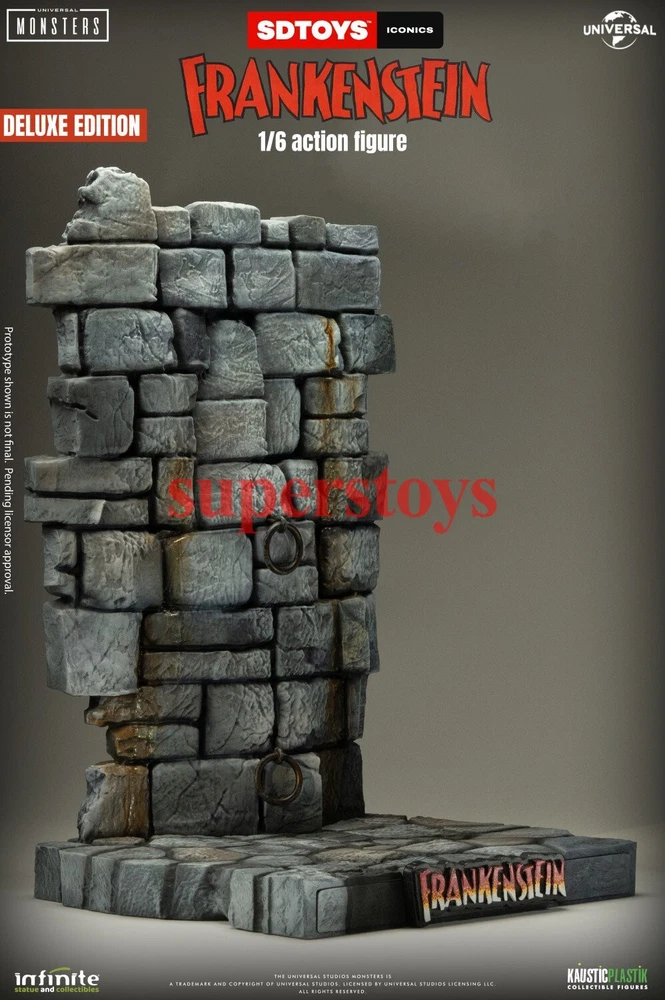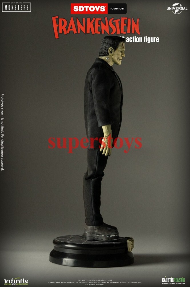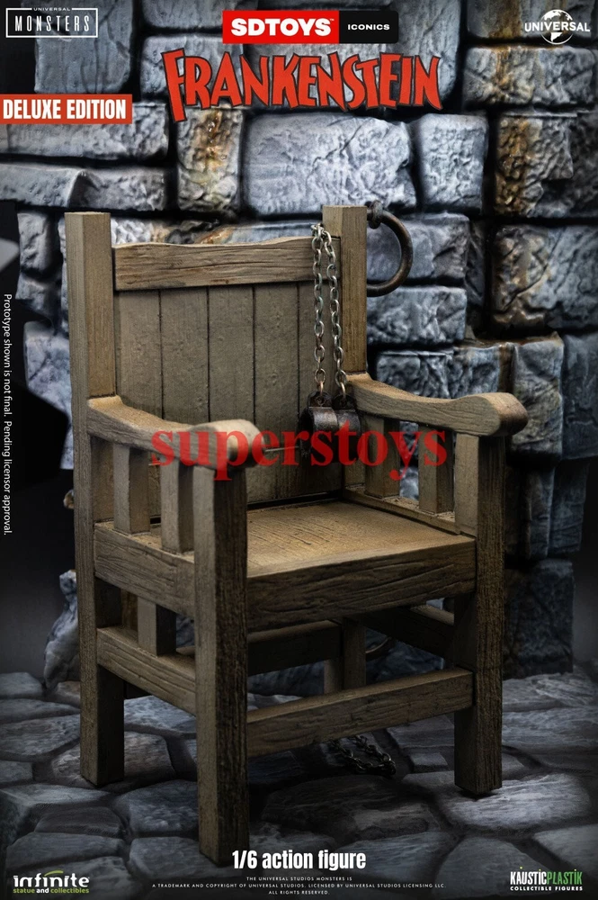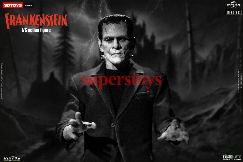 NOTE: This is a Presale Item Full payment is required for this presale. The release date automatically predicted by the eBay system is inaccurate, for more information about presale rules and item release dates, please feel free to contact me! Feel free to reach out if you have any other questions!!! Packing List: - One head with rollable eyes with Frankenstein's monster likeness 1931 - One Body aprox 32 cm tall with special knee articulation - 8 pair of hands - Black Jacket (Weathered) - Black Pants (Weathered) - Black Shirt - One pair of Black Boots (Magnetic) - Chains and handcuffs - Wood Chair (Deluxe Edition) - Large Diorama of Dr. Frankenstein’s Castle Wall (Magnetic - Deluxe Edition) - Magnetic Stand - Luxury box